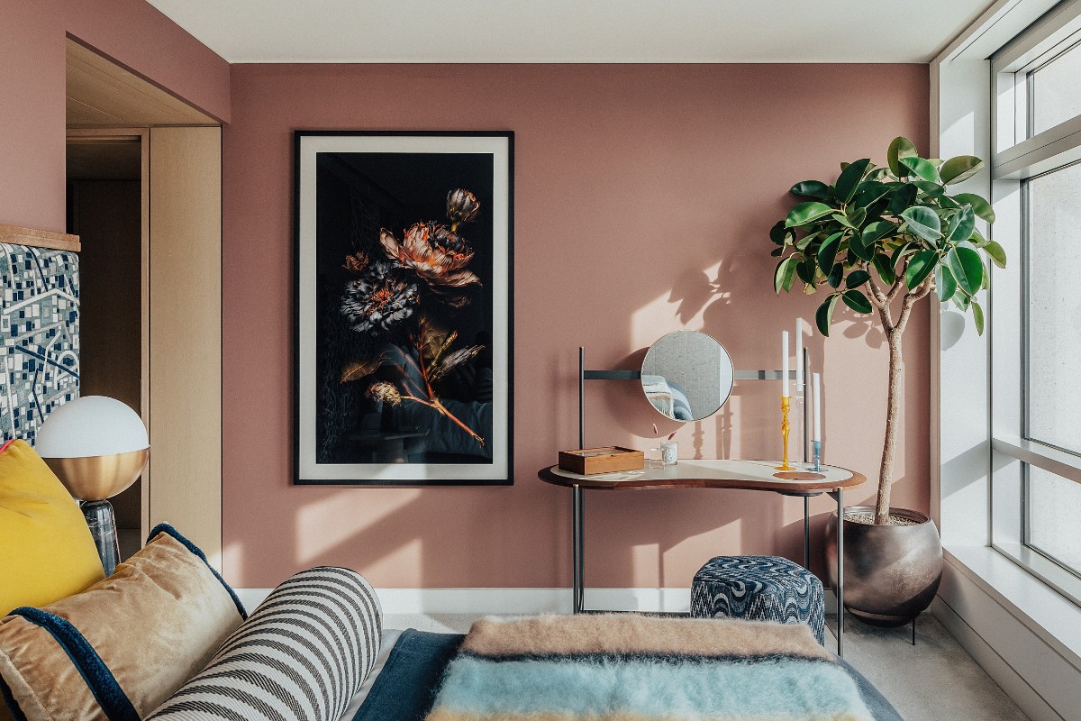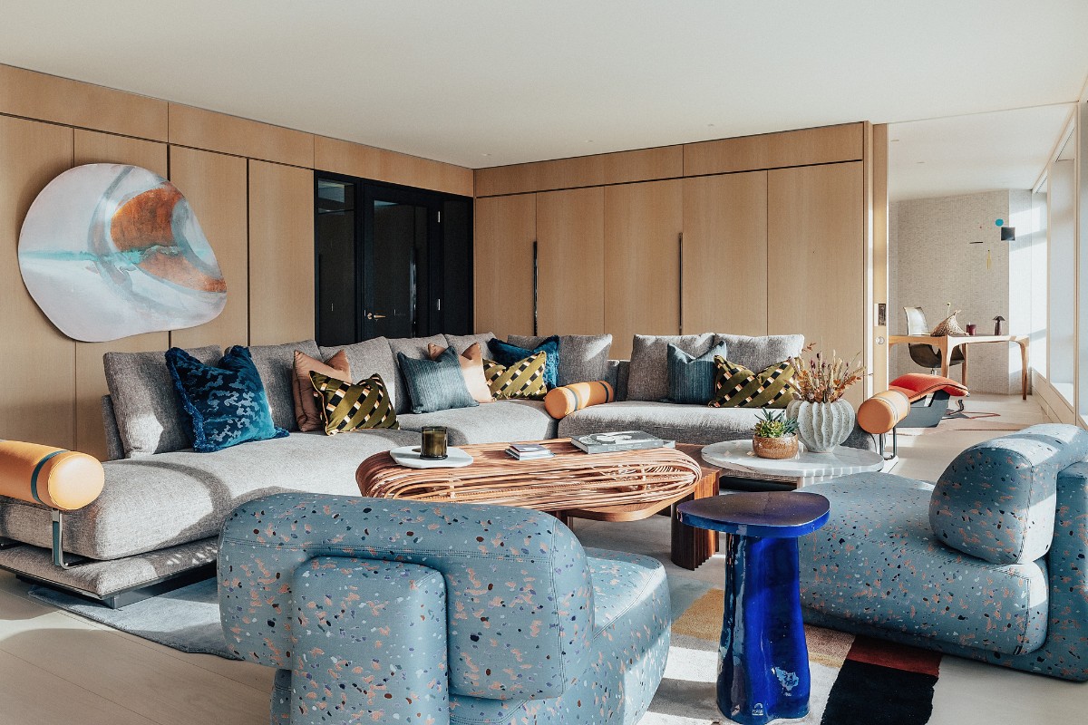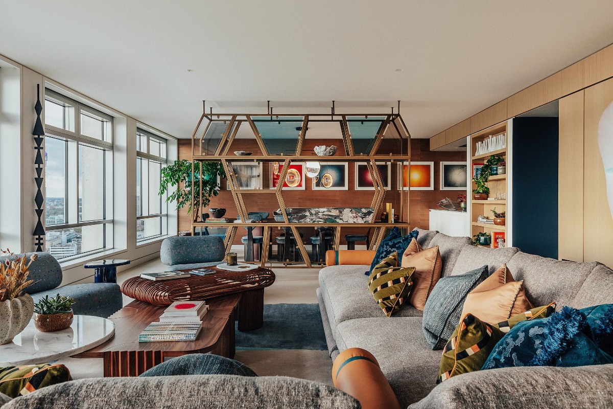12th March 2025 | IN PROJECT OF THE WEEK | BY SBID Share Tweet Pinterest LinkedIn This week’s instalment of the Project of the Week series features a combination of modernsim and organic shapes in this show flat design by 2024 SBID Awards Finalist, Angel O’Donnell. Angel O’Donnell’s design story is rooted in Centre Point’s brutalist precision, strong geometry and arresting silhouettes. The team designed upholstered bedroom walls with zigzag patterns and honeycomb-shaped pillars to echo the building’s iconic façade. Curated totemic sculptures of carved wood, built a room divider comprising polygonal panes of coloured glass, and sourced vintage pieces that date back to the time of Centre Point’s construction. They painted a ceiling mural that captures the fiery hues of the sunrises and sunsets that can be seen from the east and west facing windows, and assembled a gorgeous mix of materials, from honed marble to oxidised steel. Category: Show Flats & Developments – UK Design Practice: Angel O’Donnell Project Title: Centre Point Vantage Collection Project Location: London, United Kingdom Design Practice Location: London, United Kingdom Photographer: Taran Wilkhu What was the client’s brief? Our client wanted a last hurrah! A newsworthy interior that would celebrate Centre Point’s brutalist architecture, jaw-dropping views, and decade-long story of regeneration since building works began. This would be the last in a long line of show residences, so it was essential we created a different look from previous designs – particularly the scrupulously pared back, mid-century-modern interiors by Conran + Partners, and the glossy-luxe interiors by Morpheus & Co. By creating a whole new look and feel, we could demonstrate the versatility of these spacious and smartly planned residences. Photographer: Taran Wilkhu What inspired the design of the project? Centre Point’s brutalist architecture provided us with a bottomless well of inspiration. Everything from the building’s rippling rhythms of precast concrete to the beautiful light that pours in through the east- and west-facing windows informed our designs. We took the spirit of modernism – its optimism and freedom of expression – and made it our own, mixing rectilinear forms with organic shapes, bright rich colours with soft pale neutrals, smooth surfaces with strong textures, and subtle patterns with bold motifs. This ebb and flow of binary styles creates a lovely rhythm as you journey from room to room, from morning till night. We instinctively wanted colour-soaked interiors that contradict the cool white-grey exterior of the building. Each colour was carefully selected to elicit a different emotional response. The embracing warmth of terracotta in the principal bedroom. The respective palettes of soothing pink and positive green in the guest bedrooms. And the healing energy of copper in the dining area. These colours are designed to calm and balance, energise and uplift, and in turn enhance the experience of living up high with all of London laid out before you. As for materials, we incorporated as many as we could to honour the concrete, steel, glass, limestone and wood present in the building. We chose walnut, rattan, marble, leather, bronze, ceramic, resin, oxidised steel, bamboo silk, velvet – a panoply of noble and other quality materials that look, feel and smell reassuringly luxurious. Their veins, grains, colours, textures and aromatic properties add to the rich sensory experience throughout. Photographer: Taran Wilkhu What was the toughest hurdle your team overcame during the project? It was finding a smart and subtle way to zone the 33ft-long living area without carving it up and making it feel small. In our minds, zoning was critical to reimagining the space and opening prospective buyers’ eyes to all the things you could do with it. So, we opted for low-slung furniture to keep the focus on the views over Mayfair and Hyde Park. Then we used a giant L-shape sofa to create an island of tranquillity with easy-to-reach coffee tables and spot tables, deep-seated lounge chairs, and a silky-soft rug. By resisting a traditional layout of two sofas facing each other, we enhanced the flow between the living, dining and study areas. Photographer: Taran Wilkhu What was your team’s highlight of the project? The room divider was immensely satisfying to design and build. We love to work with craftspeople whose workshops we visit to stress-test materials and prototype constructions – and this piece certainly put us through our paces. We experimented with different frames – both free-standing and fixed – as well as a variety of shapes ranging from the regimentally geometric to the varied and polygonal. We also tested various burner boxes and fuel reservoirs for the bioethanol fireplace. Working through multiple iterations is the only way to guarantee an excellent product, in this case, a new focal feature that will remain functional and fabulous for years to come. Photographer: Taran Wilkhu Why did you enter the SBID Awards? Angel O’Donnell won its very first gong at the SBID Awards in 2019 – and we’ve loved them ever since. The SBID is such a supportive organisation, the team is terrific to work with, always attentive, and the awards themselves are a joyful celebration of design and craftsmanship. For these reasons, we enjoy entering the awards and being a part of the SBID family. What has being an Award Finalist meant to you and your business? It’s a lovely thing to share with our clients. They’ve put all this trust in us to deliver a showstopping scheme – one that will help the developer to sell units – and when you can top this with an industry-recognised nod, it’s something everyone can feel proud of. Ed O’Donnell, Co-Founder & Creative Director of Angel O’Donnell Questions answered by Ed O’Donnell, Co-Founder & Creative Director of Angel O’Donnell. View the project We hope you fee