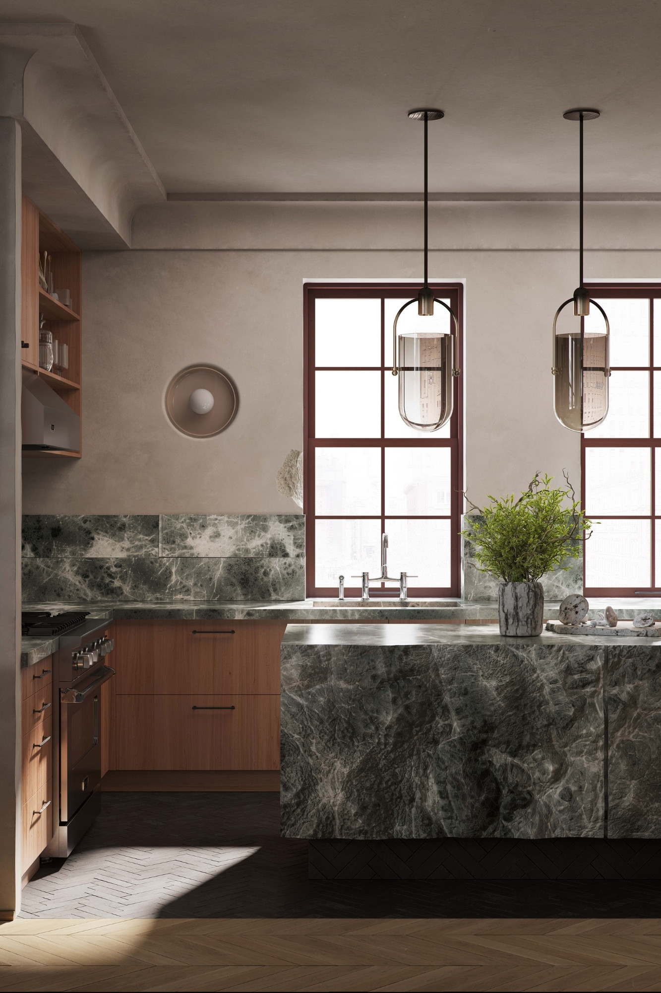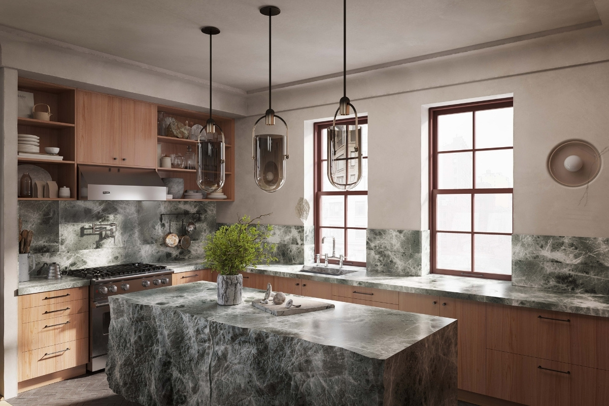 Designed by Artem Kropovinsky of Arsight, this interior project in Tribeca curates an intuitive and personalized living space that beautifully interweaves the rough charm of natural materials with high-end features. A testament to creative craftsmanship, the apartment is imbued with unique elements such as hand-troweled fluted plaster walls, a hand-carved kitchen island, and heavyweight linen curtains. The design, valuing authenticity and embracing imperfections, tells a compelling story of human touch and history. This innovative fusion of refined elegance and rustic appeal, underscored by a commitment to sustainability, offers a refreshing divergence from prevailing trends.