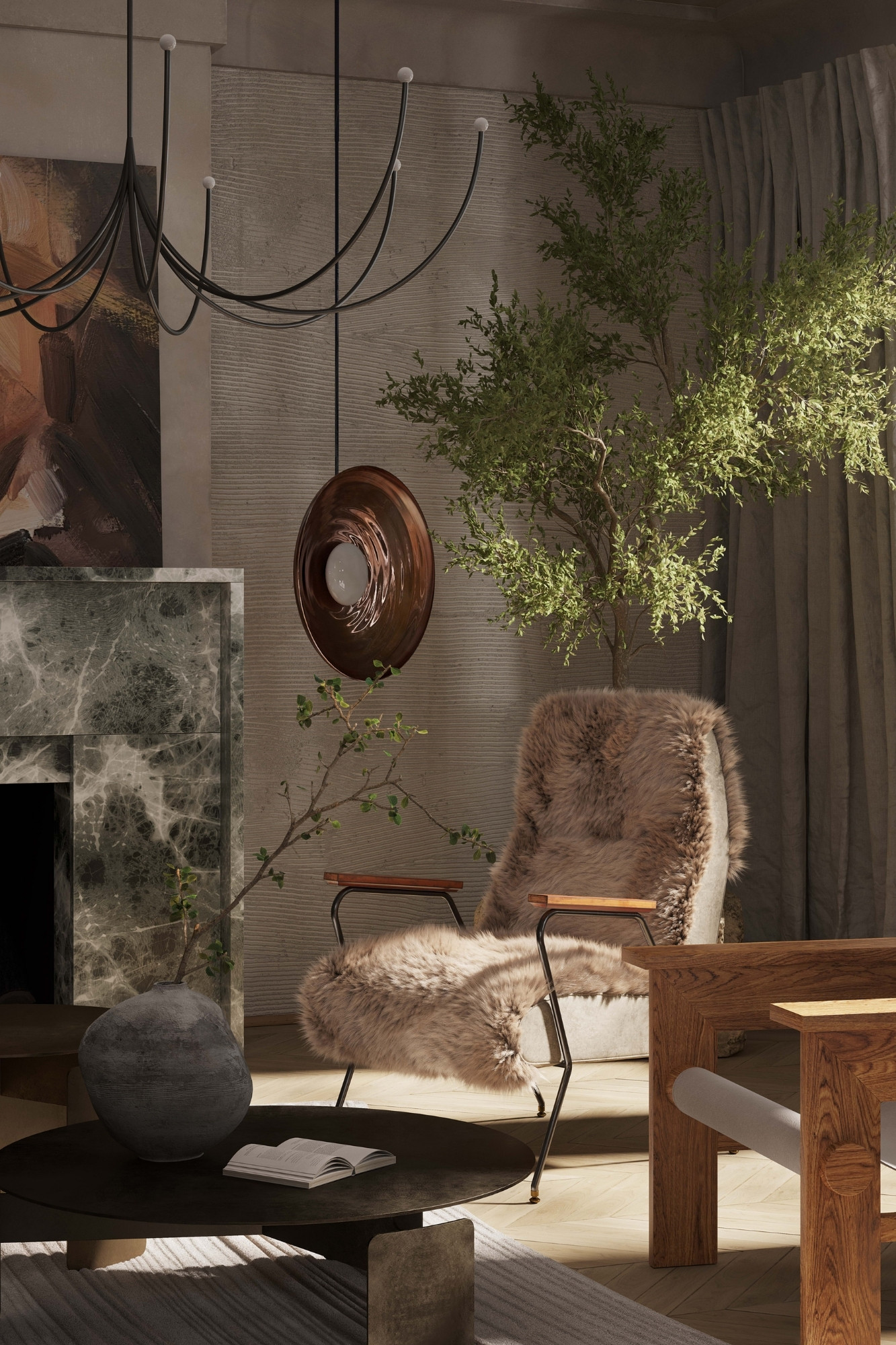 The most challenging aspect of this project was ensuring that the raw, natural elements we introduced, such as driftwood and stones, seamlessly integrated with the modern features of the apartment. This meant balancing the ruggedness of these elements with the refined aspects of modern design without losing the authenticity of either. It was essential that the space felt both luxurious and raw, opulent yet genuinely connected to the natural world.