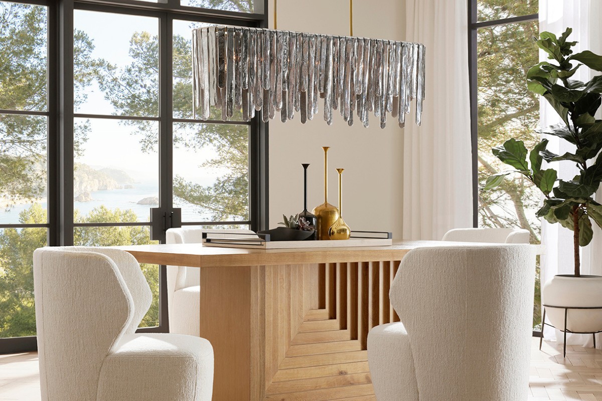 6th December 2024 | IN PRODUCT NEWS | BY SBID Share Tweet Pinterest LinkedIn The arrival of autumn heralds the ideal time to explore Arteriors’ latest AW24 collection, where lighting transcends functionality to becomes the centrepiece of any room. Renowned for seamlessly blending craftsmanship with innovation, the luxury brand introduces a range of lighting that glows from within, infusing warmth and style to any environment. More than just illumination, these statement pieces are designed to define spaces, create focal points, and transform the ambiance of a room. Featuring a dynamic combination of natural materials and textures, this collection is crafted to capture attention and elevate interiors throughout the UK. Arteriors, Chanell Table Lamp, £1554 Arteriors, Cascade Chandelier, £5568, Theodore End Table, £1424 Refined Reflections Table lamps offer a unique opportunity to experiment with material contrasts, especially given their prominent placement at eye level within the home. The Chanell table lamp is a masterclass of this approach, where the gleam of metallic finishes meets the timeless elegance of marble. Its tapered brass shade not only reflects light but also diffuses it, casting a glow that transforms any space. This interplay between materials makes the Chanell a versatile piece, seamlessly enhancing contemporary and classic interiors. Arteriors, Indi Chandelier, £3471, Cortez Cocktail Table, £2331 Arteriors, Dorette Entry Table, £4661, Renly Pendant, £2410 Natural Light Pendant lighting offers an unparalleled opportunity to showcase innovative crafting techniques, becoming a focal point in any room. The Large Indi Chandelier draws inspiration from the rugged beauty of nature, merging traditional motifs with eye-catching, unconventional design. Its expansive dimensions command attention but its intricate craftsmanship is what sets it apart. Indi is composed of a white iron foundation encased in matching white coconut wood, intricately carved to mimic the silhouette of a cactus. Each arm is adorned with clusters of coconut shells which create captivating shadow patterns, adding depth and drama to any interior. Arteriors, Elvis Floor Lamp, £4014, Castanza Accent Table, £1116, Dodson Chair Cloud Boucle, £4273 Arteriors, Erhart Chair, £4402 Shapes and Shadows Floor lamps provide a playful canvas for exploring shapes and forms, thanks to their elongated structure. The Elvis table lamp illustrates how industrial elements can be reimagined to create visual intrigue. The lamp’s gear-like structure serves as both a bold anchor and a source of compelling shadows, adding depth and dimension to your space. The lamp balances impactful geometry with a soft, diffused glow bringing spaces to life with texture, contrast, and character. About Arteriors Arteriors began 35 years ago as a boutique accessories company and has evolved into a global force in the design industry. With premier lighting, furniture and accessories, Arteriors redefines interior spaces through unexpected creativity and meticulous craftsmanship. Pursuit of innovation drives Arteriors forward. Their imagination never rests. Art, architecture and fashion are in Arteriors’ DNA. They believe good design begins with inspiration, and each of our products in lighting, furniture, accessories and wall décor achieves a balance of ideas, forms, textures and finishes that feel bespoke. The storied techniques of the master artisans with whom they collaborate inform every detail and infuse the touch of the human hand into every design, each with a distinct Arteriors point of view. A leading resource for interior designers and retailers, Arteriors operates four flagship showrooms in Dallas, London, Los Angeles and New York and three permanent, to-the-trade locations in High Point, Las Vegas and the Dallas Market Centre, in addition to retail distribution in 73 countries. Visit Profile If you’d like to feature your news or stories on SBID.org, get in touch to find out more. If you’d like to become SBID Accredited, click here for more information.