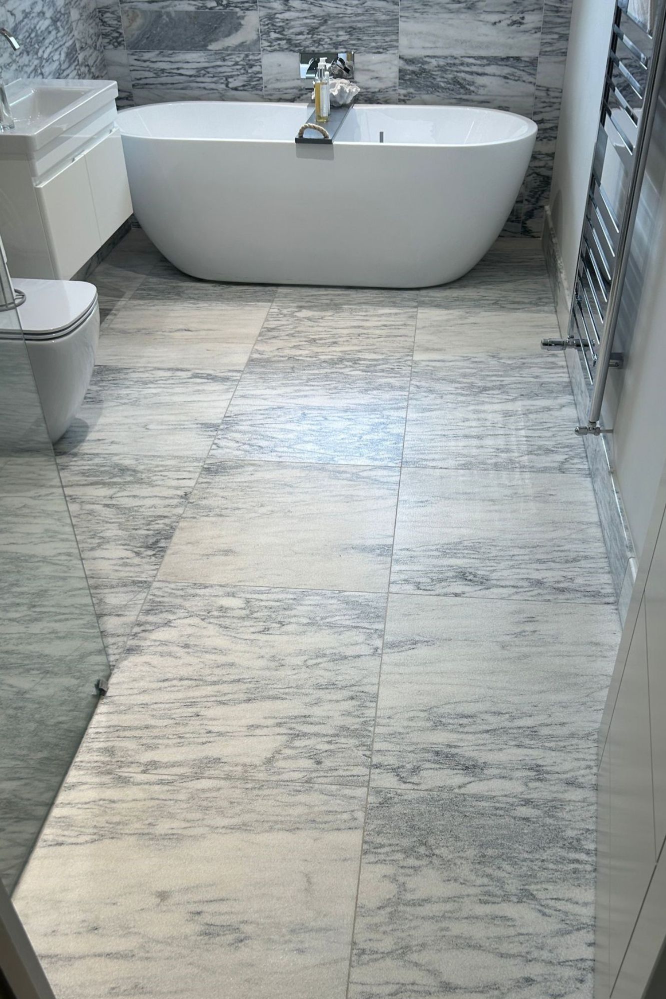 25th April 2025 | IN DESIGN ADVICE | BY SBID Share Tweet Pinterest LinkedIn Having natural stone in a bathroom is one way to add a touch of luxury to your home. The earthy tones of limestone can recreate a spa-like experience or the bold colours of marble elevate a space with a hint of grandeur. No matter what materials you use in a wet environment, regular maintenance will always be necessary. The grout of a porcelain tile, for example, will become discoloured easily if you don’t keep on top of the cleaning. A little more time investment might be needed to care for natural stone, but having to do this means that you’ll not neglect the tiles as is so easily done with a ‘low-maintenance’ surface. Athena Stonecare Athena Stonecare Stone Selection As with any room that you are considering installing natural stone in, there’s stone types that are more suitable and usually this is down to reducing the required maintenance. Marble installed in a bathroom should ideally be the highest grade possible for the minimal inclusions and veining. This is because the vein composition is vulnerable to moisture damage. Very light, white marble can also be subjected to discoloration over time due to its naturally occurring iron content rusting. On the contrary, dark marbles will show the etch marks and hard water deposits very easily and so do require a diligent approach to maintenance. It is important too, if considering limestone or travertine to opt for a less porous type. Stone suppliers should be able to talk you through the options with the lowest water absorption rate. After selecting the stone type, particular attention should be paid to the finish on the stone, size of tile and other factors that will impact the slipperiness of the surface if being installed on a bathroom floor. Athena Stonecare Daily Habits We recommend that you clean your stone shower and bath area daily. The easiest and most effective way is to spray the walls and floor of the stall with a stone safe cleaner, then squeegee down after everybody in the home has taken a shower for the day. This will stop hard water build ups to the surface of the stone. This is particularly pertinent when it comes to Marble which is acid sensitive. With strong acids, you will see the effects of this instantly with a white or dull burn mark showing almost instantly. Known as etching, this is not something that can be wiped or cleaned off and will require professional restoration. Tap water is not always PH neutral which means that over time, this can have a similar effect on your stone. In a marble bathroom, this means that it is really important to keep the surfaces as dry as possible. In hard water areas (like London and the South East), sitting water will also lead to a build-up of limescale and mineral deposits which can be tricky to remove without risking damage to the stone surface. Athena Stonecare Athena Stonecare Stone Safe Cleaning When it comes to cleaning the stone in your bathroom it is essential to use a pH neutral stone cleaner. If in doubt, look out for ‘stone-safe’ on the label. We also recommend keeping this in mind when cleaning other areas of your bathroom. Try using alcohol to clean your windows and mirrors rather than harsher acidic-based cleaning chemicals. If using bleach for your toilet then it is worth taking a little more time to protect any surrounding stone too. Don’t let metal bathroom accessories (toilet brush holder, toilet paper stand etc) sit directly on the stone floor. Moisture, even from steam condensation will pool around the bases and can cause unsightly and difficult-to-remove rust marks in the stone. It is also very important to keep an eye on grout and particularly silicone throughout the bathroom. Not only will worn grout look unsightly, but water that gets behind the stone can cause damage beyond repair. Athena Stonecare Sealing Stone Although stone will have been sealed when installed, it is important to note that this will not prevent the damage that acids and hard water can do over time. Periodic reapplication of a sealant can help to maintain the aesthetics as well as topping up the protection. Just pour a small amount onto a microfibre cloth and apply to the stone surface in small circles until you have covered the area. Then buff the stone with a fresh cloth to remove any excess. Leave this for at least 15 minutes to dry, ideally 24 hours if possible. If you opt to have your stone professionally restored or cleaned, the application of a sealant will always be included as part of the treatment. For more information on how to look after stone in a bathroom or for you free copy of Athena Aftercare to share with clients please email [email protected] About Athena Stonecare Natural stone is an investment and we are committed to ensuring that its beauty endures. We specialise in working with marble, limestone, travertine, granite, and all types of natural stone, ensuring that stone will continue to be a beautifully sustainable feature within any property. As natural stone restoration experts we work with floors, worktops, shower walls, sinks and vanity units. The ongoing care of stone is important to us too and so we have developed a suite of advice and guidance on how to maintain the finish of any stone surface. This is distributed through stone suppliers across the UK and is also available to anyone who works with natural stone. Visit Profile If you’d like to feature your news or stories on SBID.org, get in touch to find out more. If you’d like to become SBID Accredited, click here for more information.