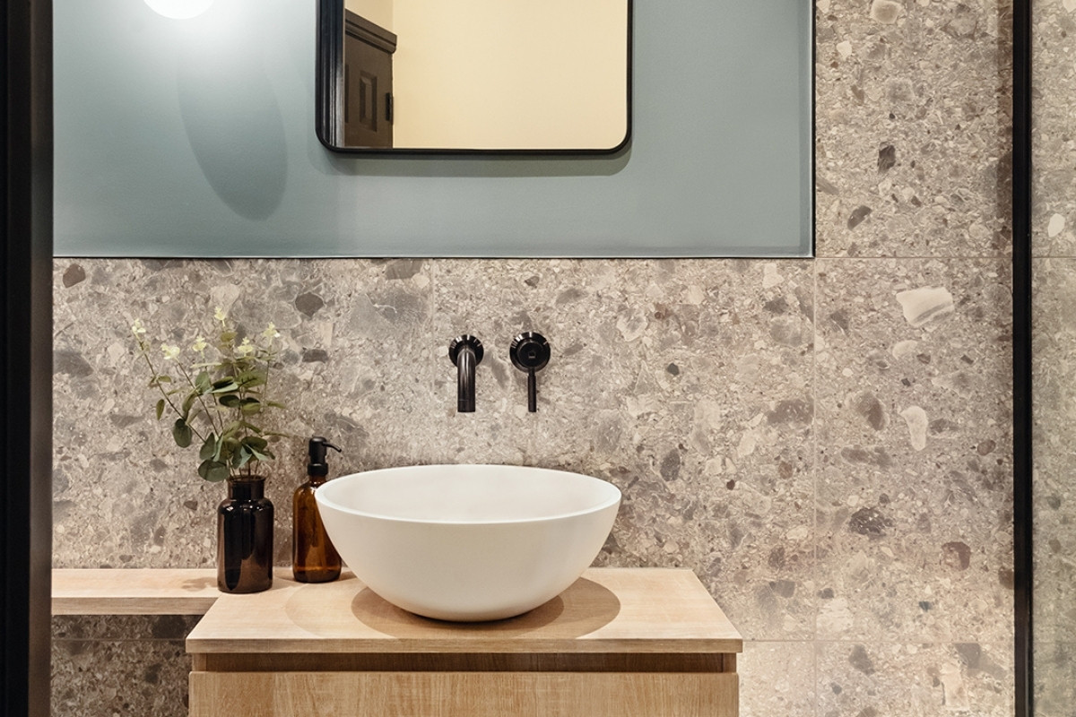 25th May 2022 | IN KBB DESIGN | BY SBID Share Tweet Pinterest LinkedIn This week’s instalment of the Project of the Week series features modern and fun bathroom designs for a contemporary apartment by 2021 SBID Awards Finalist, Studio Modha. SBID Awards Category: KBB Design Practice: Studio Modha Project: Royal Docks Location: London, United Kingdom What was the client’s brief? The client wanted a complete refurbishment of his flat, opening up the space as much as possible, drawing inspiration from hotel suites and nature around it. This flat had not been updated in over 10-15 years. We completely refurbished the flat, transforming it from a two bed, one bathroom and one wc to a three bed property with two full bathrooms. The client requested a modern and fun scheme, which we layered with complimentary colours and features. We revamped the whole apartment, from the kitchen to sanitary ware, flooring, lighting, window treatments and hardware. What inspired the design of the project? The Project was based in the docklands, surrounded by so much nature, e.g. river Thames and local parks. We wanted to bring in the earthy tones and textures, for example with the terrazzo effect tiles and the warm greys, browns and blues throughout. In addition, the client wanted to feel like he was in a different space through-out the property so we used different colours and textures in each space, including dead salmon from farrow and ball. Not a colour we get to use often and definitely a brave one! What was the toughest hurdle your team overcame during the project? We had a soil pipe that was really far off the ground in the guest bathroom, and because it was in a flat we couldn’t move it! This created a huge issue as the client had his heart set on a wetroom shower. We ended up having to raise the floor significantly (a whole 25cm) which brought up the issue of ceiling height (which wasn’t huge in the first place). We ended up having to increase the height of the shower head and create 2 step ups instead of 1 to make it look like the ‘step up’ was intentional. Luckily it all worked out in the end and made the shower area feel even more lux! What was your team’s highlight of the project? It’s got to be overcoming the hurdle I described in the previous question, we went back and forth for weeks thinking of a solution so you can imagine the joy when we finally came up with one. Another thing to mention is that our client didn’t want to see any of the progress on site, so the look on his face when he saw it all finished was really rewarding to see. Why did you enter this project into the SBID Awards? Honestly, it was Studio Modha’s first year running and one of the first projects we completed. I have always admired the caliber of designers/studios and projects within the awards and only dreamed of being a part of it. It was a huge shock when I received the congratulatory email! Questions answered by Neha Modha, Director, Studio Modha. View the project We hope you feel inspired by this week’s design! If you missed the last instalment of Project of the Week, featuring an intricate historical bar design by SHH, click here to read it.