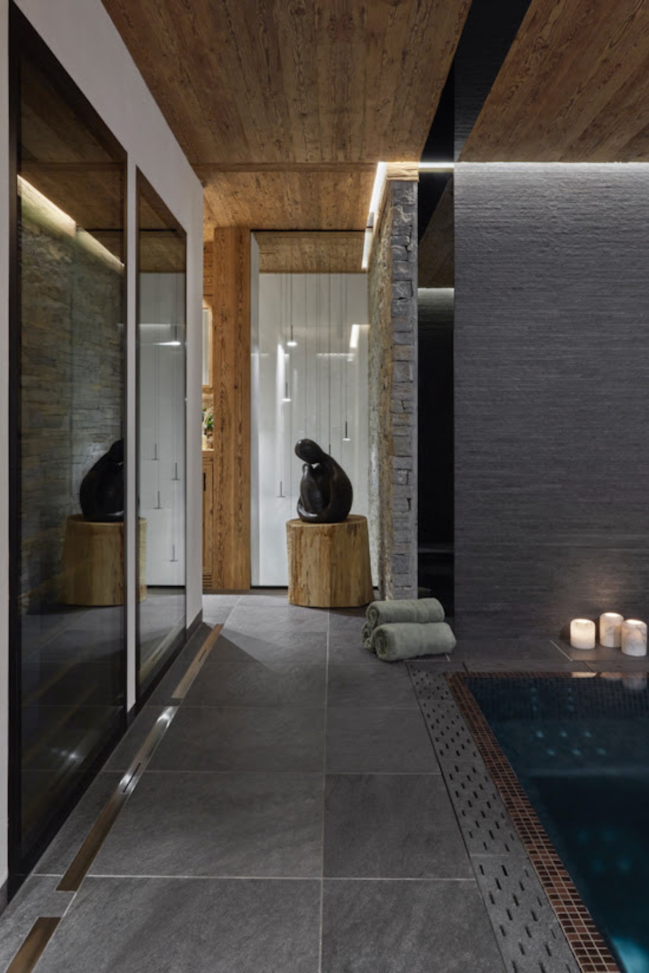 15th February 2024 | IN DESIGN ADVICE | BY SBID Share Tweet Pinterest LinkedIn As designers and curators of the spaces we inhabit, we can consider our aesthetics through the lens of our wellbeing and the environment. These days we are all concentrating on our wellbeing. Within interior spaces, wellness design seeks to enhance the overall health and experience of its occupants. It prioritises comfort, tranquillity and a holistic connection to the natural world. It can be about simplicity, and building resilience by breaking through what we know, and it can be ways to amplify relaxation and harmony. In our multifaceted world, there is not one definition of wellness, but one cannot deny that buildings have a significant impact on the structure of our lives. As designers and curators of the spaces in which we live, it is increasingly important to look at all creations with a holistic lens into the future. Here are my top 10 considerations to shape a stress-reducing design. Katharine Pooley Fluid Shapes Curves, undulating lines and organic forms characterise fluid shapes. They evoke a soothing aesthetic and can be incorporated into furniture, décor and spatial arrangements to promote a sense of flow. Eschewing rigid structures encourages a dynamic interplay between the environment and those living in it and lightly influences a more intuitive lifestyle. Considering the shapes and shadows in a space can have a transformative impact on the ambience of an area. Through incorporating forms that reflect the organic world a designer can seamlessly guide the eye through the environment, fostering a sense of unity and cohesion. In my more recent Notting Hill project pictured above, we selected curved furniture and amorphous coffee tables to achieve harmony. The chandelier above was conceived piece by piece and compliments the furniture below. It also mimics the oceanic design of the bronze doors adjacent. Take for example the Rolex Learning Centre in Switzerland. It was designed by the Japanese architectural practice SANAA, led by Kazuyo Sejima and Ryue Nishizawa. The RLC is essentially rectangular in plan but appears to be more organic in shape because of the way its roof and floor undulate gently. Instead of steps and staircases, there are slopes and terraces. Without dividing walls, one area of activity gives way to another, embodying the aim and philosophy of the building’s purpose – to set the scene for different kinds of collaborative, cross-disciplinary research. The incorporation of organic forms not only promotes visual appeal but also creates a sense of continuity and balance. The environment feels responsive and supportive. Harmonising with elements of natural light, ventilation and biophilic design, fluid shapes can establish an interconnected space that resonates with personal renditions of comfort. Colours By choosing colours that resonate with a sense of balance and calm, interior designers can positively influence the psychological and emotional well-being of the occupants and foster a holistic and rejuvenating environment. Embracing a palette inspired by nature: calming blues, earthy greens, warm neutrals and deep browns, helps to establish a harmonious connection with the world. In enhancing our spa, we’ve delicately infused touches of soft jade green into the cushions and marble table tops. Ancient Egyptians revered this shade, associating it with rebirth, renewal, and immortality, as temples dedicated to ‘chronotherapy’ adorned with coloured glass have attested. The enduring presence of this hue in design speaks to its ability to evoke serenity. Moreover, gradients and subtle colour contrasts contribute to a visually dynamic experience, further enhancing the spa’s ambience. It is no surprise that the Pantone and Dulux colours of the year are respectively warm, delicate hues reflective of our yearning for that which nurtures us – humanity, community and cosiness – during such uncertain times. Katharine Pooley Lighting The close link between sleep and good health is well established. Since the pandemic, insomnia has increased with almost 23 million people in the UK suffering from sleep issues. Sleep is an area where technology can make a positive contribution since considerate design and the incorporation of lighting control can promote better sleep hygiene by tuning into the body’s sleep/wake circadian rhythm. This creates the right environment to wind down at night and wake up naturally in the morning. I encourage large windows and glazed walls in interior architectural design to create a connection with the outdoors. Aim to position furniture with a strong focus on soaking up the sun and sky – keep windows clear and unobstructed, and choose thoughtful window dressings to ensure fresh air and maximum ventilation. Florence Nightingale advocated natural light and ventilation in hospitals in the 19th century for a very good reason – it heals us. The picture above is a chandelier from one of our Lancasters projects in Hyde Park. We worked with a lighting design company to create this bespoke chandelier and strategically placed the downlights so they would perfectly frame the room and add ambience to enhance the space. As inhabitants, we should be quickly able to pivot and welcome nature into our home, so keep things within reach. You shouldn’t have to strain and make yourself uncomfortable to achieve comfort. Ambient and subdued light in the evening is a primal indicator to our brains; it is ingrained in our psyche that these hues are connected to a slowing down of the mental processes. Textures from Nature Natural materials such as wood, stone, porcelain and bamboo, bring a tactile and organic quality to the environment and connect occupants with the soothing elements of the outdoors. Their use not only adds a sense of warmth and authenticity but also contributes to a more sustainable and eco-friendly design. Incorporating textures reminiscent of natural land
