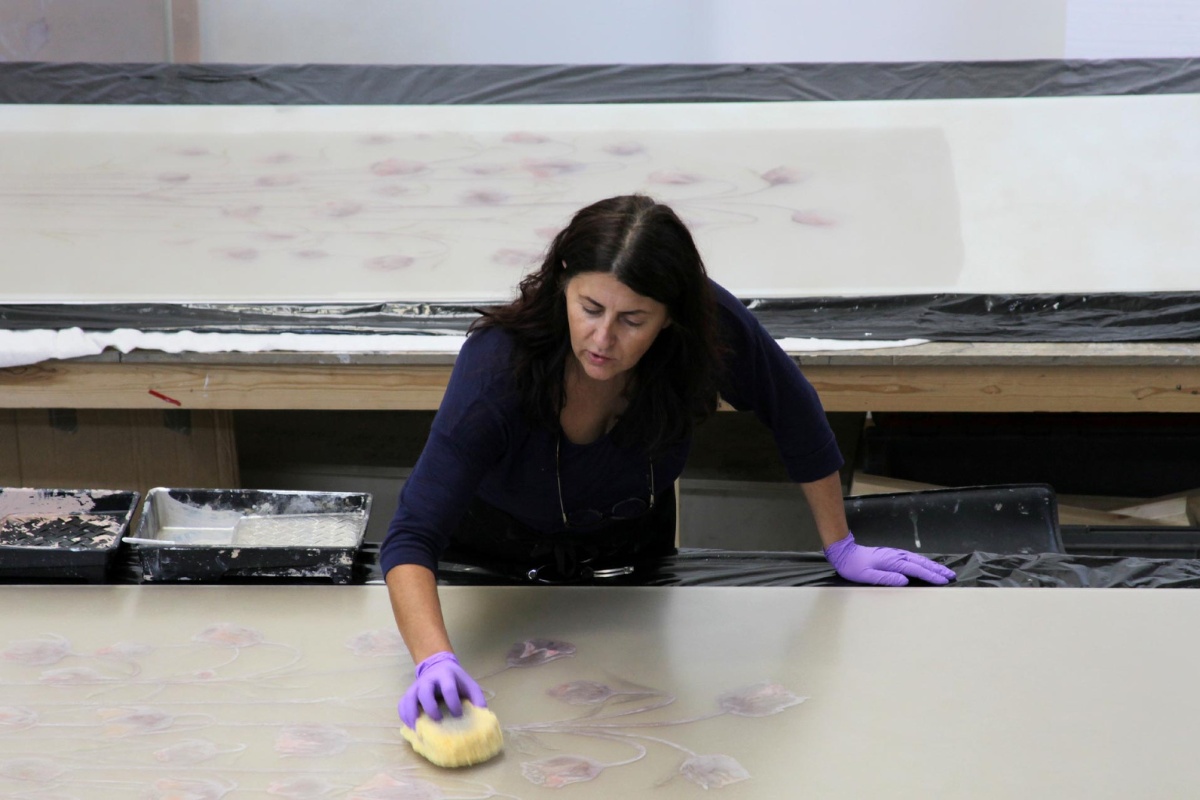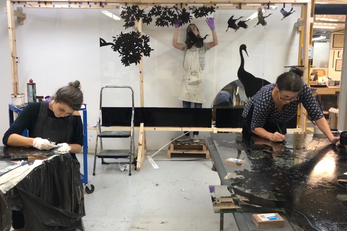 Work in progress on a Verre Églomisé artwork at DKT studio