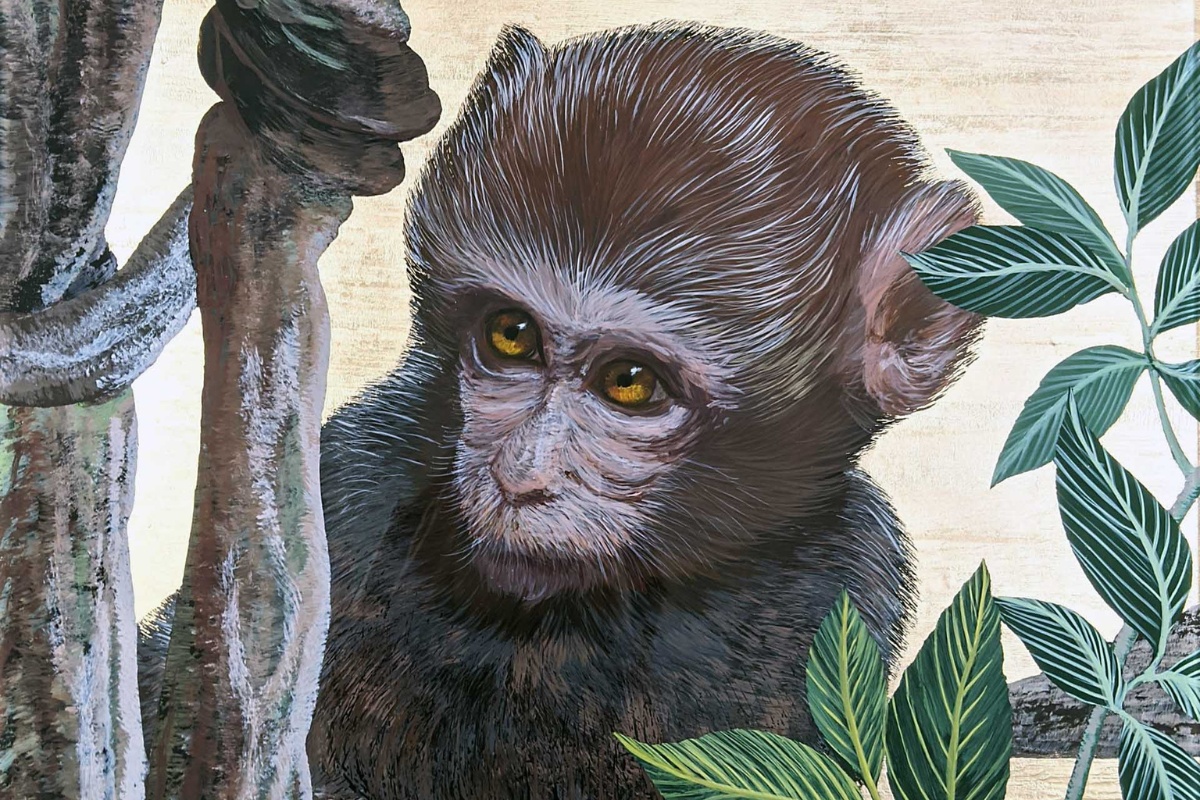 Detail of Jungle themed Verre Églomisé artwork, created by DKT Artworks