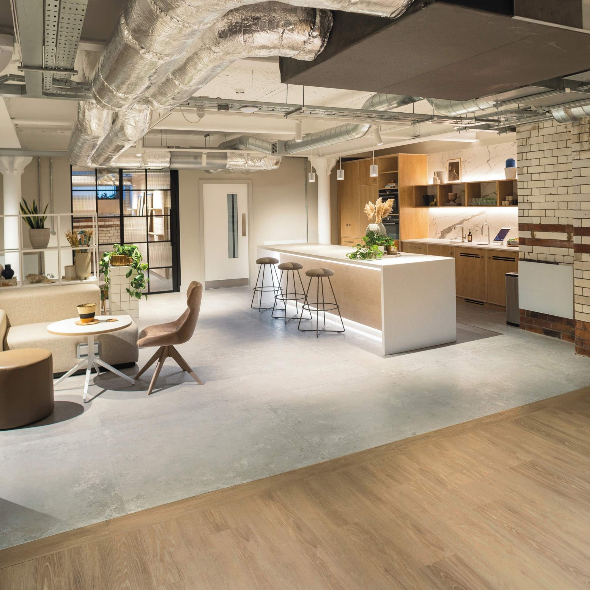 3rd October 2022 | IN PRODUCT NEWS | BY SBID Share Tweet Pinterest LinkedIn The UK’s market leader in luxury vinyl flooring, Karndean Designflooring, is giving designers greater flexibility to create engaging industrial interiors with the introduction of concrete design flooring in an extra-large tile size. From 27th September, its popular LooseLay range will include three concrete designs in a larger 1000mm x 1000mm tile format, offering the ability to create an on-trend streamlined look quickly and with less environmental impact. A realistic alternative to poured and polished concrete, Karndean’s LooseLay range is designed to not only meet but exceed expectations in commercial spaces. Expected to find favour in settings such as retail, hospitality and public sector spaces, the new tile size is ideal for laying in a grid pattern to create minimalist clean lines and an unbroken effect. Karndean’s LooseLay flooring is designed to be easy to install, featuring a K-Wave friction grip backing that creates a strong bond to the subfloor using a combination of weight and friction. With just tackifier required in high traffic areas and at thresholds, Karndean’s water based tackifier offers twice as much coverage than standard adhesive which supports less waste and overall lowers the impact on the environment. Rather than having to replace the entire floor in the event of damage, each tile or plank can be lifted individually, making it the perfect option for high footfall spaces. This also allows for simple access to underfloor services as required or for flooring to be reused in another setting. With a subtle emboss and matt finish, the creamy-grey tones of Quebec, complex grey shades of Colorado and gunmetal grey mottled effect of Vermont offer a look that’s reminiscent of a concrete floor but without the cost or inconvenience. Unlike the real thing, these designs can be combined to incorporate effective wayfinding and zoning. Fleur Carson, commercial sales director at Karndean Designflooring, said: “It’s easy to see why concrete flooring is a timeless choice when looking for a modern backdrop and industrial finish in commercial spaces. Providing a neutral grey background, our concrete designs look fantastic in conjunction with either the clean lines of a fresh white interior or with the calming earthy tones of a biophilic scheme. By adding resimercial elements, designers can create inspirational spaces which will enhance health and wellbeing. “We see it as our responsibility to create the best arrangement of functional tones and textures with the lowest possible environmental impact. Our new 1000mm x 1000mm tiles are designed to offer outstanding aesthetic and technical performance and so enable the installation of a stunning floor quickly but without compromising on practicality. Designers can be confident that our flooring will provide a neutral canvas and perfect complement to lighting, furniture and other design elements as well as help meet sustainability targets.” Karndean’s LooseLay flooring absorbs the impact of noise with strong acoustic credentials. An incorporated acoustic layer effectively reduces noise transfer to the floor below by 13dB and, for additional protection, tiles can be installed over Versilay InstaShield to achieve impact sound reduction of 17dB. Naturally warmer and softer underfoot than concrete, Karndean flooring is also compatible with underfloor heating systems and is easier to keep hygienically clean, requiring no resealing or resurfacing. To find out more about Karndean’s LooseLay collection and view its Environmental Product Declaration, visit karndean.com/commercial. About Karndean Designflooring Our design process begins with a meeting…with nature. We see flooring differently. Pushing the boundaries has to be an adventure of discovery. It’s why we travel the world for inspiration. From the ancient European woodlands to the Australian outback, we pack our bags and go there. Every time, we connect with something extraordinary that shapes our every step. It’s how we bring the unimaginable, inspired from the outdoors, indoors. Visit Profile If you’d like to feature your product news here, get in touch to find out more. If you’d like to become SBID Accredited, click here for more information.