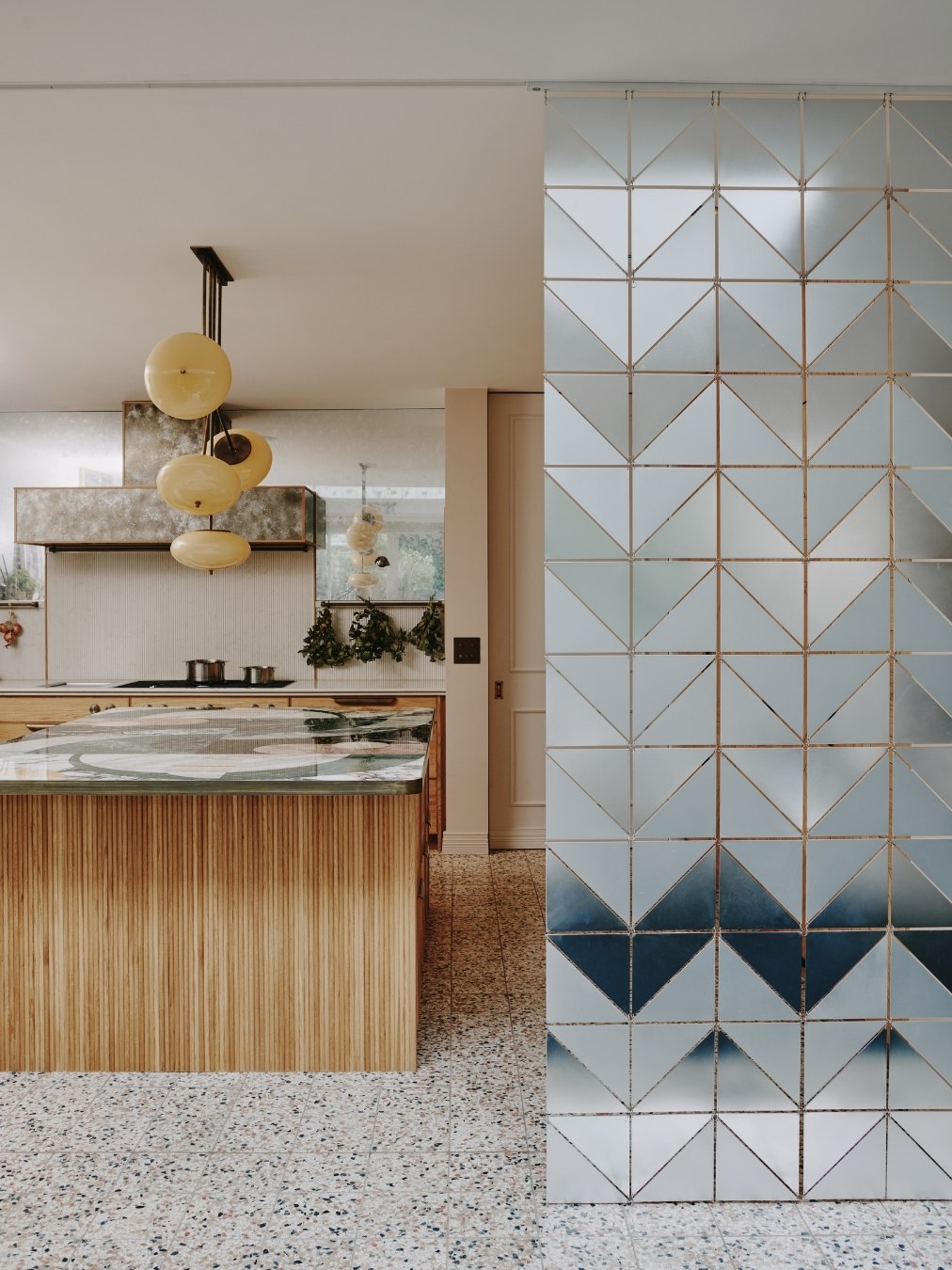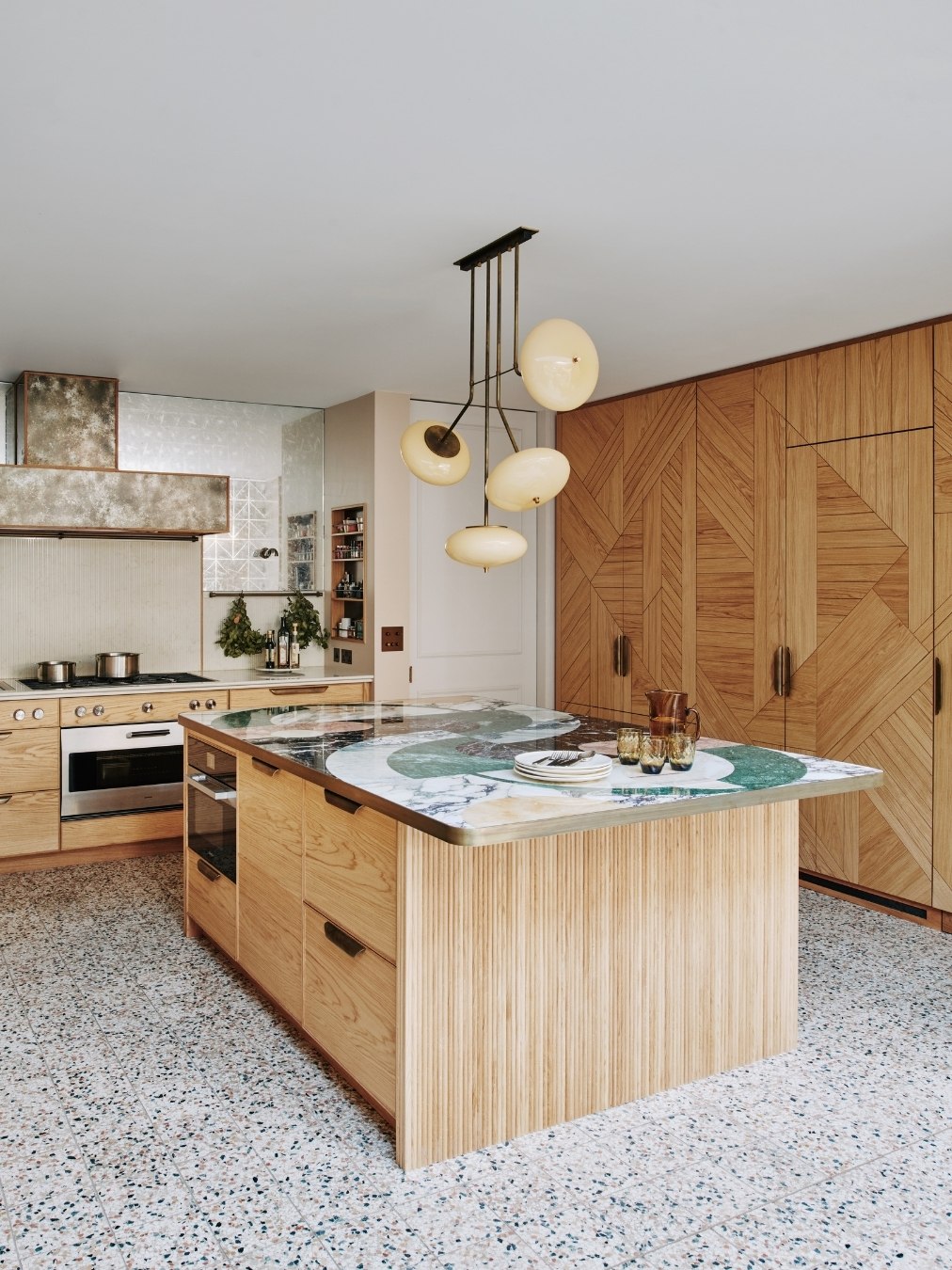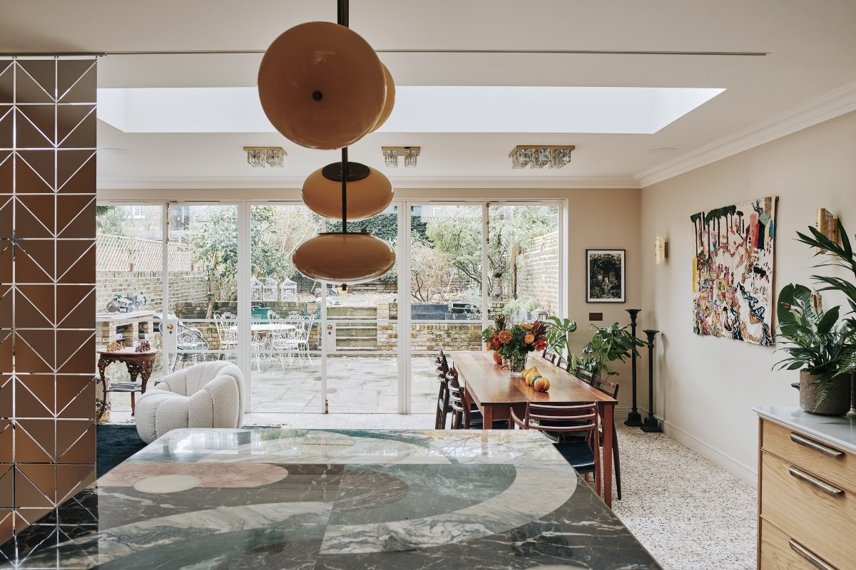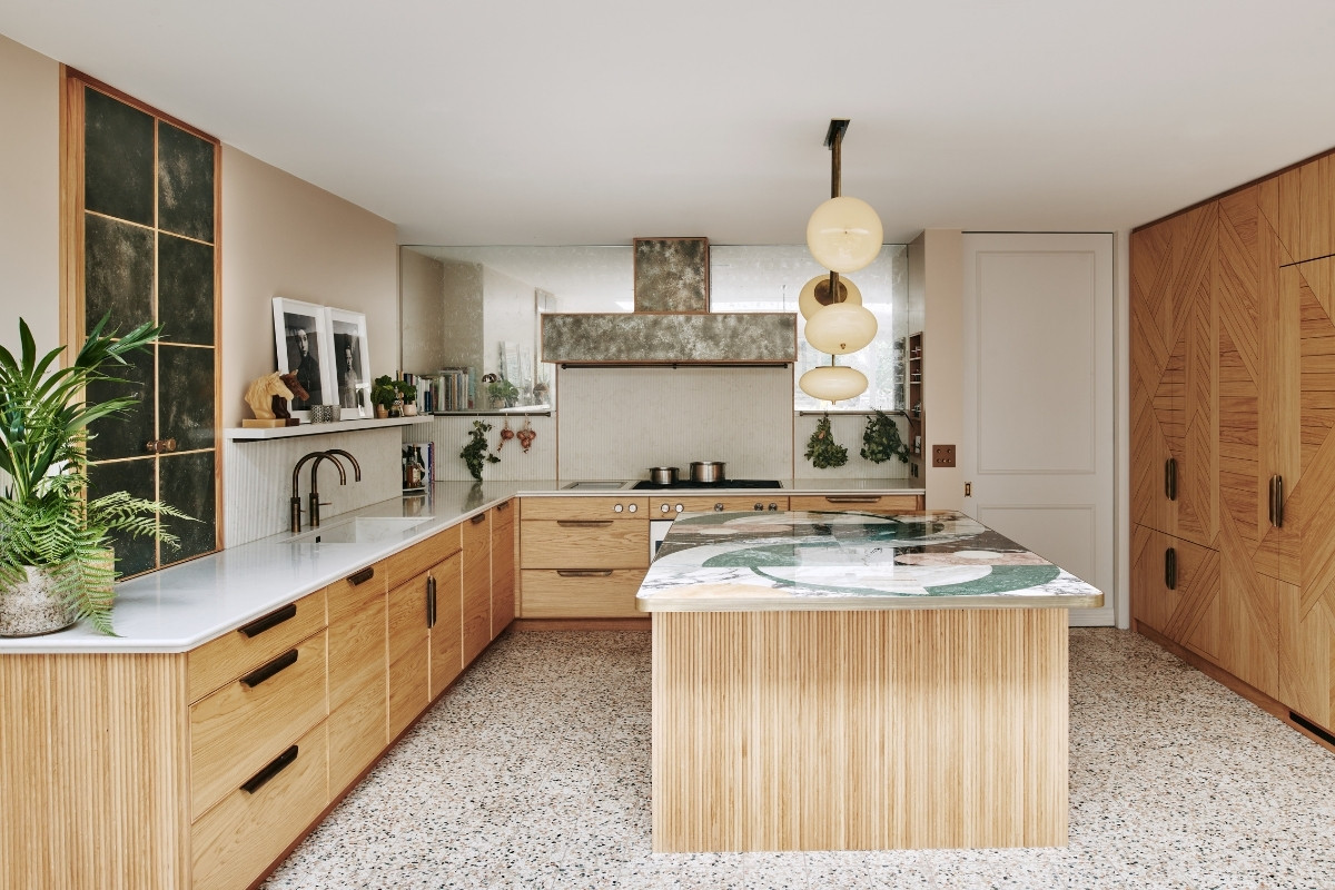 13th June 2022 | IN KBB DESIGN | BY SBID Share Tweet Pinterest LinkedIn When it comes to challenging the limits of what materials can do, Ledbury Studio is building something of a reputation. The latest design, the Camden Kitchen, is a textbook example of this, combining beautiful materials and artisanal techniques to stunning effect. Ledbury Studio founder Charlie Smallbone talks through how the Camden Kitchen was realised. What was the project brief? Our client has a strong sense of style, so was already full of ideas when she came to see us. I really like that because the design process should always be a collaborative one, and is personal to each client. In this case, the room was being extended into the garden beyond, and we were tasked with designing a relaxed and informal space for cooking and entertaining. How did you design the furniture? I had decided to use English and European oak throughout the kitchen, and we took particular care to select oak all from the same batch. The result is that the grain matches perfectly and can be seen to run across the width of all the drawers, it’s a really satisfying detail. And for the full-height cupboards, we introduced a design motif that completely belies the practical nature of the fridge, freezer and larder concealed behind. What can you tell us about the worktops? The show-stopping island top is a work of art by Lara Bohinc of Bohinc Studio. It’s a selection of Italian marbles, inlaid into an aged-brass edge trim, in a selection of shades that elegantly complement the muted colours throughout the rest of the kitchen. For the long runs of worktop, we specified Ambra quartz, for natural-looking veining in a hard-wearing manmade material. How have you used pattern and texture in this kitchen? We’ve employed our signature use of metal with patinated zinc panels on the cupboard to the left and on the extractor hood, where it’s trimmed with aged brass. There is an antiqued glass panel surrounding the extractor, which reflects light from the garden around the kitchen. And possibly my favourite detailing is the delicate fluted oak on the ends of the island, which is echoed in the fluted Ambra quartz splashback. Any other design highlights? As this was to be a room for entertaining, our client particularly requested a screen she could pull across to divide the dining area from the kitchen when required. I was inspired by a ‘70s design the client found in an antiques shop, to create this screen of brushed and polished stainless steel in a striking geometric pattern. It’s a great finishing touch to this beautifully eclectic kitchen. Ledbury Studio kitchens start from £50,000. About Ledbury Studio Charlie Smallbone needs little introduction. The founder of iconic brand Smallbone of Devizes, he has been pushing the boundaries of kitchen design for over 40 years. Charlie’s latest venture, Ledbury Studio, was born of his desire to harness the beauty of original materials whilst creating practical kitchens that exude style and elegance. Visit Profile If you’d like to feature your product news here, get in touch to find out more. If you’d like to become SBID Accredited, click here for more information.