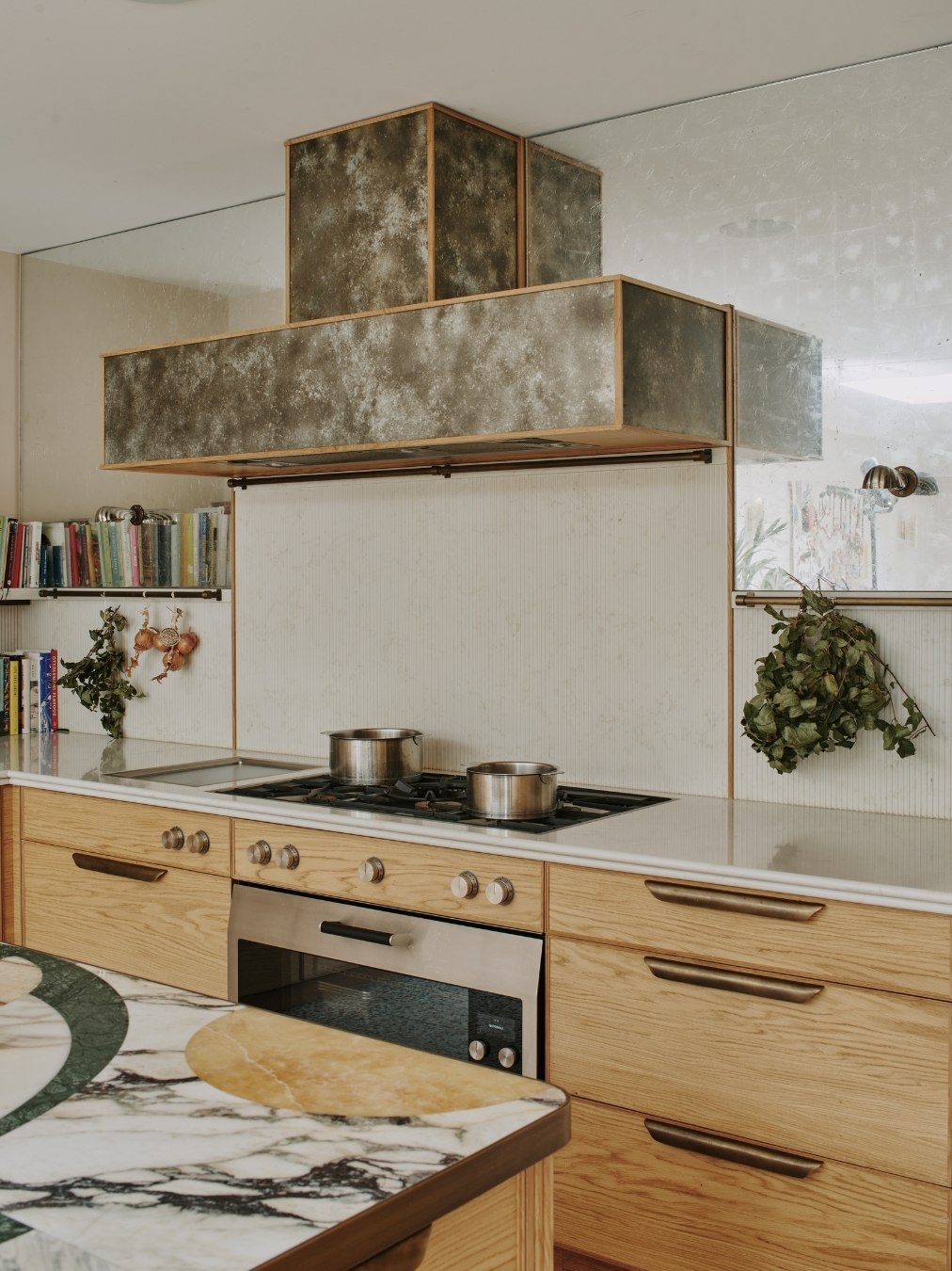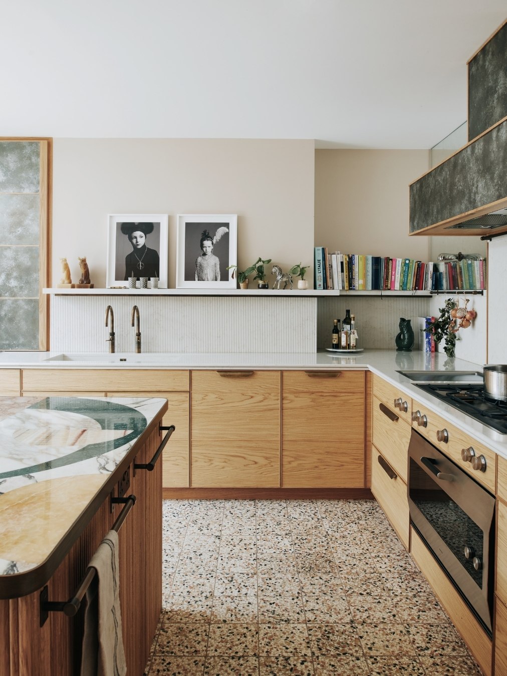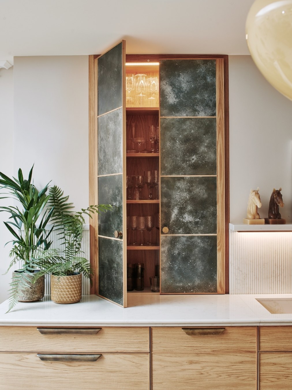 13th June 2022 | IN KBB DESIGN | BY SBID Share Tweet Pinterest LinkedIn When it comes to challenging the limits of what materials can do, Ledbury Studio is building something of a reputation. The latest design, the Camden Kitchen, is a textbook example of this, combining beautiful materials and artisanal techniques to stunning effect. Ledbury Studio founder Charlie Smallbone talks through how the Camden Kitchen was realised. What was the project brief? Our client has a strong sense of style, so was already full of ideas when she came to see us. I really like that because the design process should always be a collaborative one, and is personal to each client. In this case, the room was being extended into the garden beyond, and we were tasked with designing a relaxed and informal space for cooking and entertaining. How did you design the furniture? I had decided to use English and European oak throughout the kitchen, and we took particular care to select oak all from the same batch. The result is that the grain matches perfectly and can be seen to run across the width of all the drawers, it’s a really satisfying detail. And for the full-height cupboards, we introduced a design motif that completely belies the practical nature of the fridge, freezer and larder concealed behind. What can you tell us about the worktops? The show-stopping island top is a work of art by Lara Bohinc of Bohinc Studio. It’s a selection of Italian marbles, inlaid into an aged-brass edge trim, in a selection of shades that elegantly complement the muted colours throughout the rest of the kitchen. For the long runs of worktop, we specified Ambra quartz, for natural-looking veining in a hard-wearing manmade material. How have you used pattern and texture in this kitchen? We’ve employed our signature use of metal with patinated zinc panels on the cupboard to the left and on the extractor hood, where it’s trimmed with aged brass. There is an antiqued glass panel surrounding the extractor, which reflects light from the garden around the kitchen. And possibly my favourite detailing is the delicate fluted oak on the ends of the island, which is echoed in the fluted Ambra quartz splashback. Any other design highlights? As this was to be a room for entertaining, our client particularly requested a screen she could pull across to divide the dining area from the kitchen when required. I was inspired by a ‘70s design the client found in an antiques shop, to create this screen of brushed and polished stainless steel in a striking geometric pattern. It’s a great finishing touch to this beautifully eclectic kitchen. Ledbury Studio kitchens start from £50,000. About Ledbury Studio Charlie Smallbone needs little introduction. The founder of iconic brand Smallbone of Devizes, he has been pushing the boundaries of kitchen design for over 40 years. Charlie’s latest venture, Ledbury Studio, was born of his desire to harness the beauty of original materials whilst creating practical kitchens that exude style and elegance. Visit Profile If you’d like to feature your product news here, get in touch to find out more. If you’d like to become SBID Accredited, click here for more information.