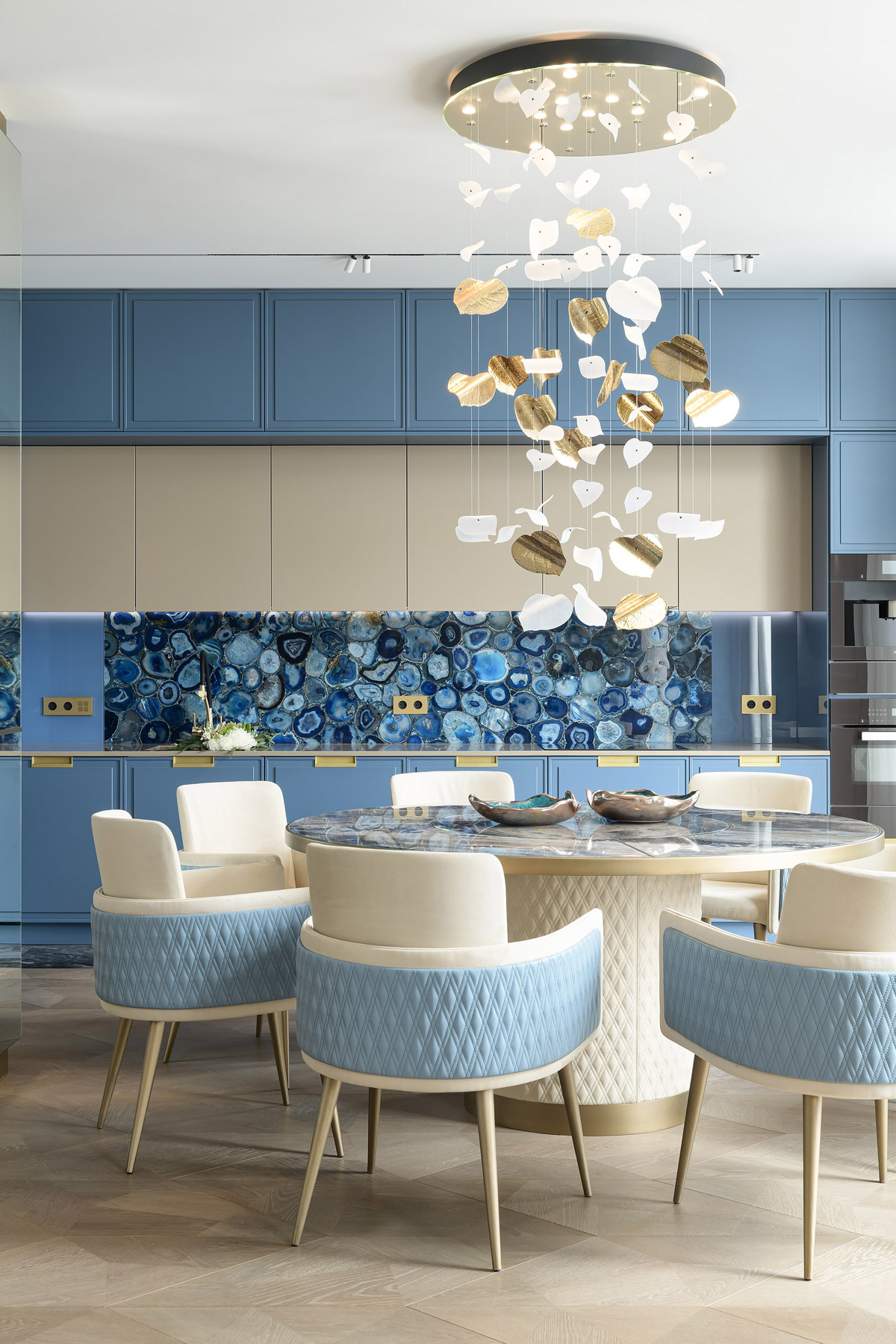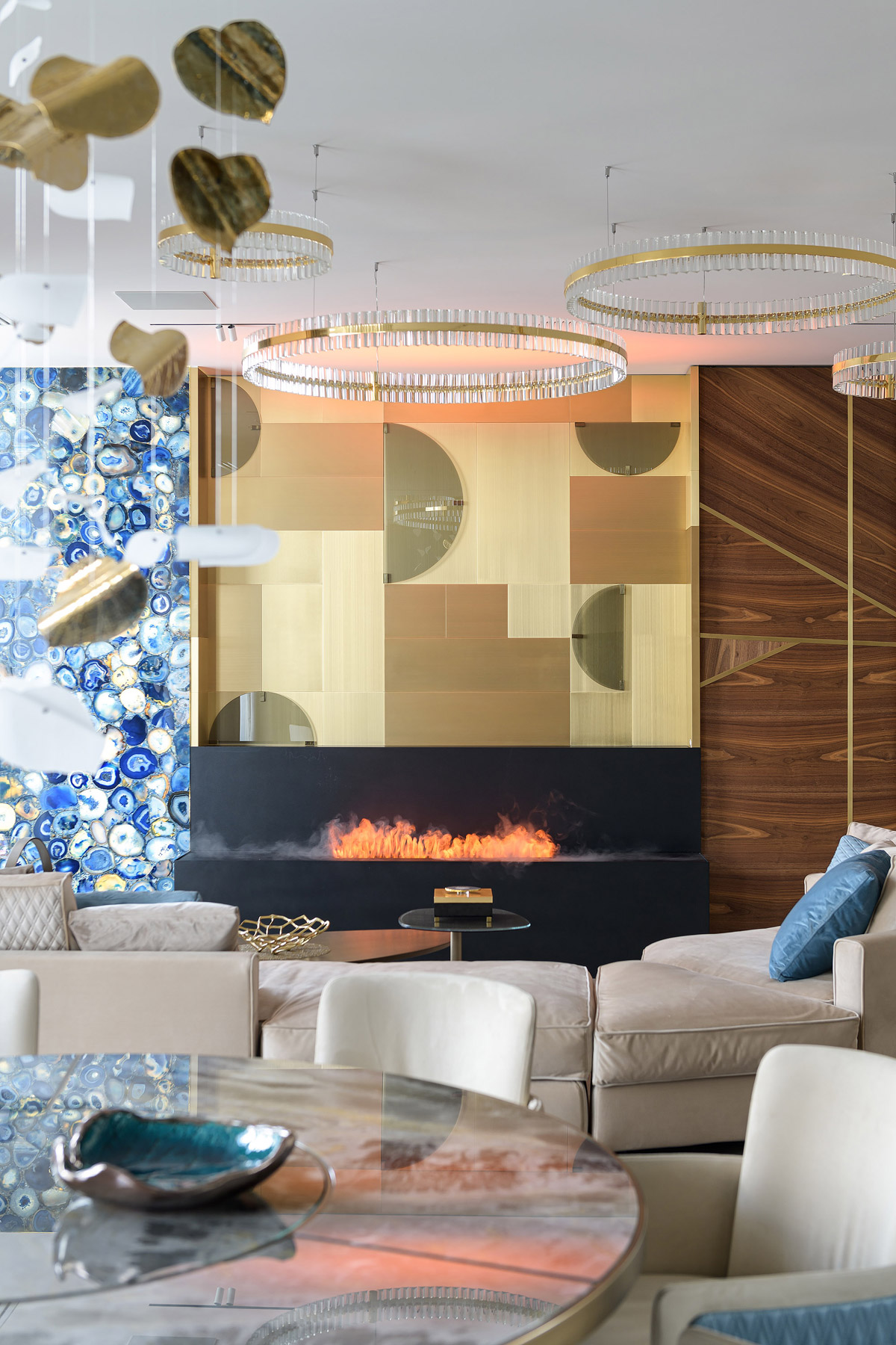 1st December 2021 | IN PROJECT OF THE WEEK | BY SBID Share Tweet Pinterest LinkedIn This week’s instalment of Project of the Week interior design series features a luxurious residential apartment design by 2021 SBID Awards Finalist, Mane Design. An apartment with an area of 260 sqm is located in the very centre of Kiev, on the last 32nd floor. It has with terraces that offer stunning views of the city. The apartment is designed in a modern classical style, using expensive materials and furniture. Blue Agate Stone – the heart of the apartment – was brought from India. It is a delicate stone that carries harmony, tranquillity and grace. The atmosphere in the apartment is soothing; pleasant colours and natural textures add elegance to the interior, while brass adds warmth. The apartment is not only beautiful, but also has a comfortable and functional plan. Its divided into zones: public, children’s and the owner’s zone. The public area consists of a living room-kitchen where there is a bar, which is successfully hidden behind panels that can be pulled apart with a slight movement of the hand. There is access to a huge terrace with a barbecue, a seating area with a sofa, tables and chairs for eating. In the entrance part there is a guest toilet and a large dressing room, as well as a separate laundry. The children’s area has two bedrooms, a separate children’s wardrobe, a bathroom and an access to terrace from each bedroom. SBID Awards Category: Residential Apartment Over £1M Practice: Mane Design Project: Blue Agate Location: Kyyiv, Ukraine What was the client’s brief? The clients are a young, successful and hard-working couple. They are modern, lively and value comfort and beauty. Therefore, the brief asked for a bright colours and non-standard, interesting solutions but at the same time a comfortable and functional design – the place where they can relax after a work day or have parties with friends. What inspired the design of the project? We were inspired by our clients themselves: by their lifestyle, ideas, attitude to design, and, of course, complete creative freedom given to us. What was the toughest hurdle your team overcame during the project? Our team did not encounter any special difficulties during this project. What was your team’s highlight of the project? This entire project consists of highlights. In every corner you can find something interesting. There are a lot of details that you will want to examine, things that attract attention, such as: wonderful natural agate stone brought from India, an art object “Fishes” specially designed by us for this project, which glows in millions sparks, the TV which moves out from the stand by pressing the button on the remote control (because our client did not want to see TV in the interior), a hidden bar, a hidden projector and a screen coming out of the ceiling, a toilet in front of the window, delightful lighting everywhere… and, of course, an unforgettable view from the apartment. Why did you enter this project into the SBID Awards? We respect SBID International Design Awards and consider the judges’ decisions to be fair. Questions answered by Mane Megrabyan, Interior Designer and Head of Studio, Mane Design. We hope you feel inspired by this week’s design! If you missed the last instalment of Project of the Week, featuring a design for hotel’s exclusive spa lodges by Nielsen House, click here to see more.