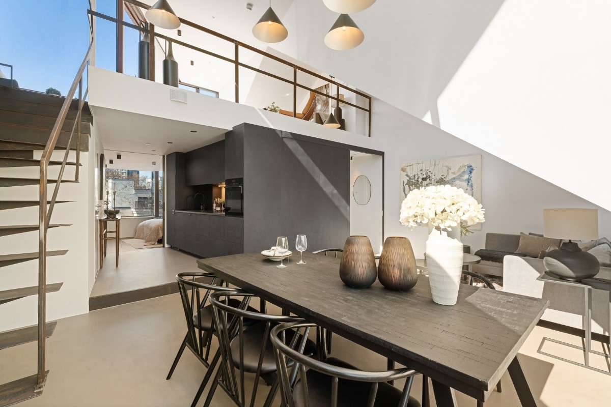 6th August 2024 | IN INTERIOR DESIGN PROJECTS | BY SBID Share Tweet Pinterest LinkedIn Following the previous collaboration between architectural bureau IK-architects and Norwegian developer Predio, creating HG-31 attic apartment in Oslo, architects continued their cooperation and presented another renovated attic apartment – a brutalist two-story apartment, inspired by Tom Ford’s style in Oslo. Photography: Veronika Moen The apartment has two floors and thoughtful zoning, which separates the public area from the private area. This is a full-fledged one-bedroom apartment for a young person or a couple without children, with a large kitchen-living room, a bedroom, a bathroom, and a wardrobe hidden behind the head of the bed. Photography: Veronika Moen The interior design was inspired by Tom Ford’s timeless appeal – the style of the apartment could be described as classic simplicity with a hinge of brutalism. In the apartment, which is a renovation project of an abandoned attic, architects managed to preserve the original, authentic structure of the concrete wall, which was later adapted to the interior in the brutalist style. Photography: Veronika Moen According to the client’s brief, the team mounted a glass wall between the bedroom and the shower, delineating an additional attraction area. As in the HG-31 project, a sliding system was created in the form of a dark monolithic box, which hides the entire kitchen, its technical part, sliding facades that hide the entrance door. Photography: Veronika Moen The architects faced the task of creating a bright, cosy and pleasant interior that would organically implement an element of brutalism. Even though the interior contains many dark colours, due to a well-thought-out design strategy, the interior itself is not dark. It combines warm wood, red metal and chairs, and the sky-blue colour of the art piece on the wall. The stairs from the first to the second level are made of raw black metal, covered with a matte transparent varnish, and on the first floor, and MicroCement is used for the floor covering. Photography: Veronika Moen “In the project, we used a concrete wall, a concrete floor and raw black metal, which plays well in contrast with the wooden elements. In my opinion, it is this unusual concrete approach that distinguishes the apartment from the classic wooden Scandinavian style”, shares Kateryna Yarova, chief architect of IK-architects. Photography: Veronika Moen This project is a great example of two amazing teams, Predio and IK-architects, working together to create a modern, stylish, and practical living space in the historic centre of Oslo. This realization is not only a testament to high quality but also an embodiment of the aspiration to improve the quality of life in cities through sustainable development and the enhancement of design and functionality in real estate. Photography: Veronika Moen The Ukrainian architectural bureau IK-architects has been developing design projects for more than a decade. They specialise in Scandinavian design, minimalism, and blending different styles and trends. Photography: Veronika Moen Predio is a Norwegian development company that specialises in lofts conversions in Oslo. They carefully choose the best locations in the city to create luxury apartments, penthouses, and townhouses geared towards being great property investments. Predio’s goal is to enhance urban living through sustainable development and their expertise in residential and commercial real estate. IK-architects has teamed up with Predio for several years now. Photography: Veronika Moen The following project was accomplished in collaboration between leading Predio architects and IK-architects designers. Before, they have also made HG-31 attic apartment in Oslo together. Photography: Veronika Moen Developer company Predio Svein Stokke, Andrii Soloviov, Andriy Ponomarenko Interior design by IK-architects Kateryna Yarova, Khrystyna Stavytska Location: Oslo, Norway Built area: 87 m² Completion year: 2022 (The year of construction is 1988) Construction: COWI Furniture manufacturing: Lachma Client: Private Status: Completed Cost: £350,000 About IK-architects Good design is not visible, good architecture is imperceptible – it’s just a comfortable state and space for the user; but this is a colossal effort and knowledge for the designer. Visit Profile If you’d like to feature your news or stories on SBID.org, get in touch to find out more. If you’d like to become SBID Accredited, click here for more information.