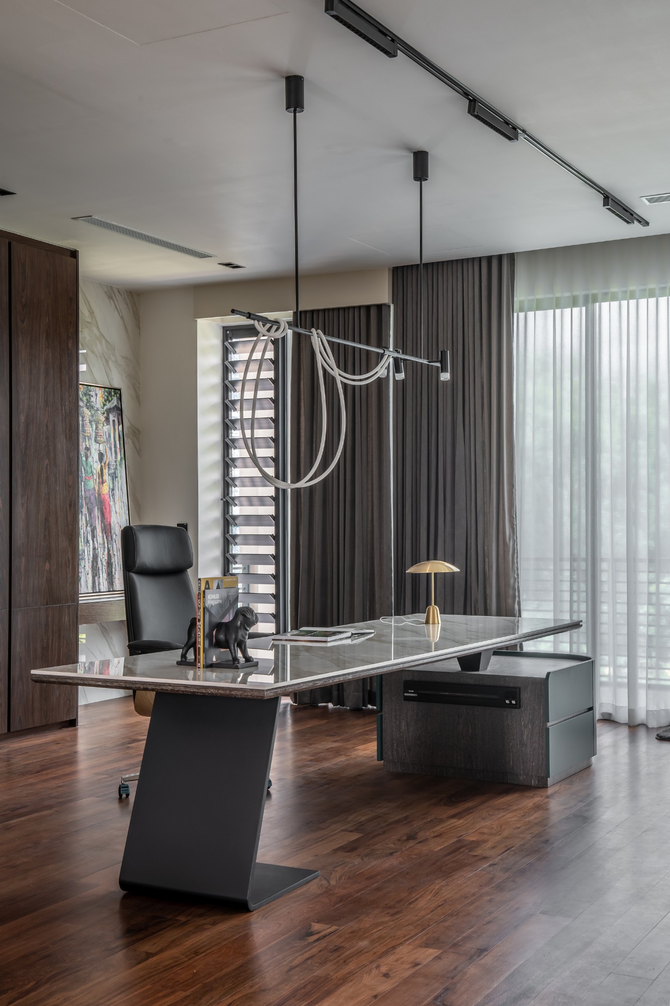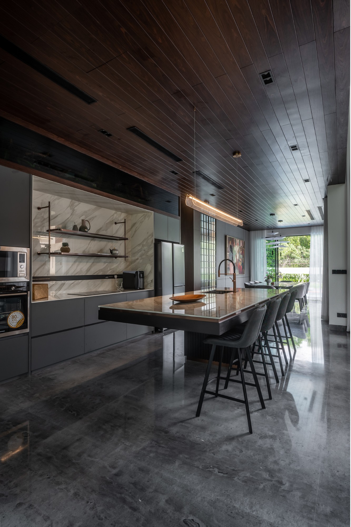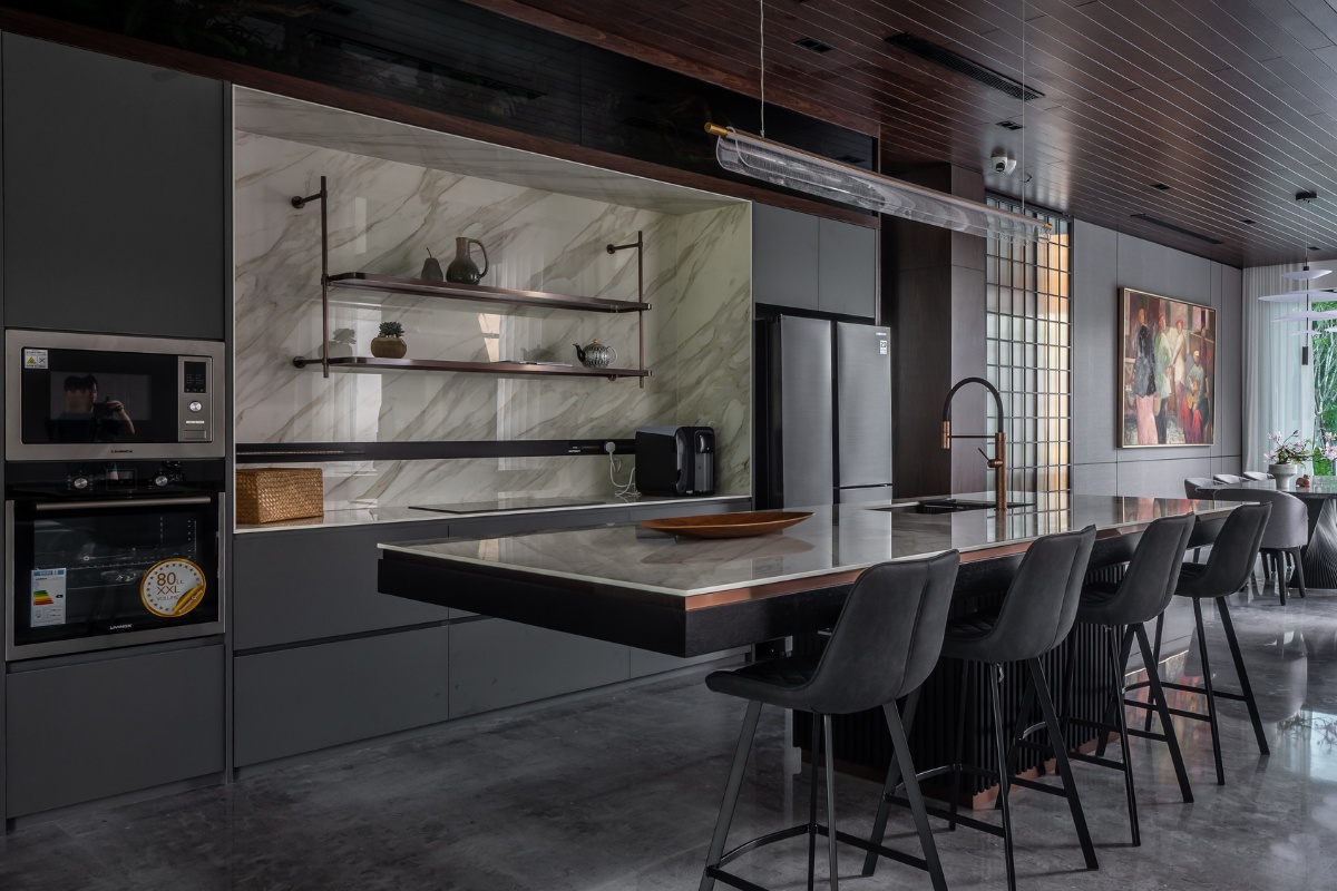 20th July 2023 | IN INTERIOR DESIGN PROJECTS | BY SBID Share Tweet Pinterest LinkedIn A home is more than just a physical structure; it is a living sanctuary that evolves alongside its residents’ ever-changing lifestyles. Recognising this profound truth, the perceptive owners of a plot of land in Kuala Lumpur embarked on a quest to create a haven that would adapt to their evolving needs and desires. Retired and in their 50s, they turned to Nu Infinity with a clear vision: to construct a communal block adjacent to their existing home, seamlessly integrating the old and the new. Nu Infinity Nu Infinity With the future in mind, the owners sought a personalised touch that would set their new space apart from their current abode. They desired a slightly smaller area, meticulously tailored to their lifestyle and preferences. The architectural plan encompassed a secondary kitchen and a spacious study area on the upper floor, with the potential to transform into a luxurious bedroom complete with an attached bathroom, ample wardrobe space, and a convenient makeup table. Entrusting their dreams to Nu Infinity, they embarked on an extraordinary collaboration. Nu Infinity As avid art collectors with refined taste, the owners prioritised an environment that exuded sophistication and individuality. They envisioned a space that would not conform to generic standards but would instead showcase their cherished art collection while maintaining a harmonious and tasteful ambiance. A particularly striking element in their brief was the request for a signature staircase that would gracefully complement the breathtaking full-height glass window, providing an unobstructed view of the mesmerising surroundings. Nu Infinity Nu Infinity Impressed by Nu Infinity’s portfolio, the couple’s daughter warmly recommended their services and graciously introduced them to her parents. The designers at Nu Infinity were captivated by the project’s potential, as the owners welcomed new ideas and gave them creative freedom to interpret and advise on the best solutions to bring their practical requirements to life. Stepping onto the construction site, still in its skeletal form, the designers envisioned transformative changes that would not only meet but surpass the clients’ expectations, adding immense value to their home. The element of surprise became a vital component in delivering an exceptional outcome. Nu Infinity Initially destined for the current kitchen area, the dining table took on a bold new position overlooking a tranquil swimming pool, framed by generous folding door openings. To establish a seamless flow between the living and dining areas, the kitchen was relocated to the center of the communal block. While serving its primary function as a kitchen, the space transcended mere practicality. The designers crafted the upper part to feature a captivating preserved moss aquarium, a testament to the harmonious fusion of nature and design. Nu Infinity Nu Infinity Creating a serene retreat that catered to the needs of a retired couple while seamlessly integrating with the existing house posed an exhilarating challenge. The concept of interchangeable spaces, guided by the designers’ vision of a functional and progressive home, presented an enticing opportunity for innovation. Adjacent to the kitchen, an area was thoughtfully planned to be sealed off and transformed into a dedicated wet kitchen in the future, ensuring optimal functionality. Every inch of space was meticulously crafted to ensure optimal proportions and a well-defined hierarchy of usage, guaranteeing a harmonious flow throughout the home. Nu Infinity At Nu Infinity, leaving a lasting impression lies at the heart of their design approach. They take immense pride in their unconventional use of elements, such as preserved moss, which introduces a touch of nature and texture to this project. The seamless integration of different materials, including the striking high-ceiling wall, the warm wood veneer, and the sleek marble, embodies the core essence of their design philosophy. Nu Infinity Nu Infinity Thrilled with the remarkable transformation, the clients eagerly anticipate growing old in their newly re-imagined space. In this inspiring case study, Nu Infinity successfully transcended the boundaries of architecture and design, crafting a home that not only meets the evolving needs of its inhabitants but also stands as a testament to the art of adaptability. As the homeowners’ lifestyles change with each passing year, their sanctuary will evolve in harmony, becoming a true reflection of their ever-transforming journey through life. Nu Infinity About Nu Infinity Purveyor of luxury interiors for private, retail, hospitality and F&B clients. Nu Infinity is headed by experienced Designers, Interior Designers and Builders, where we enrich the way you live, work and play through passionate, inspiring and professional approaches. We recognize good design adds value to the economy and quality of life. We involve design disciplines in problem solving situations. We consciously evolve our design ideas to cater to the changing times and to the different briefs. Visit Profile If you’d like to feature your news or stories on SBID.org, get in touch to find out more. If you’d like to become SBID Accredited, click here for more information.