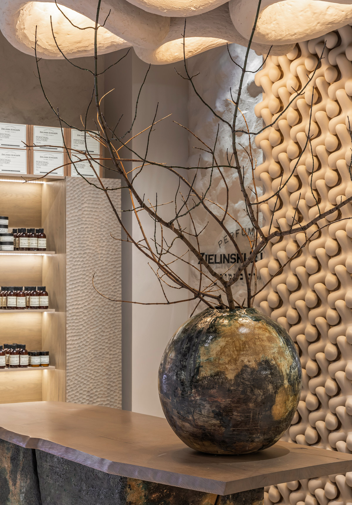 9th February 2022 | IN PROJECT OF THE WEEK | BY SBID Share Tweet Pinterest LinkedIn This week’s instalment of Project of the Week series features a retail space design by 2021 SBID Awards Finalist, Makhno Studio. SBID Awards Category: Retail Design Practice: Makhno Studio Project: Zielinski & Rozen Location: Kyiv, Ukraine What was the client’s brief? The customer wanted to create a showroom in a Ukrainian contemporary style. What inspired the design of the project? Natural materials and ancient Ukrainian traditions. What was the toughest hurdle your team overcame during the project? Despite the small area, the creation and realisation of the project had some real challenges. We had two weeks and only two online meetings to discuss and approve the visualisations. We also had limited time for the project realisation — 30 days sharp. Moreover, it was only possible to carry out the construction work at night time. The architects lost their sleep for a month, but for the sake of the result, we happily made this sacrifice. What was your team’s highlight of the project? We understood that there was no room for error, so the night before the store opened we controlled the final construction until five in the morning. The interior is wrapped in materials typical of Ukrainian culture — ceramics and wood. In the centre of the composition, there is a table with a cracked ceramic base made in our workshop. A vase from Serhii Makhno complements the colour scheme of the table. All the walls are decorated with clay plaster — it is a modern version of the technology used in the days of our great-grandparents. The main wall is decorated with Tetrapod 3D tiles, which won the international Red Dot Design Award in 2017. Soft accents are added by the snow-white Khmara lamps made in our ceramic workshop. Why did you enter this project into the SBID Awards? This is one of the most prestigious international design awards. The jury of the competition are professionals in their field, trendsetters and very interesting personalities. It is an honour to present our work to them and receive recognition. We also respect SBID Awards for the organizational aspects that make submissions a real pleasure. View the project Questions answered by Serhii Makhno, Founder, Makhno Studio. We hope you feel inspired by this week’s design! If you missed the last instalment of Project of the Week, featuring a family home design by Artwill Interior Design House, click here to read it.