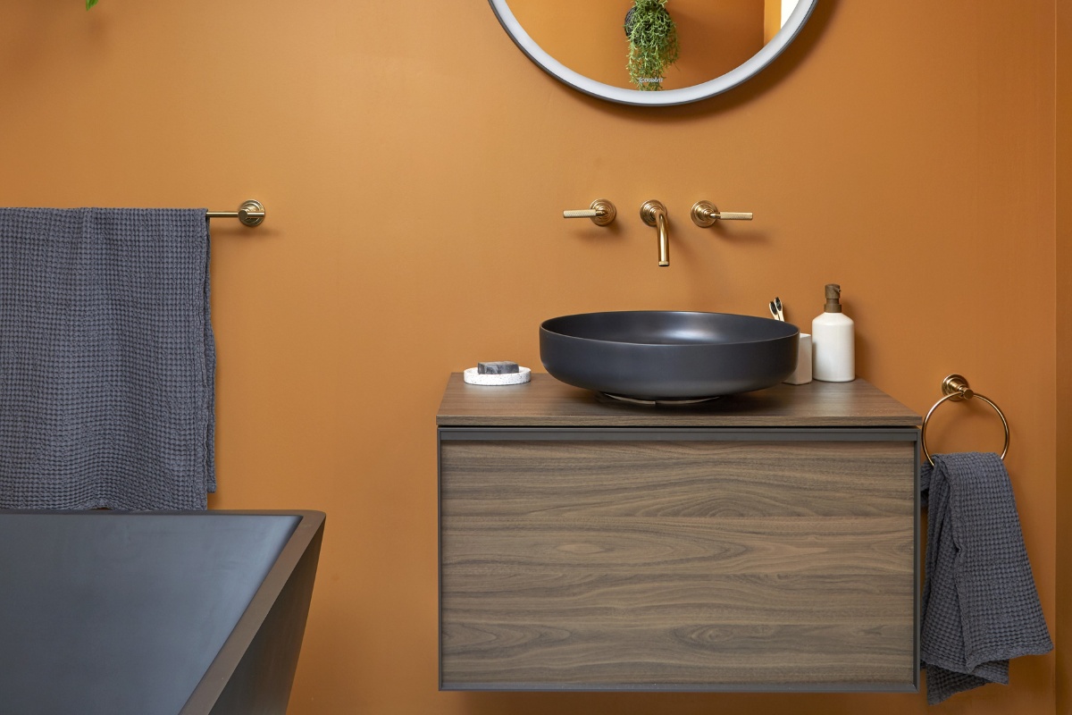 When incorporating Caramel Latte into the bathroom, begin with the softer, lighter hues and introduce accents of toasted caramel – particularly effective with softer shapes. Think lacquered basins and vanity units, tonal soft furnishings, light fittings, and rugs.