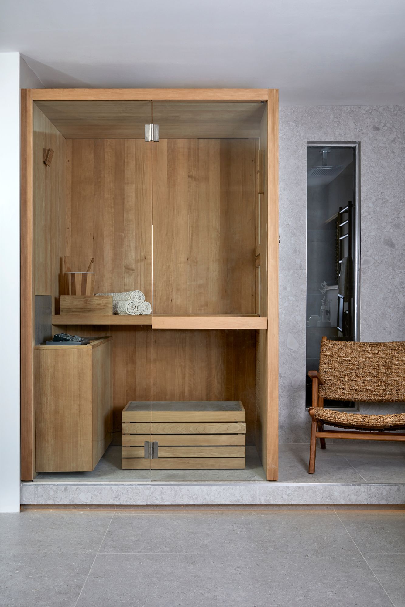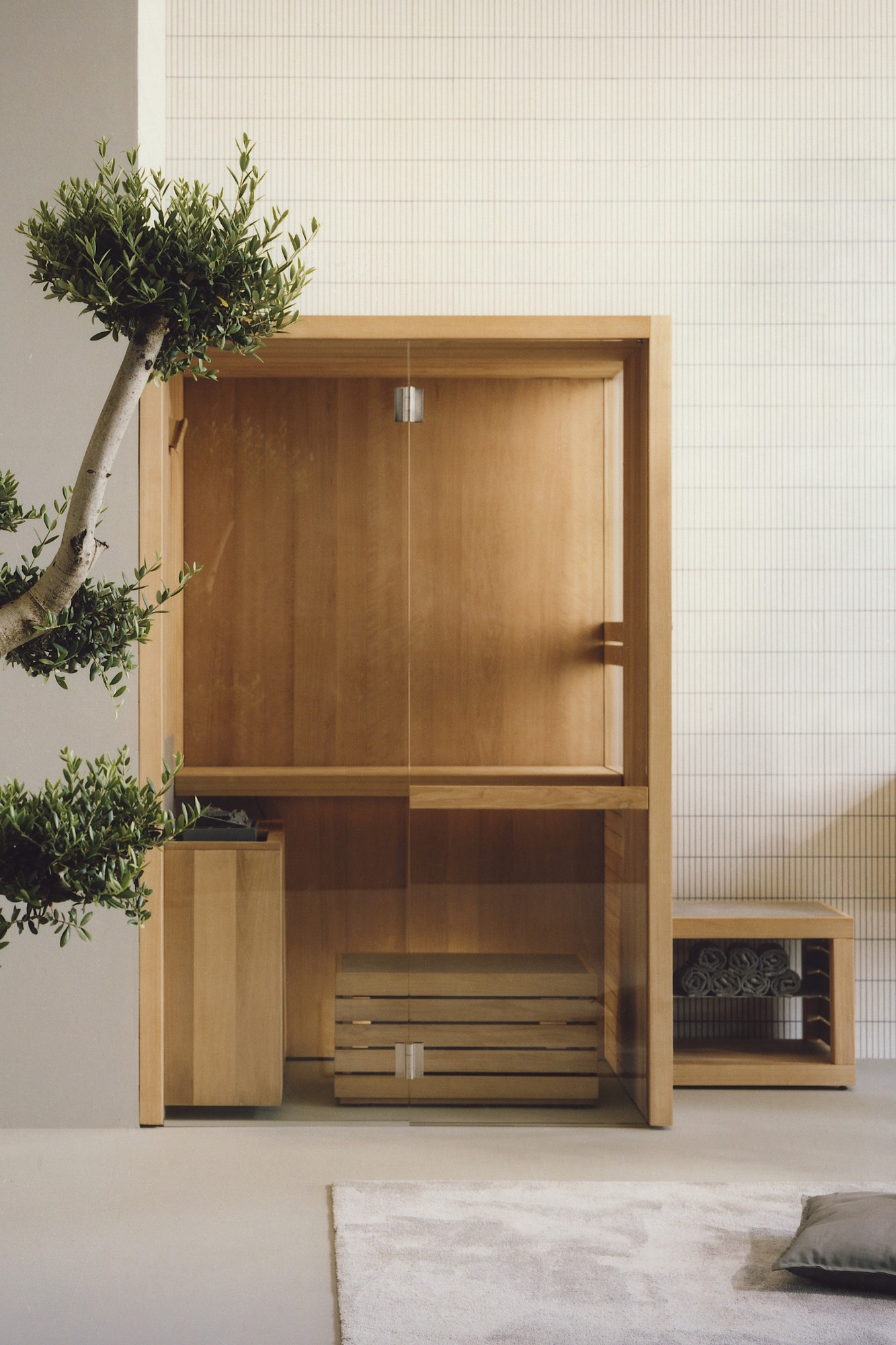 Natural is a glass-fronted home sauna composed of heat-treated Aspen exuding a warming timber essence to enhance its connection with nature, complete with chromotherapy light, reverberating off the satin glass side panel to create an immersive colour experience that aids relaxation and wellbeing.