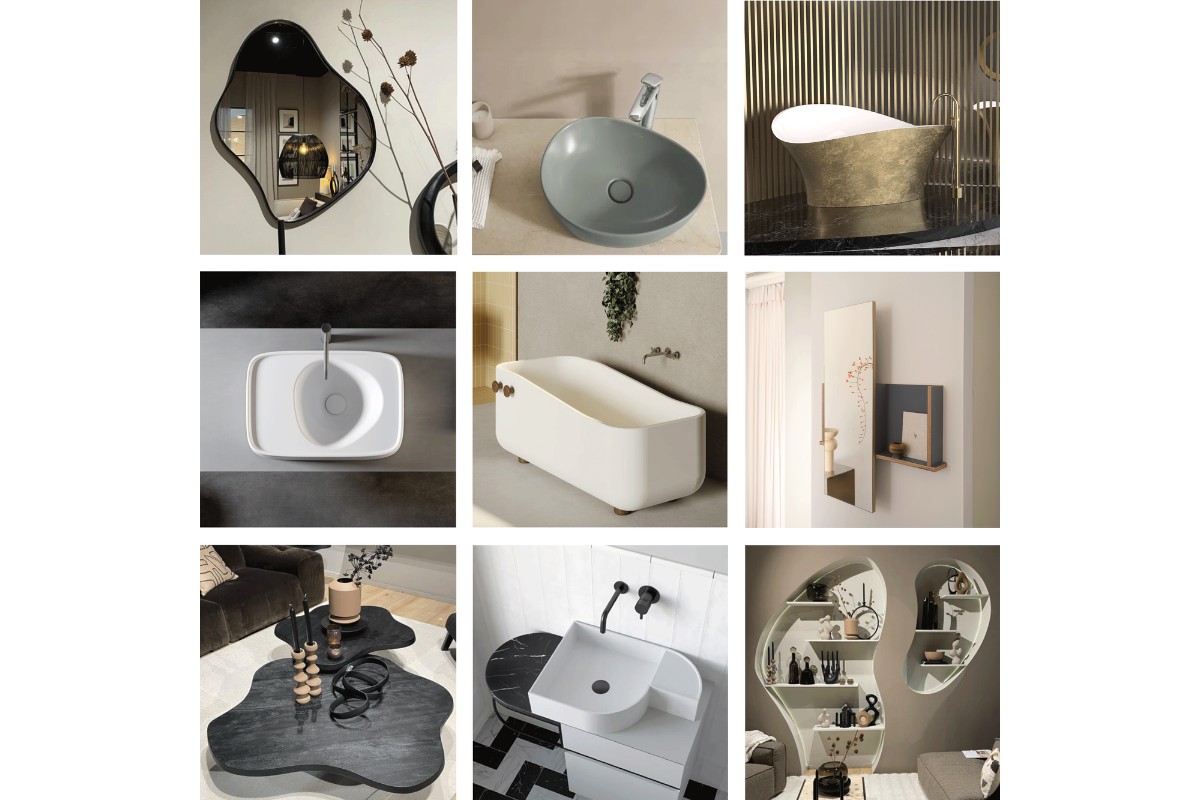 This trend celebrates the allure of imperfection, infusing spaces with dynamic movement, excitement, and a playful edge. Mirrors, tables, basins, baths, and rugs, this organic trend is anticipated to cascade further into 2024.