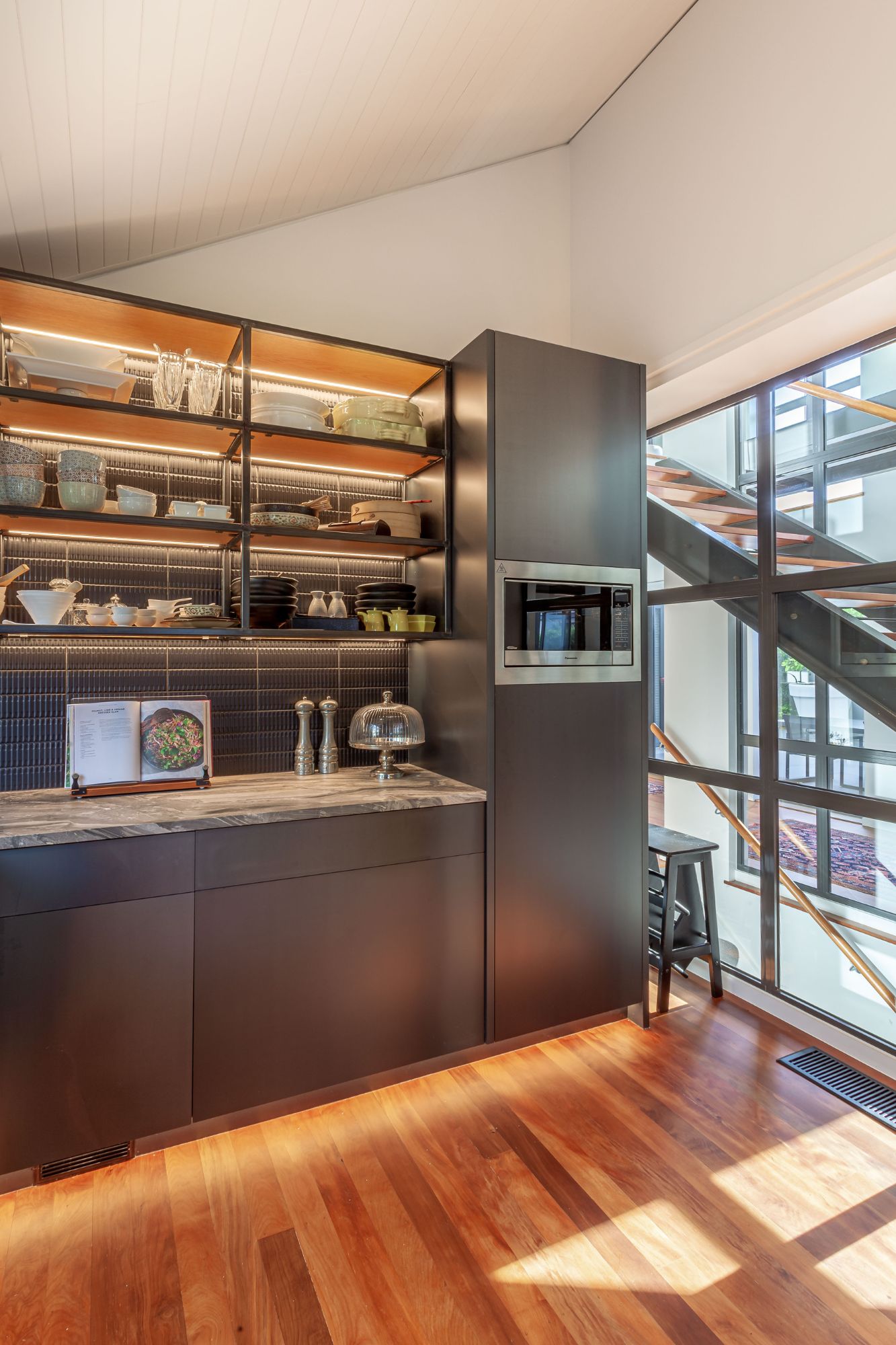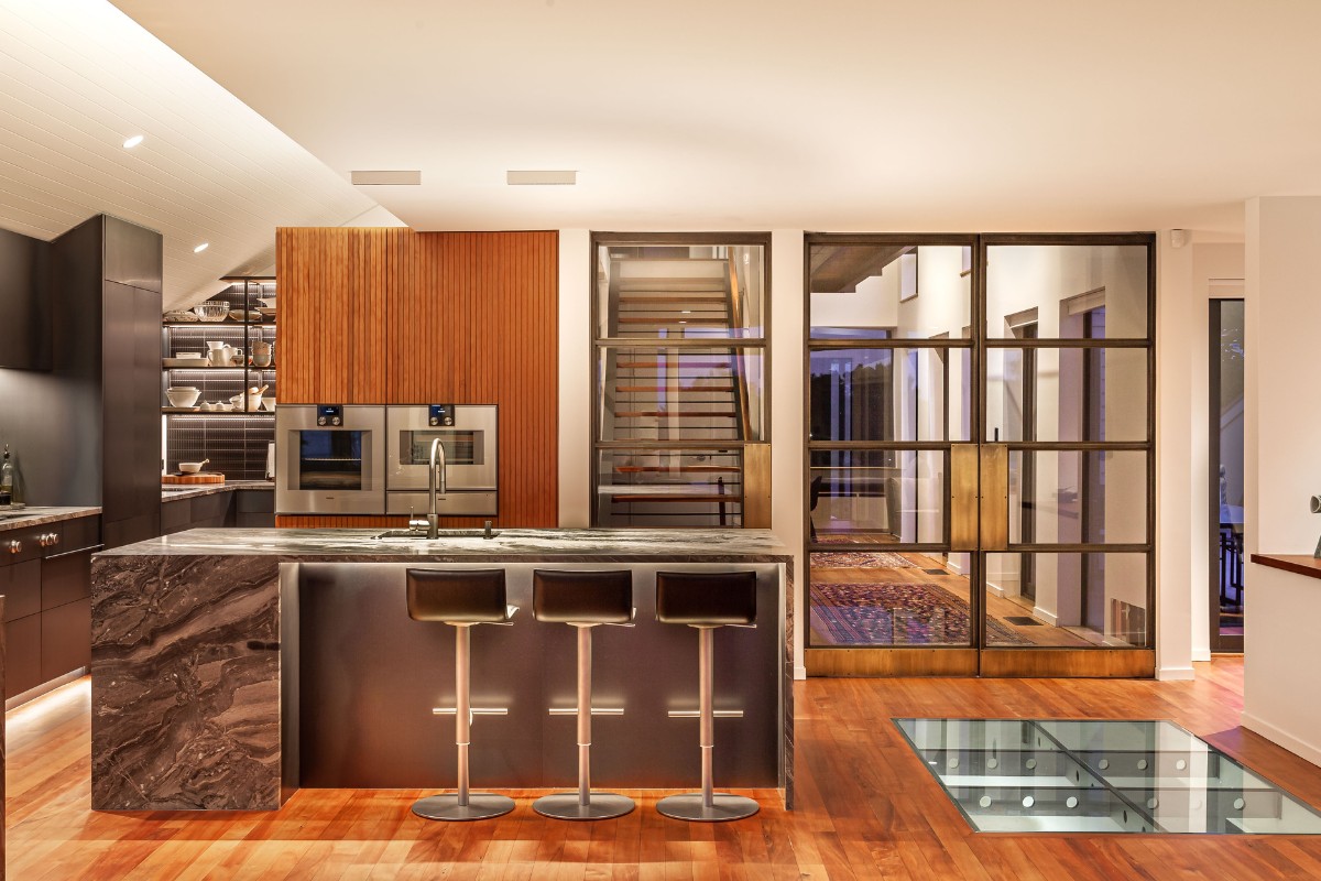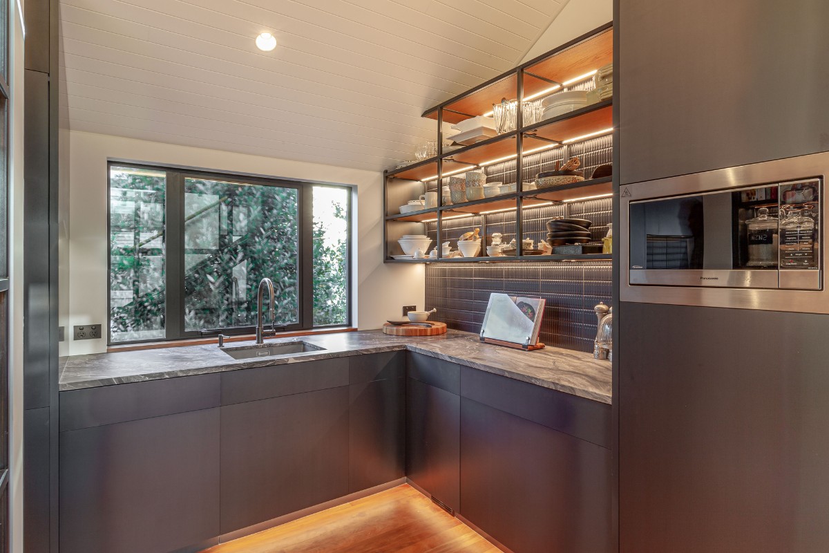 The Clients brief & the house architecture. The home had quite industrial and native NZ timber features, especially the open stairwell which can be seen from the front and larder.