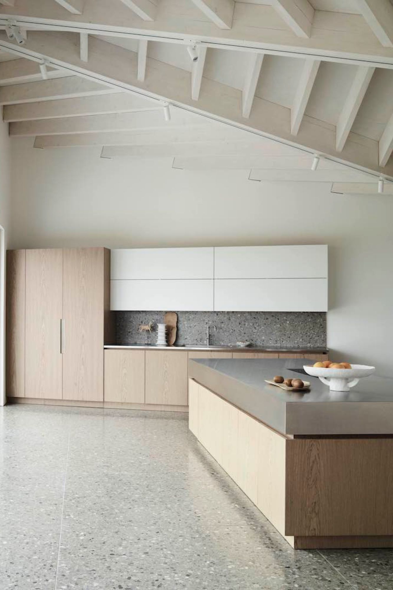 The importance of lighting cannot be overemphasised when planning an earthy neutral palette. Above all, you need to avoid a chilly atmosphere, so aim for light bulbs with colour rendition in the range of 2700K-3000K, which will provide a warm, white light that complements soft neutrals like stone and greige. Also try to plan in as much natural light as possible to highlight the depth and variety of a neutral palette throughout the day. Large-scale architectural glazing is ideal, while skylights and roof lanterns are also a popular way to flood a neutral kitchen with light.