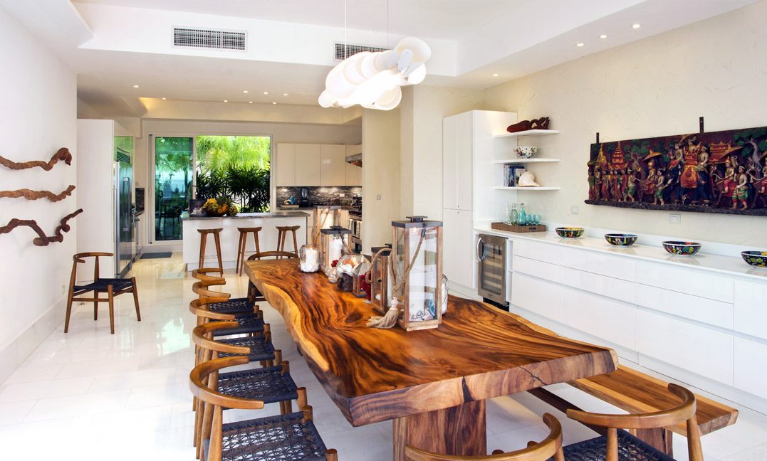 The residence harmoniously blends in with the environment, respecting and honouring the natural habitat that hosts it. With no straight lines or sharp angles, it respects the organic shapes of the ground on which it was built. There is real purpose in its design: to force us to be present, paying attention and observing our every step. The use of ferro-cement was specifically chosen to avoid the introduction of heavy machinery into the jungle, thus preventing the felling of 250 trees. Moreover, the material gives the space a cosy feeling. The finish, carefully crafted with local materials, makes this a unique space of purely organic forms. Meticulously conceived thorough attention to detail and amenities for entertainment, this property redefines life in the jungle, promoting a non-invasive dialogue between architecture and its natural surroundings.