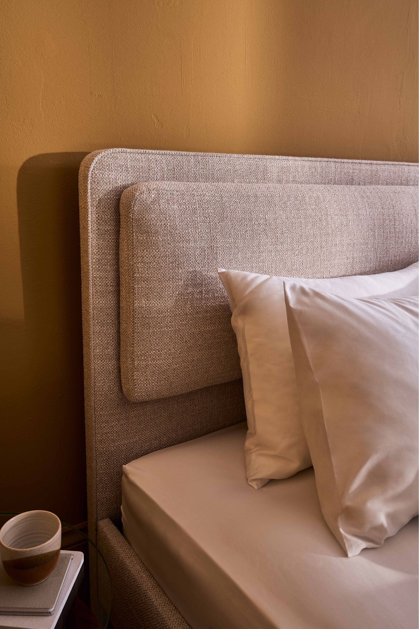 The Lennox headboard combines Vispring’s traditional craftsmanship with a contemporary aesthetic. It is elegant and soft, reflecting Vispring’s commitment to both beauty and comfort.