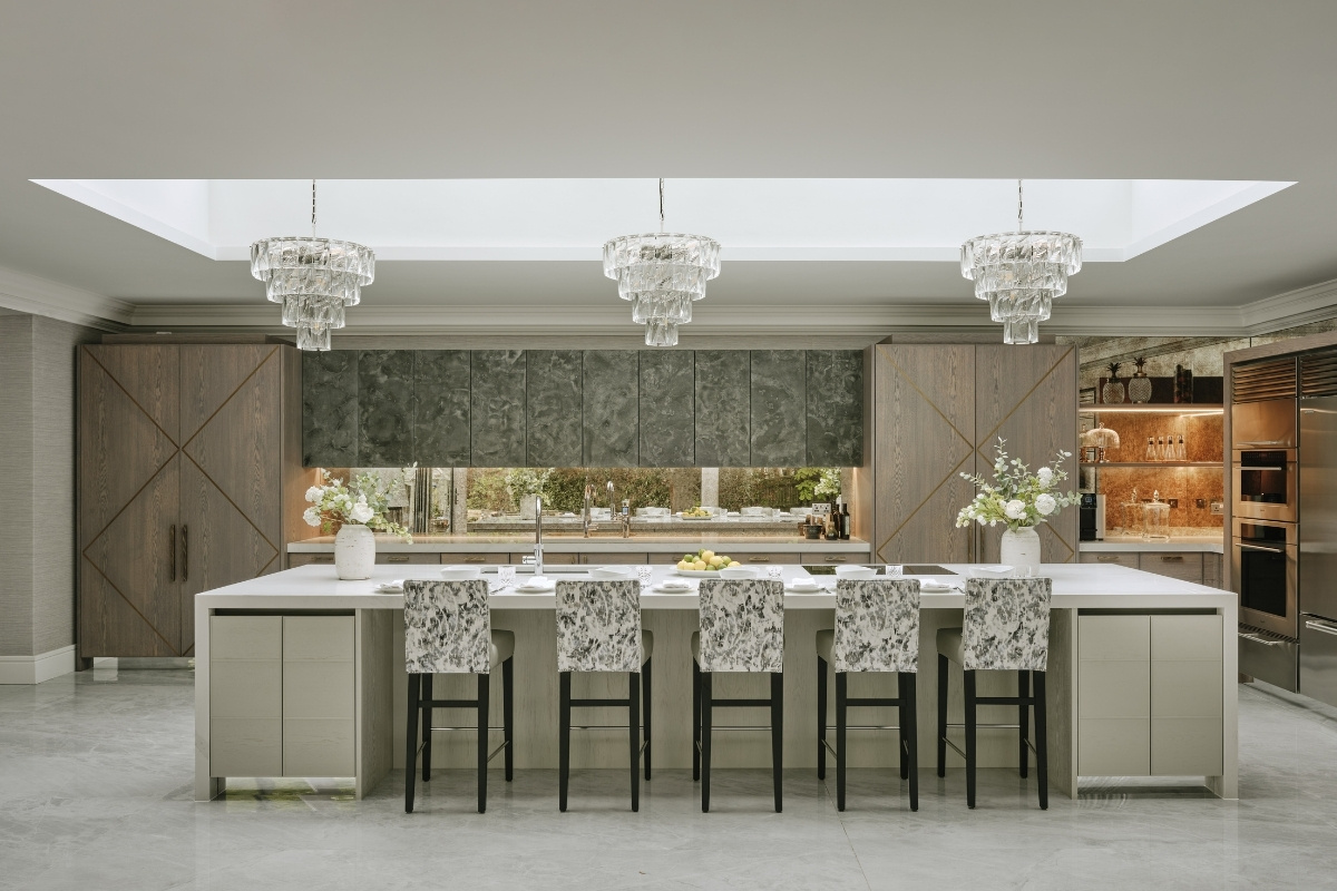 22nd August 2022 | IN KBB DESIGN | BY SBID Share Tweet Pinterest LinkedIn A spacious kitchen for eating and entertaining was an essential for the Italian family who moved into this stunning home in Ascot. Their first decision was to relocate the existing small kitchen into a generous extension. Next stop was Charlie Smallbone, founder of Ledbury Studio, to request a show-stopping kitchen design imbued with his signature mix of materials. The result is a stunning kitchen that’s perfect for busy family life. Charlie’s design centres around a generous island that’s hand-painted white and wrapped in a hard-wearing Calacatta Quartz waterfall worktop. The island is positioned below a roof lantern that floods the room with natural light throughout the day; a trio of decorative pendants provides effective task lighting at night. “The couple wanted a sleek, contemporary aesthetic for their kitchen, so we chose grey-stained natural oak for the base cupboards,” explains Charlie. “Then, to create a contrast, the island cupboards are also oak but stained white. Staining timber in this way allows the natural beauty of the grain to shine through.” A large double larder and a breakfast cupboard flank the wall run. The doors are also grey-stained oak with exquisite brass inlay in a diamond-shaped design. “And one of my favourite elements is the liquid pewter finish with shagreen-like texture we created for the wall cupboards in between,” adds Charlie. The adjacent wall is dedicated to the practicalities of the kitchen: a bank of ovens and a dedicated fridge and freezer separated by an impressive wine cooler. Huge slabs of porcelain in a Cararra marble finish were chosen for the floor as a final touch to this fabulous open-plan kitchen where practicality and glamour go hand in hand. Ledbury Studio kitchens start from £50,000. About Ledbury Studio Ledbury Studio is a new and exciting design studio, showcasing Charlie Smallbone’s latest kitchen designs. Small and personal, Ledbury Studio has been established to explore and develop the interface between kitchens to cook and work in, and kitchens to live in. The company offers something very different in the world of kitchen design, something not found elsewhere. Combining exquisite materials and artisan craftsmanship, the new kitchen collections are striking and innovative and the culmination of Charlie Smallbone’s history at the forefront of cutting edge kitchen design. Visit Profile If you’d like to feature your product news here, get in touch to find out more. If you’d like to become SBID Accredited, click here for more information.