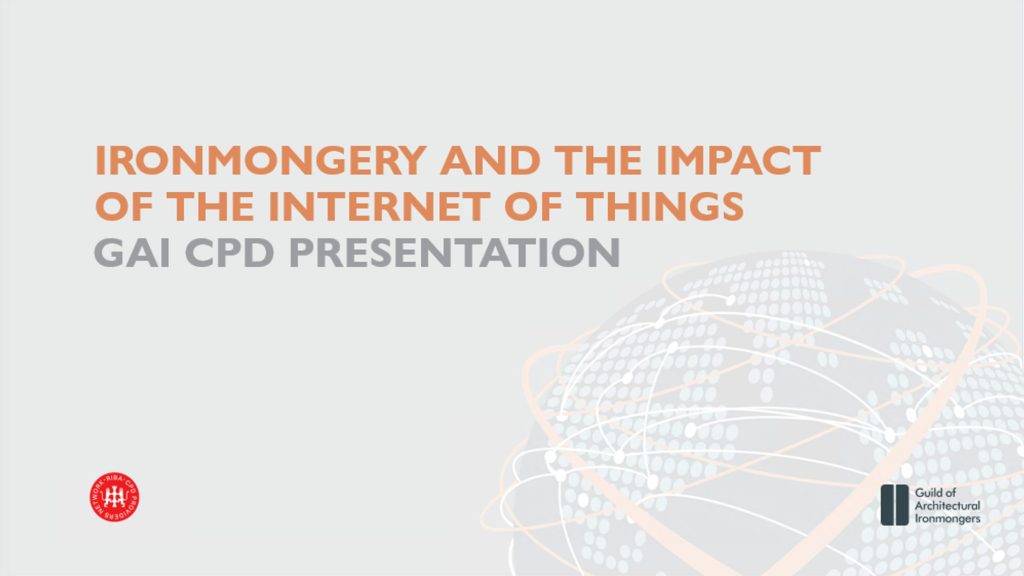 This presentation about Ironmongery and the Impact of the Internet of Things by the Guild of Architectural Ironmongers (GAI) covers how to specify ironmongery products which embrace developments in communication technology.