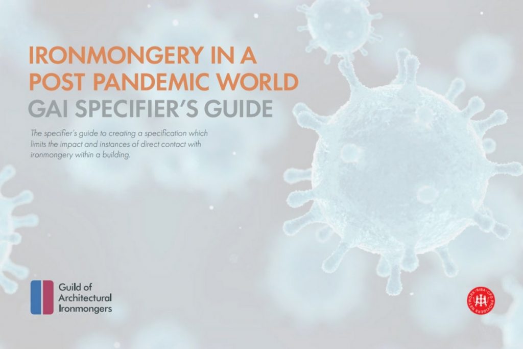 This Specifier's Guide to Ironmongery in a Post Pandemic World by the Guild of Architectural Ironmongers (GAI) covers how to create a specification which limits the impact and instances of direct contact with ironmongery within a building. It discusses the use of automation and other specialist devices, as well as anti-microbial furniture.