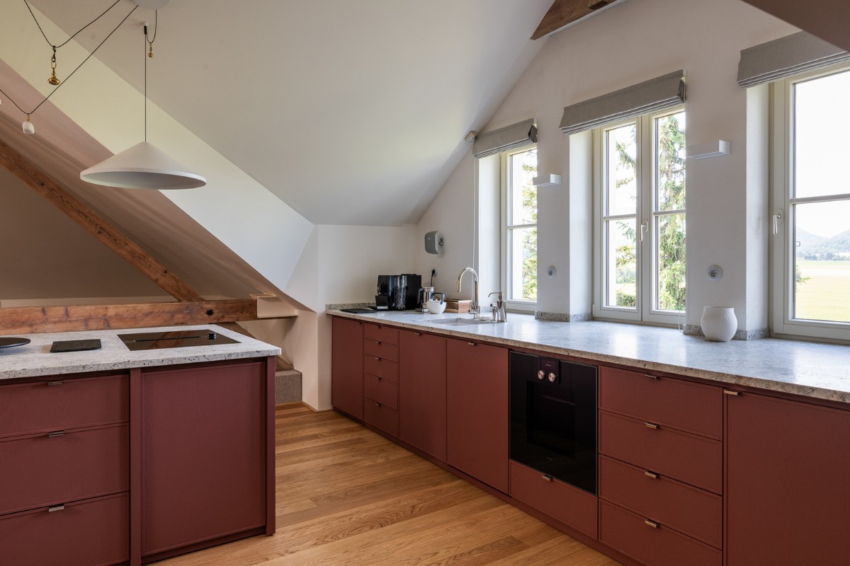 10th July 2025 | IN PRODUCT NEWS | BY SBID Share Tweet Pinterest LinkedIn Tucked away in Hainburg, in the quiet midst of the countryside, Villa Karolinenhoff beautifully blends architectural heritage with contemporary living. Surrounded by a working farm and a peaceful orchard, the villa sits at the heart of a rural estate dating back to the early 20th century. The property was bought in a neglected state and has since been carefully repurposed to create a working farm. A multipurpose property, Villa Karolinenhoff is now used for bee keeping, crop production, and sheep and poultry farming, as well as a prestigious commercial venue to host social events such as weddings, and an impressive home for the owners. Whilst preserving some of the original elements of the Villa including the stone staircase, ironwork of the railings, and interior doors, Architectural Workshop Collegium, and Katarína Lupták led a back-to-brick renovation, restoring and reworking the heritage elements of the property that became the inspiration for the Villa’s overall aesthetic. A carefully considered selection of Croft hardware was specified throughout the Villas’ various floors and engrossing rooms. 1403: Pleated Edge Pull 50mm & 100mm IBMA 1403: Pleated Edge Pull 50mm & 100mm IBMA The Library: A room promoting relaxation, the library features soft, dusty sage cabinetry complimented by the warmth of wooden internals and backlighting. Finishing off the cabinetry in a contrasting colour is the 1403 Pleated Edge Pull in IBMA, providing an elegant aesthetic and additional grip. The Kitchen: Painted in a unique, muted mauve, the kitchen displays hints of earthy undertones, giving it a modern and sophisticated look yet still complimenting the overall aesthetic of the Villa. Showcasing the 1401-50 Linear Cabinet Edge Pull in a Polished Nickel finish, this simple handle design sits subtly on the cupboard’s edges, adding an element of quiet luxury. 7220COV65B Celeste Lever on Raised Edge Covered Rose Autumn Bronze 7220COV65B Celeste Lever on Raised Edge Covered Rose Autumn Bronze Door Levers: Throughtout the property, the Celeste lever on a 65mm Raised Edge rose adorns the generously sized doors, in an Autumn Bronze finish providing contrast to the neutral colours of the doors, wall and panelling. Autumn Bronze, a rich and warmly textured living finish with an array of brown and red undertones. Over time, the finish develops a soft patina through use, gradually revealing the metal beneath, creating a stunning aged effect which beautifully complements the rich heritage and preserved character of the villa. The features of Croft throughout the Villa add quiet detail and consistency across a range of spaces. From the attic-level living area, to the four double bedrooms and private bathroom, each piece was chosen not only for its function and feel, but for how it will age gracefully over time alongside the property itself. Villa Karolinenhoff stands as a testament to considered design and shared values. It’s a home where every element has been carefully chosen, not to shout, but to support a story of timeless, understated beauty. About Croft Croft are passionate about perfection. Perfection in design, in manufacture and, most importantly, in meeting the requirements of its clients worldwide. It’s an ethos born and nurtured over 150 years of history and is reflected in a beautifully curated portfolio that includes over 1000 project ready designs. The knowledge and experience of the Croft team ensures they are the perfect partner for your project. Whether you require the latest collection or a custom solution, Croft combines design innovation and expert craftsmanship to produce beautiful products of the very highest quality that are as pleasurable to use as they are to look at. Visit Profile If you’d like to feature your news or stories on SBID.org, get in touch to find out more. If you’d like to become SBID Accredited, click here for more information.