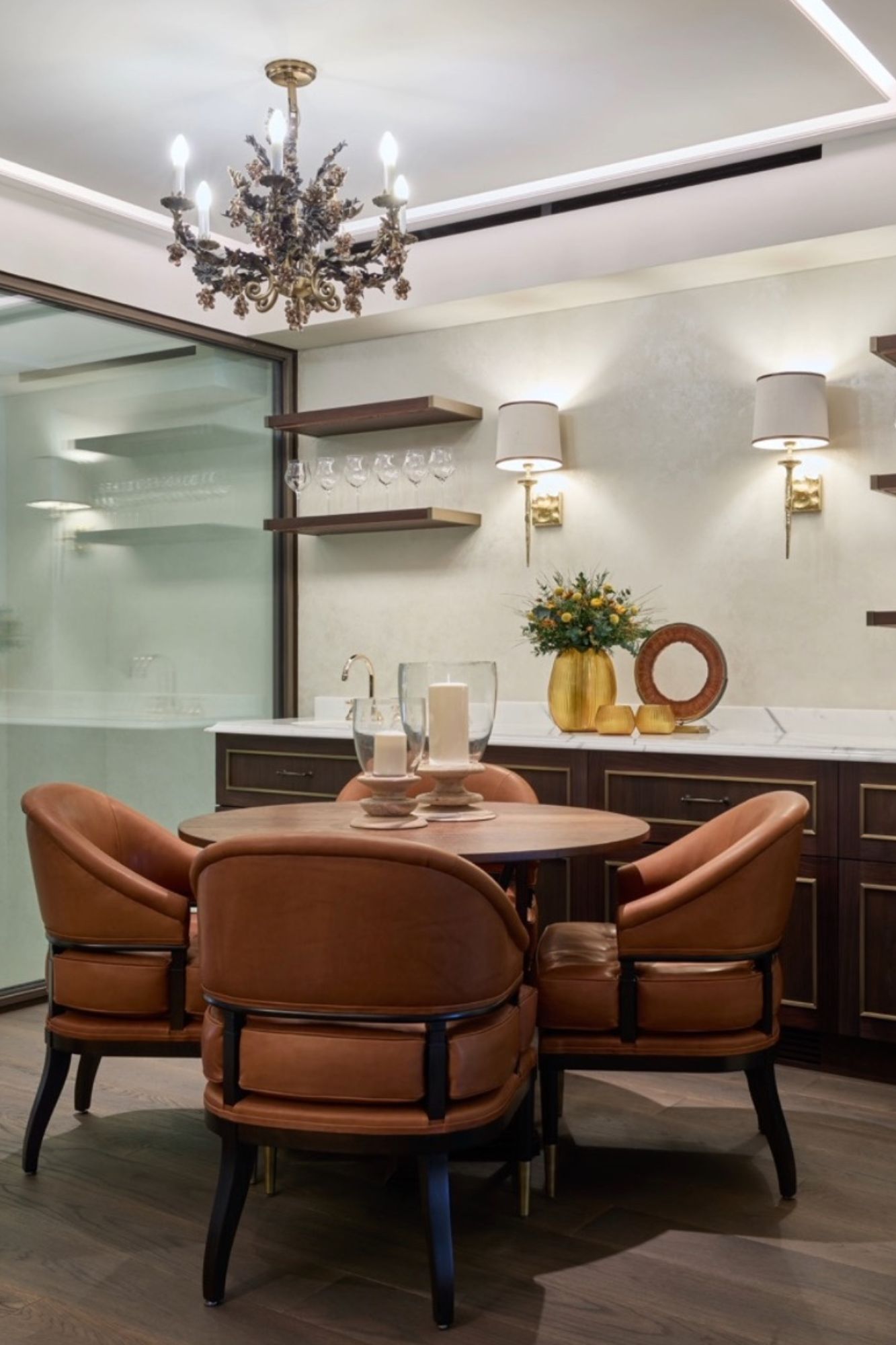 A contemporary wine room is now often integrated into the main living space and sometimes visible through glass enclosures or showcased like artwork. I love transparent glass walls framed in a classic metal like bronze or steel – it should feel like an extension rather than an afterthought and mirror the home’s broader material and design vocabulary.