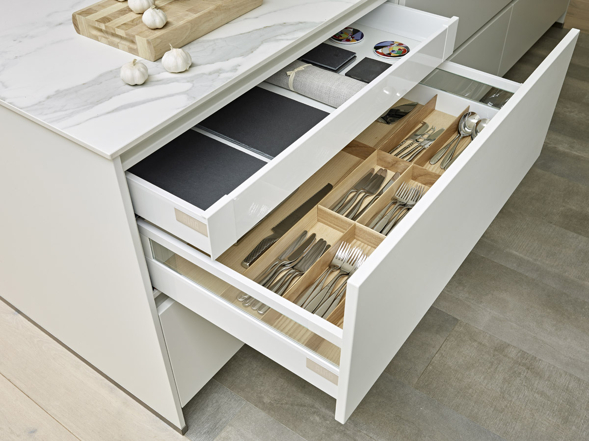 People are eating more fresh food now, so it’s good to have refrigeration with nought degree, low humidity drawers that provide filtration so things like salads, green vegetables and meat remain edible longer. You get an extra couple of days and don’t end up just throwing things away. It’s also possible for kitchen cabinets to include a vacuum drawer, so if only half of something has been eaten, you can vacuum seal what’s left inside a clear bag. The vacuum feature can also be used for marinating food or steam cooking in a water bath.