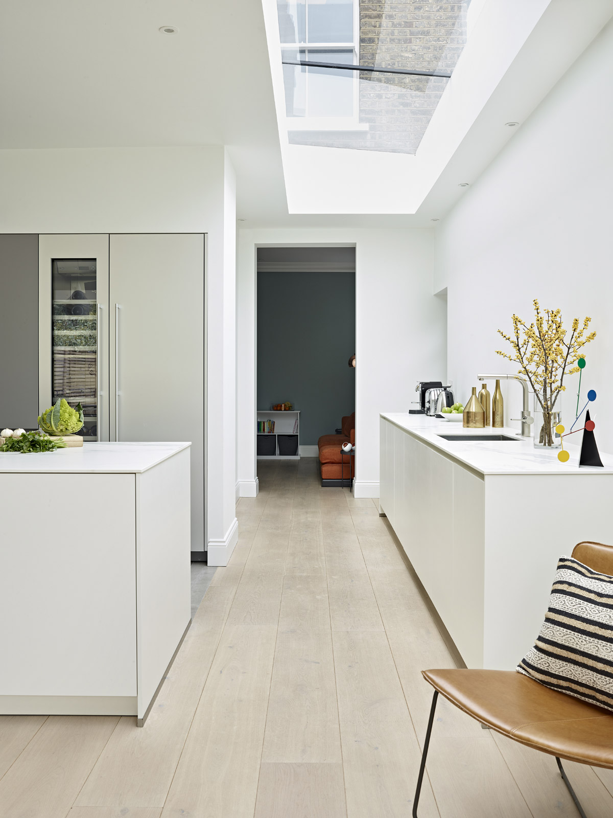 When you design a kitchen, find out how your clients are actually cooking. Generally, there are two types of people: those with really big fridges and hardly any freezer space, and those who freeze leftovers. It’s best to have a practical kitchen with spice racks and visible, accessible storage. I like to design larders with pull-up storage features so you can see what food you’ve got. A lot of people have old things hidden at the back of their cupboards, but if items face forward you see all there is and don’t let anything go out of date.
