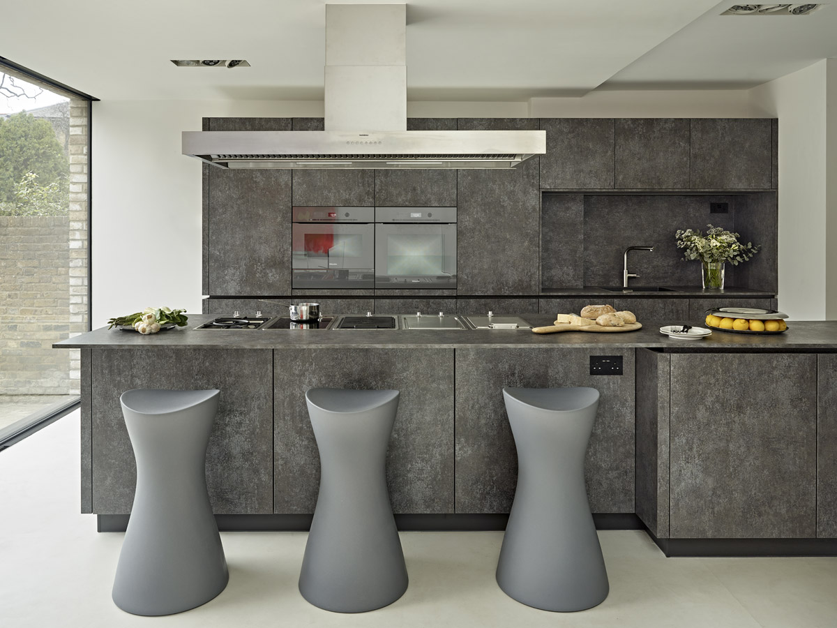 In recent years, the real innovation has been with ceramic worktops you can put hot things on and that are completely non-porous. Whether synthetic quartz or manufactured ceramic, modern counters have lots of interesting patterns and veining that appears realistic, or others look like concrete. These manufacturers copy the stone, marble, and quartz that occurs in nature, but the textures, colours and finishes all match.