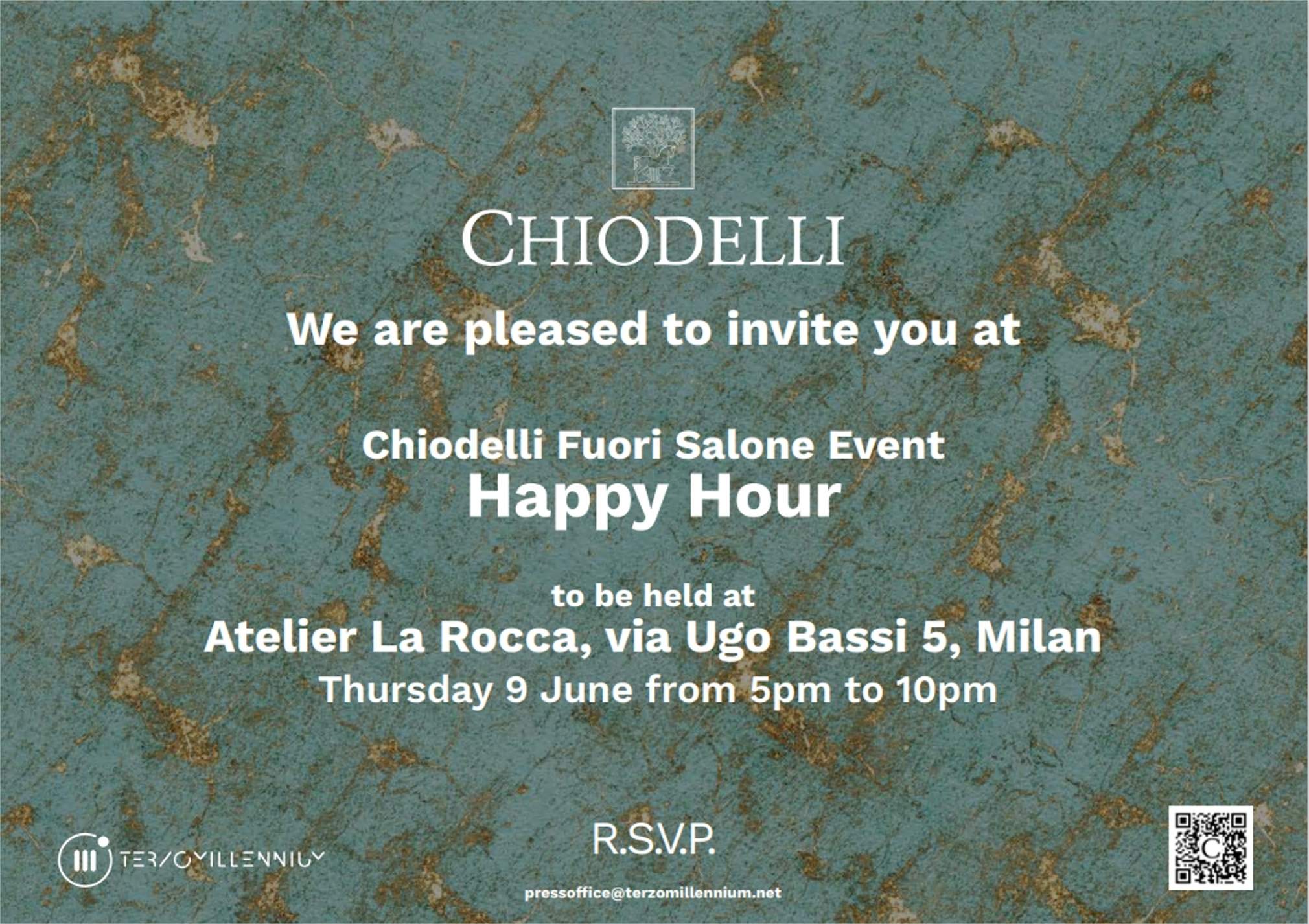 Luxury furniture and elegant interiors designer Chiodelli is pleased to invite the A&D community to the Chiodelli Fuori Salone Event Happy Hour!