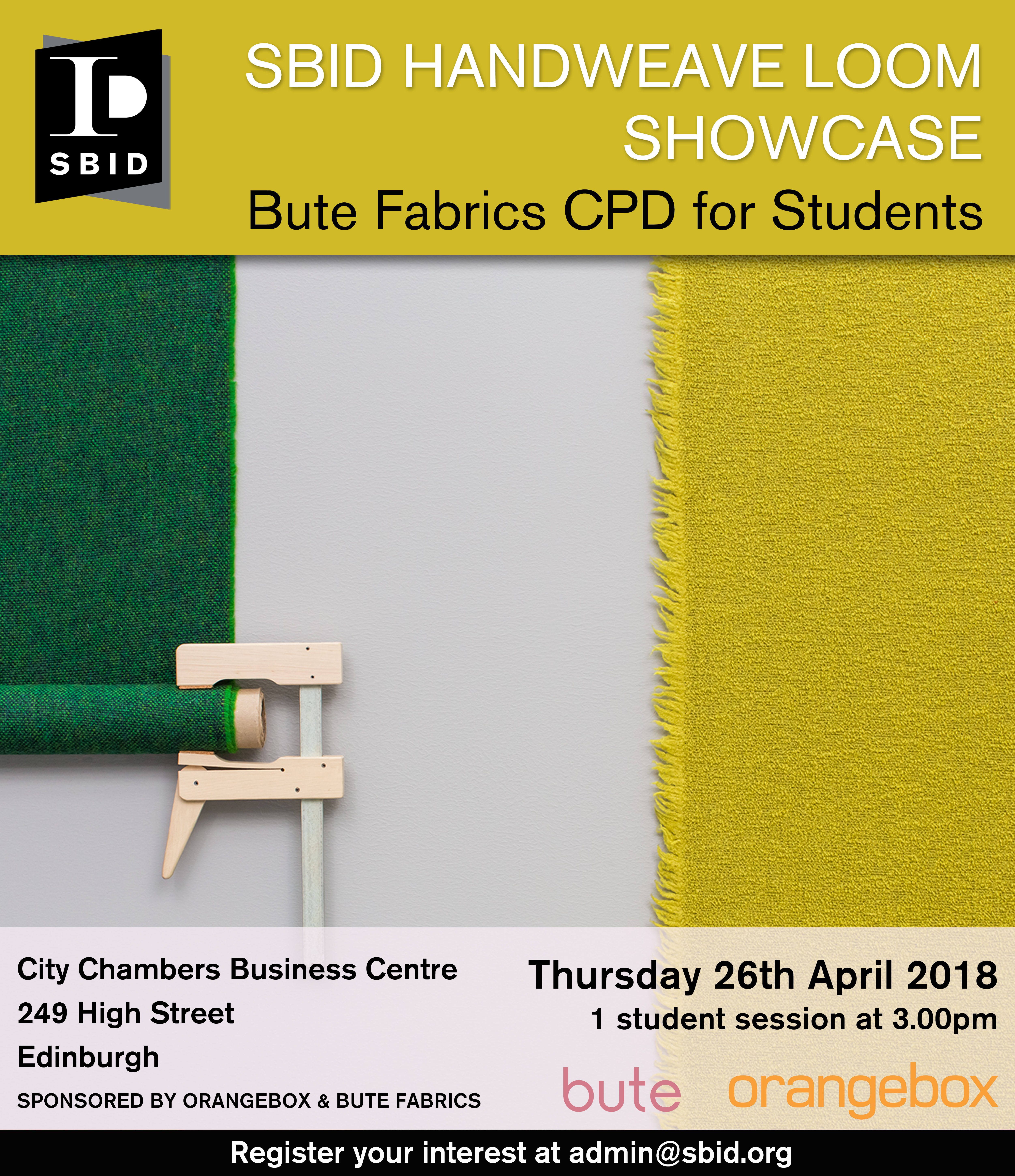 The SBID Handweave Loom Showcase is a Scotland Regional event sponsored by Bute Fabrics and Orangebox. Responsible textile manufacturer, Bute Fabrics, work tirelessly to make sure their textiles always enhance an environment as well as maintain the highest level of quality and performance, with some of the most technically advanced woollen fabrics in the industry. Showcasing their traditional hand-weaving technique with a live demonstration, the event will give guests the opportunity to attend a CPD on Bute Fabrics learning about the design process. The CPD will be led by Bute’s UK Contract Sales Director, Cat Hemingway with a live weaving session by their resident designer and colourist Rachel Evison. Guests will be invited to join in and try out the craft for themselves whilst sampling some tasty delights from the small isle of Bute.