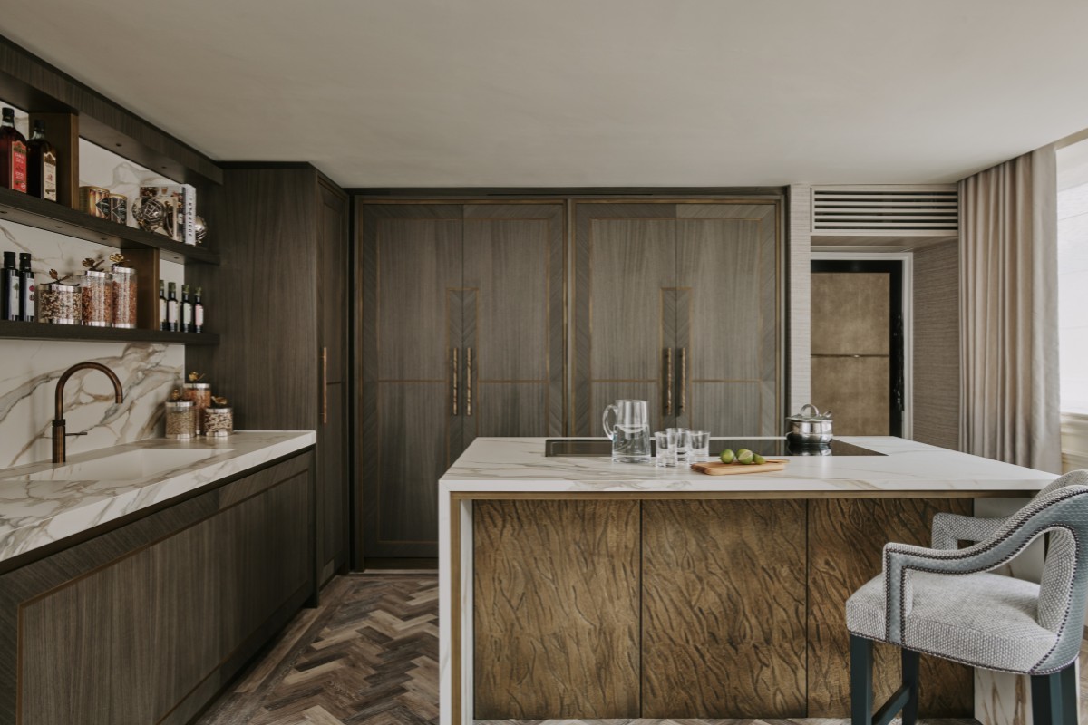2nd May 2024 | IN PRODUCT NEWS | BY SBID Share Tweet Pinterest LinkedIn Charlie Smallbone, the founder of Ledbury Studio, has created a signature style that combines contemporary elements with traditional artisanal skills. His kitchen designs are meticulously handcrafted using techniques that have been passed down for generations, while also incorporating modern methods. One stunning example of this is Ledbury Studio’s Marquetry Collection. “Marquetry is the art and craft of applying pieces of veneer to form decorative patterns, designs, or pictures, and it has adorned finely crafted furniture since the 15th century,” explains Charlie Smallbone. “We’ve given this exquisitely detailed art form a 21st-century redesign, with crosslaid veneers accented with liquid metal inlays. The result is our very special Marquetry Collection.” “Marquetry can be created with any wood and to any design – our clients might have a piece of marquetry furniture that they would like us to recreate in their kitchen. We will then interpret this to form a part of their unique kitchen design,” Charlie continues. Here, we highlight some of the features of the Wey Valley and Weybridge kitchens. The Wey Valley kitchen features herringbone marquetry, bronze accents. A second kitchen hidden behind pocket doors. Wey Valley Kitchen Charlie applied a grey colourwash to the walnut joinery, creating the unique hue of the Wey Valley kitchen. The doors showcase veneers arranged in a herringbone marquetry pattern, enhanced with liquid bronze inlays, and completed with custom-designed and hand-aged bronze bar handles. The cabinetry is framed with a brushed brass frame and illuminated with concealed LED lighting. This sleek kitchen is part of an open-plan living space, so the stunning marquetry design conceals many of the working parts of the kitchen, including a second kitchen hidden behind sliding pocket doors. Pocket doors also conceal a pantry with integrated microwave, while access to the utility and boot room is designed to look like part of the kitchen with double doors in the same finish. The L-shaped Cambria Berwyn quartz-topped central island accommodates a breakfast bar and dining area complete with banquette seating. In the relatively compact Weybridge kitchen, marquetry makes a feature of the floor-to-ceiling cupboards. Weybridge Kitchen Aged bronze inlays highlight the hand-applied directional veneers featured in the Weybridge kitchen, which adorn the full-height cupboards and sink run. These cupboard conceal ovens and pull-out storage, as well as the fridge and freezer. Meanwhile, bespoke handles also in aged bronze add the finishing touch. The relatively dark cabinetry is complemented by a hardwearing porcelain, designed to mimic natural stone and used for worktops and wall cladding. It also wraps round the solid brass panel that features on the outside of the island, which has been distressed by hand, then aged and patinated to create this show-stopping effect. A distressed solid brass panel creates a stunning focal point on the island in the Weybridge kitchen. Prices for a Ledbury Studio kitchen start from £70,000. About Ledbury Studio Charlie Smallbone needs little introduction. The founder of iconic brand Smallbone of Devizes, he has been pushing the boundaries of kitchen design for over 40 years. Charlie’s latest venture, Ledbury Studio, was born of his desire to harness the beauty of original materials whilst creating practical kitchens that exude style and elegance. Visit Profile If you’d like to feature your news or stories on SBID.org, get in touch to find out more. If you’d like to become SBID Accredited, click here for more information.
