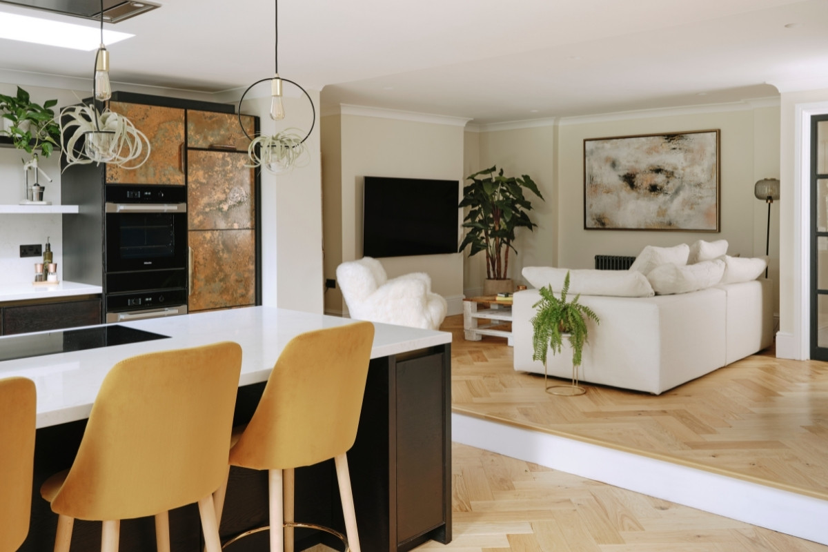 29th July 2022 | IN KBB DESIGN | BY SBID Share Tweet Pinterest LinkedIn Some spaces lend themselves particularly well to a generous injection of moody hues and this kitchen in Hackney, London, is one of them. Wall-to-wall bi-fold doors drench the space in natural light, allowing designer Charlie Smallbone of Ledbury Studio to dabble in a decadent mix of dark materials and bring a sense of drama to the bright space. Typically for Ledbury Studio, metal punctuates the design, most notably on the front of the tall fridge-freezer, which is clad in aged verdigris copper panels. Subtler touches range from a strip of aged brass that runs along the top of the stained oak cupboard doors on the base run to a brass undermounted sink and aged brass handles on the island cupboards. Bringing the metallic elements together is a Stone Italiana Ambra worktop that combines the beauty of natural stone with the performance of hard-wearing quartz. Continuity is essential when a kitchen is part of an open-plan space, and to strengthen this kitchen’s connection with the adjacent dining area, Charlie’s distinctive Choppy Water design is hand-carved onto the end panel of the island and on the cupboard in the dining area. As a side note, the cupboard comes complete with a built-in wine cooler, wine rack and a fluted-glass cupboard for glassware, making it a super-handy addition. Storage is a crucial aspect of all Ledbury Studio kitchens. In this one, a large larder cupboard fitted with doors, racks, shelves and drawers offers a wealth of space for everyday cooking essentials. Open shelves above the sink serve a more decorative purpose, letting the homeowner showcase some of her favourite accessories to personalise the space. Ledbury Studio kitchens start from £50,000. About Ledbury Studio Ledbury Studio is a new and exciting design studio, showcasing Charlie Smallbone’s latest kitchen designs. Small and personal, Ledbury Studio has been established to explore and develop the interface between kitchens to cook and work in, and kitchens to live in. The company offers something very different in the world of kitchen design, something not found elsewhere. Combining exquisite materials and artisan craftsmanship, the new kitchen collections are striking and innovative and the culmination of Charlie Smallbone’s history at the forefront of cutting edge kitchen design. Visit profile If you’d like to feature your product news here, get in touch to find out more. If you’d like to become SBID Accredited, click here for more information.