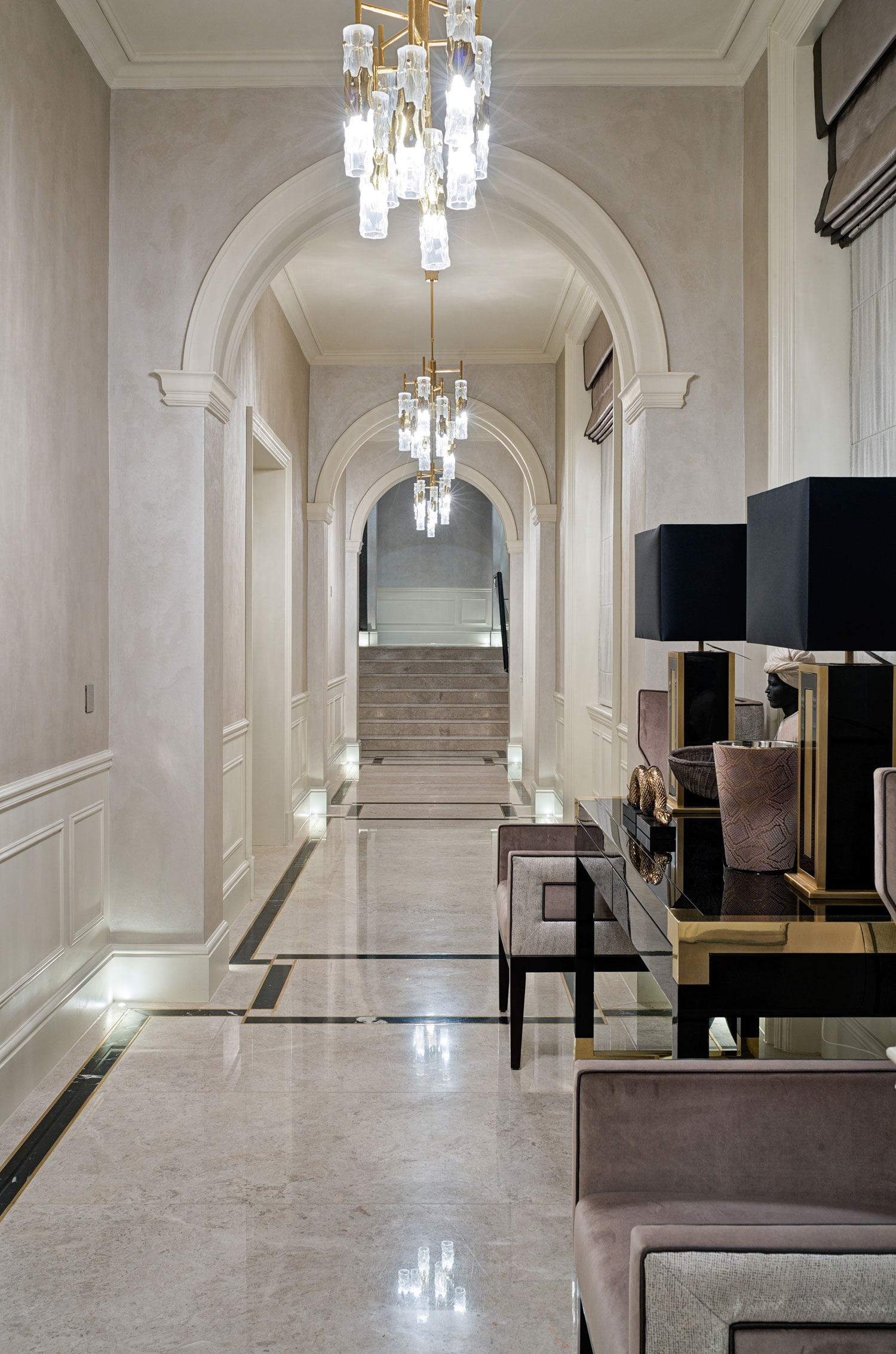 29th August 2018 | IN PROJECT OF THE WEEK | BY SBID Share Tweet Pinterest LinkedIn This week’s instalment of the #SBIDinspire interior design series features a luxurious, 1920’s style apartment in South Kensington. Creating a sophisticated interior for a young family within their historical Grade II listed, six bedroom home, Hill House Interiors lovingly restored key period features including classical cornicing, panelling and moulding, working on both the interior design and architecture to create the art deco inspired scheme. Located just a stone’s throw from the Royal Albert Hall, the palatial home enters onto an extensive hallway, with custom polished stone flooring inlayed with nero marquina black marble and bronze metal, above which sits a made to measure 2.7 metre bronze china leaf chandelier, suspended via a mirrored ceiling plate. With a focus on entertaining, a bespoke bar with detailed inlays creates a show stopping backdrop to the formal dining room, showcasing the grand proportions of the home. Company: Hill House Interiors Project: Albert Court Apartment Project Location: London, UK What was the client’s brief? Within a historical Grade II listed building, the large duplex apartment is located just moments away from the Royal Albert Hall. Albert Court is a beautiful red brick, portered mansion block, well positioned for Hyde Park and the amenities in South Kensington, Knightsbridge and Kensington. The extensive 5000 sq ft project was commissioned by a young couple with two children, who had been living in the home for a few years previously, and who were looking to carefully restore yet update their six bedroom home. Brought on to complete both the interior architecture and design, Hill House Interiors were briefed to ensure a strong emphasis was placed on entertaining, creating a suitable space for both the couple and their children, with the drawing and dining rooms a key focus within the home. What inspired the design of the project? Unhappy with the former layout of the apartment, the clients worked closely with Hill House Interiors’ highly skilled and creative architects to create a more harmonious flow, completely redesigning the internal layout by moving the staircase to the upper floor. The design scheme was based on the key period features of the historical Grade II listed building. What was the toughest hurdle your team overcame during the project? Retaining key features within the home was a challenge the Hill House designers and architects rose to, sympathetically restoring the classical cornicing, panelling and mouldings and intricate details throughout, to the strict guidelines associated with its listed status. To restore the original panelling and ceiling detail of the home, many layers of paint had to be delicately removed. The beauty of the detailing was all but lost beneath the many redecorations of the historical home, and the Hill House design team worked meticulously to ensure no damage to the original fittings occurred. What was your team’s highlight of the project? Working within such a historical building, Hill House Interiors effectively chose to go down a complimentary design route, focusing on a classic and elegant art deco inspired scheme. The attention to detail is consistent, from the custom polished stone flooring inlayed with nero marquina black marble, to the bespoke 2.7 metre almond gold bone china dancing leaf chandelier, and perfectly reflects both the home’s history and the family currently residing within. Why did you enter the SBID International Design Awards? Highly respected within the interior design industry, the Awards are continually growing in popularity. It’s inspiring to see such a wide variety of skills and styles represented, showing the diversity within the interior design industry. The projects and companies awarded the prestigious accolades are truly the best in the business, and Hill House Interiors continue to be delighted to take part in these Awards. Questions answered by Helen Bygraves, Co-Founder of Hill House. If you missed last week’s Project of the Week featuring the transformation of Grade II listed property into a contemporary Bachelor Pad, click here to see more. We hope you feel inspired! Let us know what inspired you #SBIDinspire Hill House Interiors | SBID International Design Awards 2018