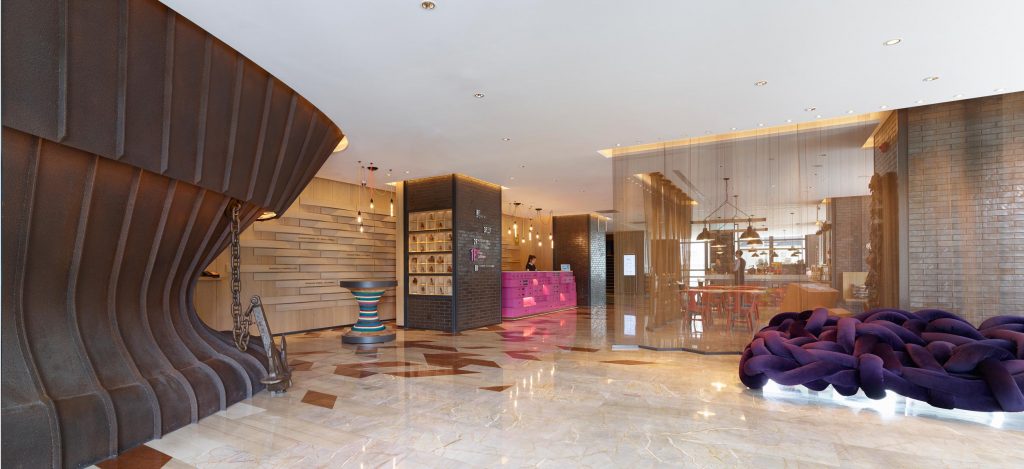 25th October 2018 | IN HOTEL DESIGN | BY SBID Share Tweet Pinterest LinkedIn This week’s instalment of the #SBIDinspire interior design series features an innovative hotel design which strives to redefine the concept of luxury, five-star hotel experiences by connecting with the neighbourhood which surrounds it. In a world increasingly congested with fussy design, this project demonstrates a new type of luxury. A refreshing perspective, celebrating the Kaohsiung harbour and all of the creative energy of the commercial surroundings delivered with wit and charm. The Hotel Indigo, Kaohsiung Central Park is located in the heart of Kaohsiung, Taiwan. The neighbourhood and its dynamic port served as the inspiration for the design. Located in a vibrant suburb within Kaohsiung near the bustling commercial harbour, the hotel experience was conceptualised as the journey of goods from the harbour to the shelves of Kaohsiung’s boutiques and emporiums. Company: Hirsch Bedner Associates Hong Kong Project: Hotel Indigo Kaohsiung Central Park Project Location: Kaohsiung, Taiwan What was the client’s brief? The client owned an old shopping mall in an area near the Kaoshiung port and wanted to convert it into a hotel, but wanted the hotel to somehow relate to the previous history of the building and to the neighbourhood that was deeply connected to the nearby harbour and undergoing a process of urban renovation. The brief was therefore to redefine the concept of a five-star hotel experience, shifting the notion of luxury, as it’s commonly envisioned. The objective was to connect with the local area, allowing the hotel to become an energetic part of the urban fabric and distinguishing itself from other large five star hotels. What inspired the design of the project? As a consequence of the context in which this project came to life; the commercial aspect of the building and the evolution of the neighbourhood from an industrial harbour to a gateway to the world, became the main inspiration. The Kaohsiung neighbourhood and its dynamic port was the central inspiration for designing key areas of the hotel. Located in a vibrant suburb within Kaohsiung near the bustling commercial harbour, the hotel experience was conceptualised as the journey of goods from the harbour to the shelves of Kaohsiung’s boutiques and emporiums. Inspired by the humble local emporiums where products such as soft drinks, canned and picked food are part of everyday life for Taiwanese, beautifully designed feature walls depict the tops and bottoms of cola bottles with fun messages. Digitally printed wall coverings featuring opened jars and tins of food adds a splash of colour, character and provincial flavour. What was the toughest hurdle your team overcame during the project? Due to the trade barriers between Taiwan and Mainland China most of the finishes had to be locally sourced or engineered from scratch. The process was difficult but extremely gratifying. Thanks to this project, new products and finishes are now available in Taiwan! What was your team’s highlight of the project? The reaction of guests and visitors; some thought it was brilliant and told us they felt the connection to the neighbourhood, others found the project was at the limit of their comfort zone and didn’t like it entirely. That to us is a good sign, it means we succeeded at giving to the hotel a distinct personality and when it comes to personality, we simply just don’t all feel the same! Why did you enter the SBID International Design Awards? The project was very appreciated in Taiwan but to some it felt like it was pushing the boundaries of their comfort zone. So we were curious to see how it would have been received by an international audience and the SBID Awards was the perfect platform to do this! Questions answered by Federico Masin, Partner at Hirsch Bedner Associates Hong Kong If you missed last week’s Project of the Week featuring a hotel design which delicately balances timelessness and tradition with industrial modernity, click here to see more. We hope you feel inspired! Let us know what inspired you #SBIDinspire HBA Hong Kong | SBID International Design Awards 2018