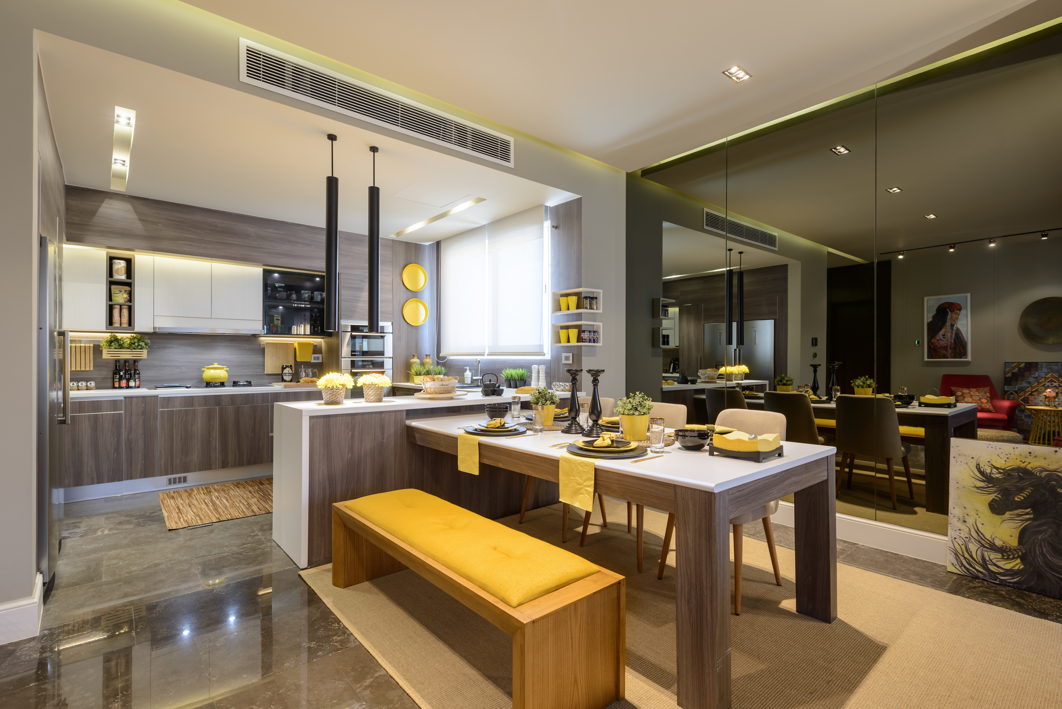 9th January 2018 | IN PROJECT OF THE WEEK | BY SBID Share Tweet Pinterest LinkedIn This week’s instalment of the #SBIDinspire series features the vibrant and enlivening luxury apartment in New Cairo which successfully integrates home automation technology with a sophisticated, contemporary design. We spoke to Eng. Mohamed El Abagy, The CEO & Co-founder of DAR Designs about this truly refreshing residential apartment design. This luxury apartment in Egypt successfully integrates home automation technology with a sophisticated, modern design. Seeking to create harmony between the traditional and contemporary, the designer has given the apartment a high-end, luxury look while maintaining a connection with Arab culture through the display of local crafts throughout the interior. This residence also caters to the client’s active social lifestyle through an open plan space which includes the kitchen, guest living room, and dining room, all designed as one zone. To give the client privacy, the private area was also designed with its own exclusive family living room located between two bedrooms. The apartment also takes a huge step forward in terms of sustainability and energy efficiency, with its advanced home automation system designed to automatically shut off lighting and air conditioning when the occupants leave the room. Company: DAR Designs Project: Parkview Residence Project Location: Cairo, Egypt What was the clients brief? The client for this particular project is a young, open minded businessman who was obsessed with Arabian horses and enamoured with the yellow colour. What inspired the design of the Project? The clients passion for horses inspired us to play on this particular theme throughout our design process. The main design concept was to create a modern design with an Arabian touch to reflect his interests and personality beautifully. What was the toughest hurdle your team overcame during the project? The main challenge during this project was achieving optimum space management for all required spaces in this small area whilst preserving the need for privacy for residents during the design process. Creating the perfect mix of contemporary style blended with Arabian culture was also challenge as it was somewhat difficult to create without distortion. What was your team’s highlight of the project? The team’s goal was to integrate home automation technology with a sophisticated, modern design. Seeking to create harmony between the traditional and contemporary, with a high-end, luxury look while maintaining a connection with Arab culture through the accessories whilst promoting sustainability and energy efficiency. Why did you enter the SBID International Design Awards? The SBID International Design Awards is a very reputable & honourable organisation and being celebrated as winners in our category is very beneficial and adding credibility and value to our leading Middle Eastern firm. Questions answered by Eng. Mohamed El Abagy, CEO & Co-founder of DAR Designs To ensure you are kept up to date with the latest inspiration sign up for our newsletter and follow us on social media. If you missed last week’s Project of the Week with the truly incredible renovations of a Category A Listed building in the heart of Glasgow’s Park District by Bernard Interiors. click here to see more Entries were received, finalists deliberated and the winners of the SBID International Design Awards 2017 have been announced! Click here to see the full list. We hope you feel inspired! Let us know what inspired you #SBIDinspire DAR Designs | SBID International Design Awards 2018