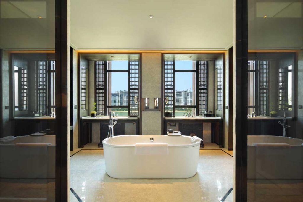 5th December 2018 | IN HOTEL DESIGN | BY SBID Share Tweet Pinterest LinkedIn This week’s instalment of the #SBIDinspire interior design series features an urban resort that offers sweeping lake views, located on the shore of Lake Chao; one of the largest lakes in China. The hotel is a hillside building in the Neo-Huizhou-style with 206 guestrooms. Each room has a balcony from which guests may enjoy 180-degree views of the beautiful lake. The interior design features white walls, black tiles and grey bricks, all of which are typical of Hui-style architecture. Respect is also paid to Huizhou’s aesthetic style of order and symmetry. A core design feature of the guestrooms embraces the ideas of the ‘Four treasuries of the Chinese Study’ including study space with writing brush, ink stick, ink slab and paper. This has great local and cultural significance in expressing the ‘Impressions of Huizhou’ design theme. Company: Wanda Hotel Design Institute Project:Wanda Vista Hefei Project Location: Hefei, China What was the client’s brief? Our client is our parent company, Wanda Hotels & Resorts. Founded in 2007, Wanda Hotels & Resorts has been achieved through integrated business resources including hotel design, hotel construction and hotel management. As the capital of Anhui province, Hefei is the economic and cultural centre with a profound history. Our purpose is to build the most luxurious and high-end urban resort in Hefei, which can meet both business and vacation demand. That’s why we choose Wanda Vista, the highest brand among Hefei hotels group. As the hotel is located near city, it owns the convenient traffic without too much noise and disturbance from city centre. We hope Wanda Vista has complete supporting facilities, breath-taking landscape scenery as well as high-quality service. In addition, we wish the cultural elements of Anhui is embodied in the interior design of the hotel, to give our guests deeper understanding of Anhui culture during their stay here. Also, as Vista brand is not commonly seen the east area of China, we hope Vista Hefei has stronger characteristics. What inspired the design of the project? Anhui is situated next to Huizhou, which is renowned for Hui-style architecture – a school of Chinese architecture. For another, Anhui is a combination of exquisite scenery and distinctive cultural features. In short, the above two factors – architecture and cultural characteristics – are our inspirations for this project. Other inspirational resources derive from the white wall, black tiles and grey bricks of Hui-style architecture, the order and symmetrical aesthetics, local decorative materials and the art of Huizhou carving (e.g. Brick carving, wood carving and stone carving). What was the toughest hurdle your team overcame during the project? Well, the greatest difficulty lies in how to express classic aesthetics using modern techniques. If we adopt traditional techniques to manifest these Hui-style characteristics, we will be confronted with great difficulty when it comes to spatial considerations; especially with a large space like the hotel lobby. Interior spaces were not as expansive as this in the past, so all the architectural components such as brick carving, roof overhang and folding screens were produced according to their actual dimension. It would therefore be impossible for us to enlarge the past material and craft it to today’s space, that’s why we needed to think about the kinds of modern materials and techniques which could be used for these creations. For instance, we designed four screens of 12 metres high to increase the levels of layer. When investigating the folk embroidery craft, our designers were inspired to replace the base fabric of embroidery with metal, and embroider Huizhou scenery on the metal net. In this way, we were able to realise the same effect with the same impact, which wouldn’t be achieved by using traditional metal or other metal materials. What was your team’s highlight of the project? Well, I think the highlight for me is the hotel lobby. The spatial vastness of the area integrates the exquisite features of Hui-style architecture and strong sense of decoration manifested through modern techniques. The lobby covers an area of 700 square meters, preserving the top structure of the original building with the highest height of near 20 metres. For the interior design, we embodied the traditional Hui-style wood carving technique into the decoration of wooden circular columns, beam and wall surfaces, focusing on the design theme; ‘Huizhou Impression’. For colour use, the combination of grey brick, black tile and white wall from Hui-style architecture which represent the nature is put into use in the whole colour adoption. The lintel decorated with hanging flowers is made from bronze, and it implements with the wharf wall harmoniously. Also, speaking of Huizhou culture, what first comes into our mind must be the Chinese ‘Four Treasures of the Study’, which includes writing brush, ink stick, ink slab and paper, which are expressed by different techniques in the hotel space. For example, we designed a 20-metre high Chandelier in the shape of a writing brush, to give the appearance of it pouring down from the roof; the pool carved from black stone is the integration of ink and ink stone; the ten-metre high scroll painting ‘Huangshan Scenery’ looks like wash painting on Chinese Xuan paper. Through the design of a ten-metre high ground glass window, the hotel lobby connects with a borderless lake view perfectly, inviting the glorious views and lake scenery into the hotel. Why did you enter the SBID International Design Awards? SBID is a renowned international award. Participating in the award is a test on our design ability. We will be more thankful and honoured if we were to win an award because it will be an honour both for the design team and for a single designer. On the other hand, if we unfortuna