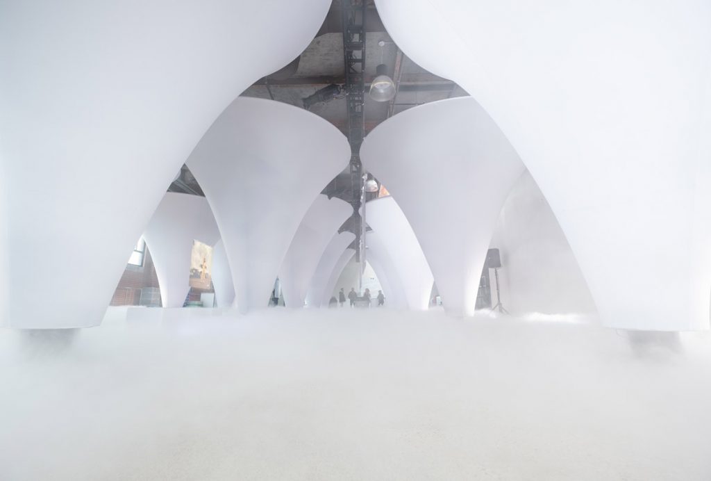 23rd October 2019 | IN PROJECT OF THE WEEK | BY SBID Share Tweet Pinterest LinkedIn This week’s instalment of the #SBIDinspire interior design series features the first photography exhibit for famed Toronto photographer, Elie Kimbembe who became personal photographer to The Weeknd, Travis Scott, Banks and Selena Gomez. Stacklab collaborated closely with Elie on the design of the ‘Solo’ exhibition which combined themes such as discovery and immersion, creating a sense of intimacy and interpersonal connection. The main gallery features a series of vaulted chambers, made up of a regular arrangement of diffusely lit fabric wells. Sector: Public Space Design Company: STACKLAB Project: #Solo What was the client’s brief? We collaborated closely with acclaimed photographer, Elie Kimbembe on the design of his first solo exhibition. A social media icon, Elie was interested in creating a new gallery ‘type’ that offered a contemplative and interactive art viewing experience for the digital art consumer (in contrast to the ephemeral and solitary way his art is typically consumed). #Solo combined themes like discovery and immersion with intimacy and interpersonal connection. What inspired the interior design of the project? The main gallery featured a series of eight vaulted chambers, made up of a regular arrangement of fifteen diffusely lit elastane wells. Harnessing Einstein’s theories on the curvature of space, each ‘well’ appeared to have been stretched from the top-down, emitting a deluge of ultrasonic mist across the luminous floor plane. Contrasted against the gravity of the conic piers, Sixteen of Elie’s photographs hung, back-to-back, in the quiet, vaporous space between them. The bold, tectonic wells, each measuring 13 feet in diameter, framed and illuminated Elie’s photographs while obstructing others outside of the viewer’s direct sight line. This served a dual purpose of compelling the viewer to circulate the exhibit and created moments of intimacy between themselves, the art, and other observers. In addition to carrying diffuse light throughout the exhibition space, the ultrasonic mist served two key, performative roles. Firstly, the mist elevated the visible ground plane to further frame the photographs within the vaults. Mostly, however, it precipitated a slow and calming pace to the circulation of viewers within the space. We designed this temporal aspect of the exhibition to answer one of the artist’s primary objectives – “to give people a chance to really interact with the work, and each other”. What was the toughest hurdle your team overcame during the project? The toughest hurdle was time. The quality of the effect we created was significantly improved on thorough iterative prototyping over a very short period. #Solo was fabricated in less than 30 days. On-site installation took a group of six two days, including calibrating the mist medium to the space. Take down took 12 hours, as will re-installation for subsequent uses. What was your team’s highlight of the project? Achieving specific cost targets, addressing the nuances of the artist’s brief, and (specifically with respect to mist) referencing our project sponsor, Up Cannabis’s signature medium- vapor – as a gateway to creativity were our key highlights of the project. Questions answered by Jeffrey Forrest, Founder of STACKLAB If you missed last week’s Project of the Week featuring a kitchen design inspired by clean and minimal styles from Scandinavia, click here to see more. We hope you feel inspired by this week’s Public Space design! Let us know what inspired you #SBIDinspire