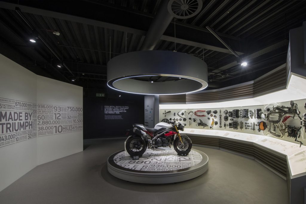 Triumph Motorcycles approached us with a view to creating a factory tour and visitor experience that would be a world-class, built for purpose ‘home’ for the brand and a destination to welcome the ‘pilgrimage’ of motorcycle enthusiasts and the general public from all over the UK and around world.