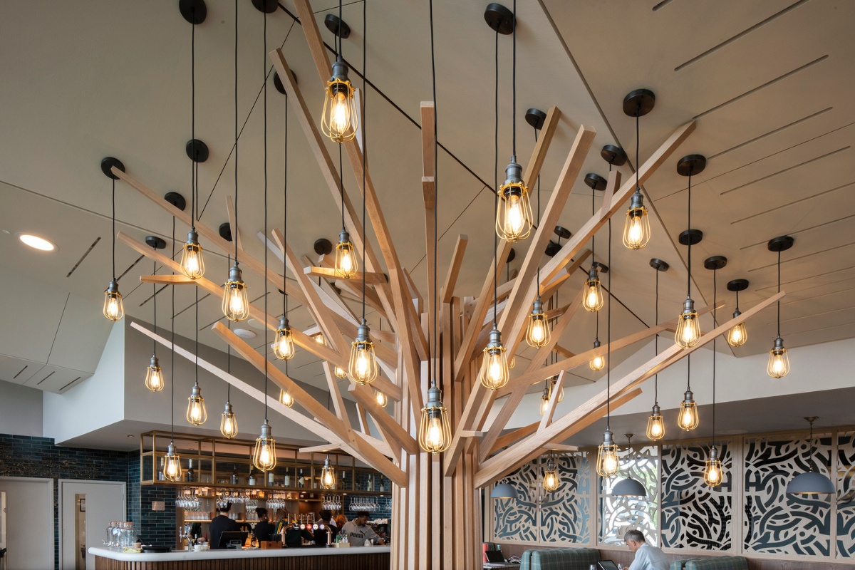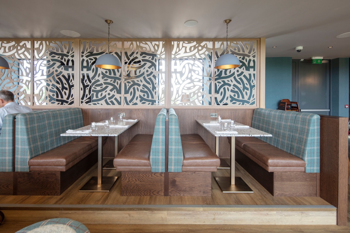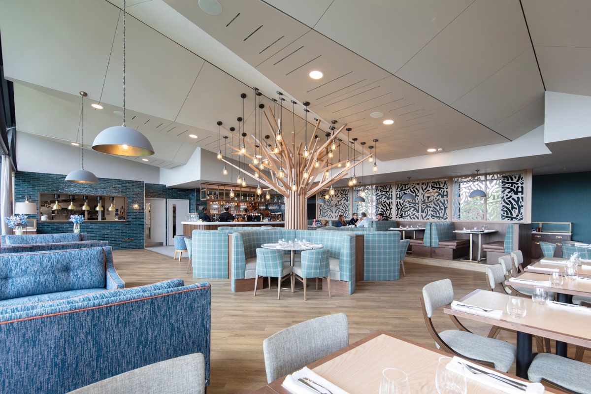 14th September 2023 | IN HOSPITALITY DESIGN | BY SBID Share Tweet Pinterest LinkedIn Rachel McLane Ltd has given a stunning new contemporary look and environmental focus to the interior design of the restaurant at The Hertsmere, Elstree, called Script: Restaurant and Bar. The full-scale refurbishment forms part of The Hertsmere’s ambitious plans to progressively become the home of family golf in Hertfordshire and North-West London. Rachel McLane Ltd - The Hertsmere A challenging, picturesque 18-hole golf course in the middle of the Hertfordshire countryside, The Hertsmere has recently installed a new high-tech, state-of-the-art 26-bay golf driving range, and opened a golf academy which is ground-breaking in its approach focused on customer outcomes. Built about ten years ago, the clubhouse provides facilities to serve food and drink in a restaurant setting which can also be used by golfers and for public gatherings. Award-winning interior design consultancy Rachel McLane Ltd started work on the interior design concepts behind the new-look restaurant about 18 months ago. Rachel McLane Ltd - The Hertsmere “One of the main things that stood out to us about The Hertsmere was the setting of the course and clubhouse, which are amazing and exceptionally beautiful; the course and the driving range have real character and are of a high quality, which we wanted to capture and reflect in our designs. The clubhouse is quite literally that, a place for everyone to meet and socialise and talk over their game with friends, families and children. We wanted to add a bit of a ‘wow’ factor to help match the very high standards of the rest of The Hertsmere.” Rachel McLane Ltd - The Hertsmere Stuart Ritchie, the business’s director, said: “The Hertsmere is a leisure business which owns a golf course, an award winning driving range and now an amazing restaurant which has been separately branded Script: Restaurant and Bar. We wanted to create our own narrative with our ‘fresh approach to golf’ and to give everyone the opportunity to get involved with golf and enjoy our facilities, hence our standalone restaurant in the centre of the facility.” Rachel McLane Ltd - The Hertsmere “Our restaurant is key to this and we wanted it to be welcoming, accessible and appealing as well as reflecting our high standards and the importance we attach to our surroundings. Rachel McLane Ltd has created a stunning space where I hope people will enjoy spending time, be that for a bite to eat after a game of golf, or as a get together of family and friends for a meal. We felt that ‘Script: Restaurant and Bar’ was the perfect name for the restaurant as it combines the idea of us setting our daily changing menu of locally sourced ingredients – which, just like a fantastic script, provides the foundations for an outstanding experience. We are looking forward to welcoming customers to enjoy the new stylish design, stunning views and great menu.” Rachel McLane Ltd - The Hertsmere North Yorkshire-based Rachel and her team of interior designers have created a concept that draws on the importance of landscape, countryside and environmental sustainability, without detracting from the view of the course. “The Hertsmere has a vision to help make golf more sustainable, minimising waste, the use of water, chemicals and fertilisers, and to develop an environment that has a positive impact on local wildlife and supports the wellbeing of its community.” Rachel McLane Ltd - The Hertsmere “The course has a network of public footpaths and trails across its 160 acres. We felt there needed to be a real sense of how rural and parklike The Hertsmere is and to reference environmental and sustainability aspects in the designs – not just in the design look, but also in the materials we used. Whilst the new look of the interior is one that has been very carefully considered with contemporary lighting and seating, we didn’t want it to overpower the positive details of the building, including the views out over the golf course.” Rachel McLane Ltd - The Hertsmere A dominating sloped timber ceiling has now been painted over and a flattened bulkhead area created on the ceiling helps to break up the room into zones. A custom bespoke tree-like structure forms a new centrepiece to the room and is constructed from solid oak, and littered with random lights to break up the mass of ceiling. Rachel McLane Ltd - The Hertsmere An innovative, subtle tiered effect seating system has created booths on a raised deck at the rear where people can look across the curved dining booths by the central tree-form which in turn looks over the lower sofa-type seating at the front window. This was all done to ensure uninterrupted views of the course. A mix of timber seating and upholstered booths separated by fret-cut screens break up the room further to create the sense of different areas within one larger space. The fret-cut detailing is also applied to the glazing using The Hertsmere logo, which must be one of the best now in use in the world of golf. The colour palette is one of subtle tones with punches of colour based on The Hertsmere’s branding. About Rachel McLane Limited Rachel McLane Ltd offers a full design service that interprets a client’s brief and delivers their project on time, on budget, and as envisaged. Every client and every project is different, so how we get there is entirely up to the client. Not every project requires internal spaces reconfiguring; not every client has an architect or project manager. However, as a general rule, their project process offers: Feasibility Study – narrowing down your options; Concept Design – sketched visuals of how your space might look; Design Detailing – producing drawings & plans for trades; Purchasing – new, bespoke or repurposed; Fit-Out. Visit Profile If you’d like to feature your news or stories on SBID.org, get in touch to find out more. If you’d like to become SBID 