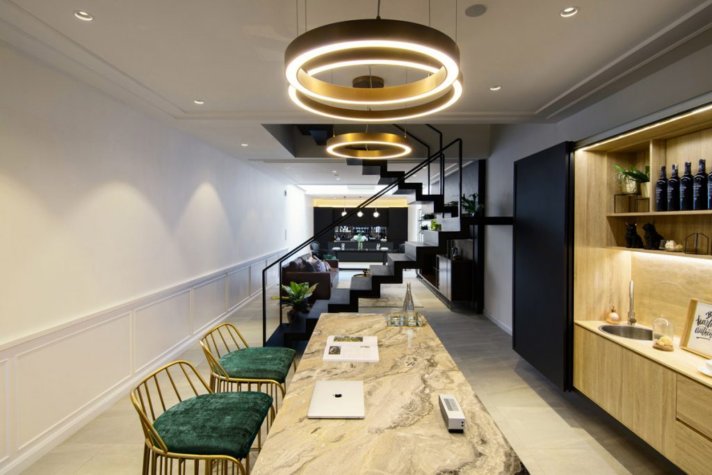 30th January 2019 | IN PROJECT OF THE WEEK | BY SBID Share Tweet Pinterest LinkedIn This week’s instalment of the #SBIDinspire interior design series features a modern-day luxury home that manages to combine both old-school opulence and contemporary cosiness under the same roof. Superior air ventilation incorporated into the interior of this property allows it to feel larger and more spacious. A stark contrast to the dark and cramped image of a pre-war house. The house is equipped with three bedrooms, which are hosted on the upper levels. Sticking to the modern European theme, the first bedroom features a soft, neutral palette, enhanced with soft blue furnishing & a semi open wardrobe. The second bedroom comes with a softer, baby blue accent, a sleek, custom-made wardrobe / dressing table as a nifty space saving highlight, as well as a hotel-like bathroom with arabescato marble feature wall. Warm, earthy tones blanketed the final bedroom with a restful atmosphere, a clear glass door wardrobe and an en-suite bathroom. Company: NEVERMORE Project: The Irrawady House Project Location: Penang, Malaysia What was the client’s brief? For this project, our objective is very clear, we wanted to make the 15 foot wide pre-war terrace house open plan, to break away from the traditional pre-war house layout. Therefore we divided the space into 2 zones; the common area for the ground level and then personal and private spaces for the first floor. With this chosen layout we were able to maximise the usage and fulfil all the needs and requirements of the clients. On the ground floor, as we enter from the main entrance, we are greeted with the pantry and bar counter clad in beautiful Italian marble, complete with a pair of Reza Feiz’s Bride’s Veil bar stool; the space serves as a pantry / bar to offer space for storage and entertainment as one of the client’s needs and requirements for the design. The living space is housed further in the middle of the house; to be some distance away off the main road. The dining is located beside the living space right under the skylight; where ample day light is cast into the interior; perfect for energy saving through-out the day. As for the kitchen, all necessary facilities of a fully equipped kitchen are held within the smallest possible footprint at the end of the open layout. A hidden door leads towards the back yard which consist of the laundry and powder room. The room also features a sculpture-like spiral staircase fabricated in mild steel and finished with special rust. On the first floor, with the chosen layout, we are able to maximise the bedroom sizes, equip with bathroom for each room which typical pre-war houses do not have. Generous panes of glass are utilised to turn ordinarily opaque walls transparent, providing generous views in some surprising places. In one of the bedrooms, the bath is rendered in the manner of a boutique showcase, with generous stretch of windows putting the freestanding tub on display in the air-well with a fully imported Italian arabescato marble feature wall as the backdrop. For the guest bedroom, we wanted created a sense of privacy, it is located 10 feet away from the other bedroom and can only be access via the spiral staircase located at the far end of the house. The monochromatic basis of this bedroom is enhanced for eye pleasing variety with the introduction of greater range of wood tones in fabrics and architectural finishes. What inspired the interior design of the project? The elongated living room is connected with the kitchen, dining area and open bar area as the decor features a modern twist to classical European designs. Fitted with a daring open staircase, this bold design is further enhanced with the selection of large circular pendants & imported Italian marble counter. Gold finishes are thrown in to the interior design to elevate the overall look with a hint of glitz. Meanwhile, the living room, dining area and kitchen enjoy the warm glow derived from the skylight feature, giving the space a natural comfort, bathed in natural light. What was the toughest hurdle your team overcame during the project? Dealing with structural issues which related to the creation of the column-less, open plan interior within a typical pre-war terrace house; to resolve this, we came up with an “i” beam steel support to withstand the weight of the cast concrete flooring on the first floor. Also, the spiral staircase was not installed without difficulty as it had to be pre-fabricated at the workshop and then reinstalled at site. What was your team’s highlight of the project? For me this is definitely the results of the open plan layout! Also other elements of the interior design like the cantilever bath tub, the use of skylights throughout, the spiral staircase finished in rust paint, and a gorgeous moooi smoke chair! Why did you enter the SBID International Design Awards? We wanted to see where would stand on an international level and thought the SBID Awards would be the best platform for this! Questions answered by Chuah Say Yang, Creative Director and Chong Su Min, Design Director of NEVERMORE If you missed last week’s Project of the Week featuring a unique and inspiring home that pushes boundaries with a sophisticated balance of layers, click here to see more. We hope you feel inspired! Let us know what inspired you #SBIDinspire NEVERMORE | SBID International Design Awards 2018