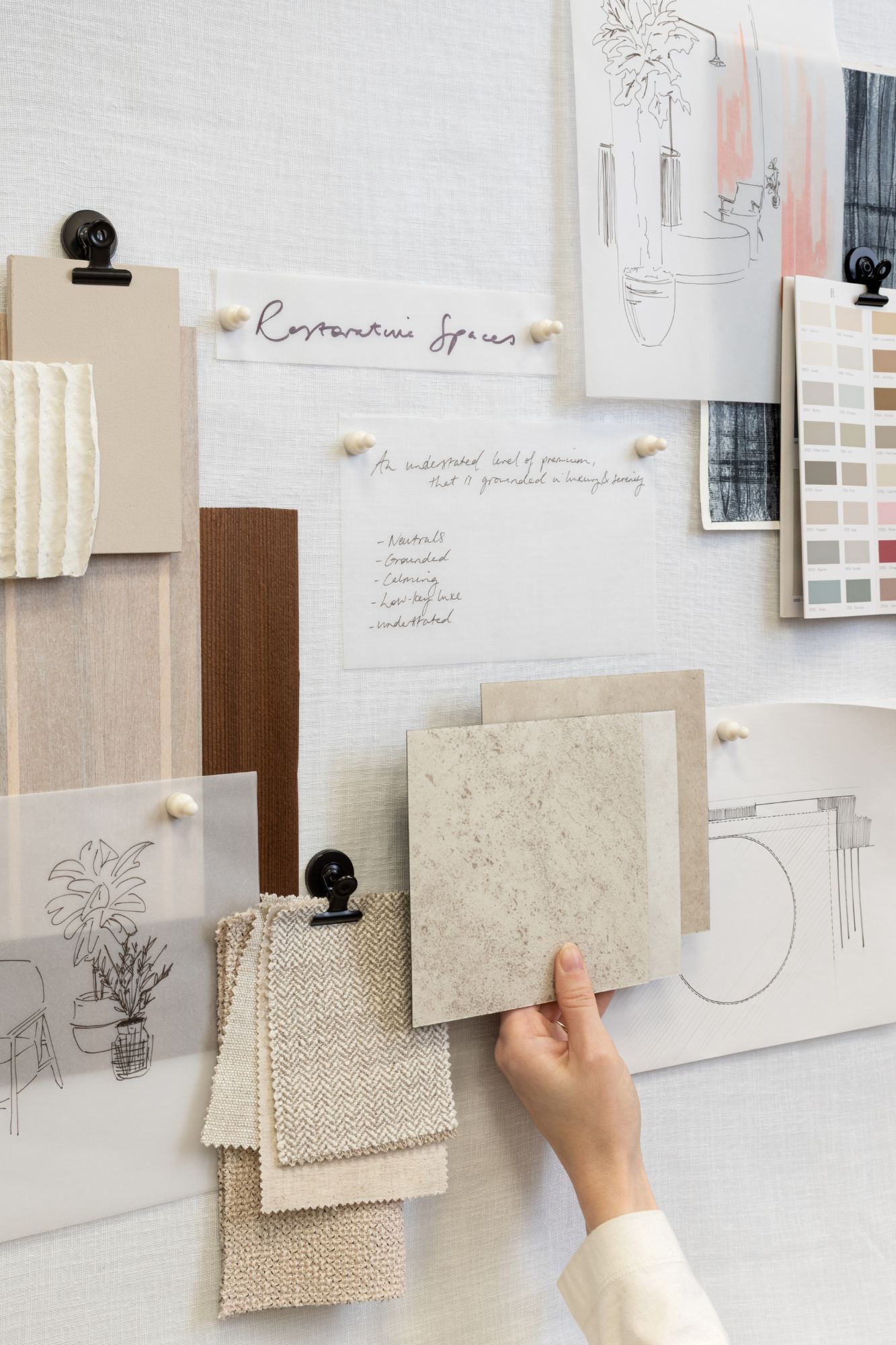 "Designers' Choice distils months of research into palettes and combinations that are balanced, beautiful and instantly usable," says Sarah Escott, Design Manager at Amtico. "This year, we've leaned into the emerging trends for Restorative Spaces, Soft Utilitarian and Nostalgic Reset, blending Woods, Stones, and even Burnished Metals to give specifiers and designers impactful floors in an easy, 'off the rack' solution."