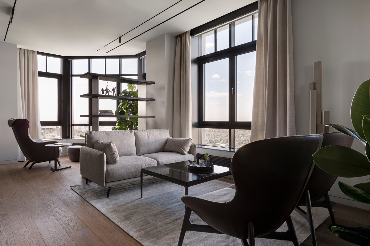 The primary obstacle the design team encountered during this project revolved around reconfiguring the space's layout. Nataly Bolshakova proposed the creation of a distinct laundry room and wardrobe to address this challenge. Furthermore, Bolshakova's studio enlarged the kitchen area by rearranging the layout and relocating a kitchen island nearer to the expansive terrace. Consequently, the apartment now boasts a thoughtfully organised space that effortlessly blends functionality with aesthetics.