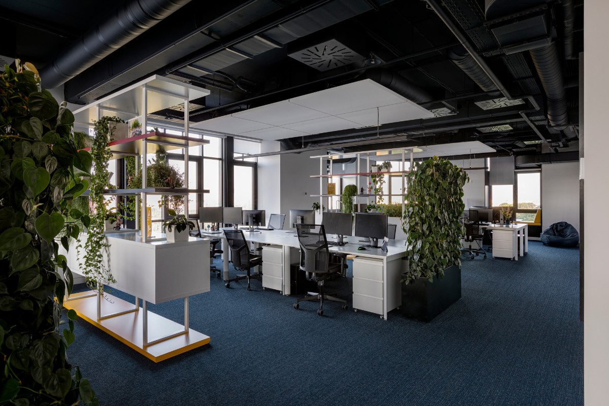 AB Games advocates for a flexible work environment, empowering employees to choose when and where they work. In alignment with this ethos, architects allocated a significant portion of the 2,800 square metre space to social interaction areas, including a canteen, library, bar, kitchen, several spacious terraces, and communal rooms. These social spaces, designed with an open layout, are interspersed with secluded areas dedicated to focused and uninterrupted work. A distinctive red corridor, illuminated with LED backlighting, serves as a transition zone between the formal work areas and informal communal spaces, symbolising a shift between relaxation and productivity.