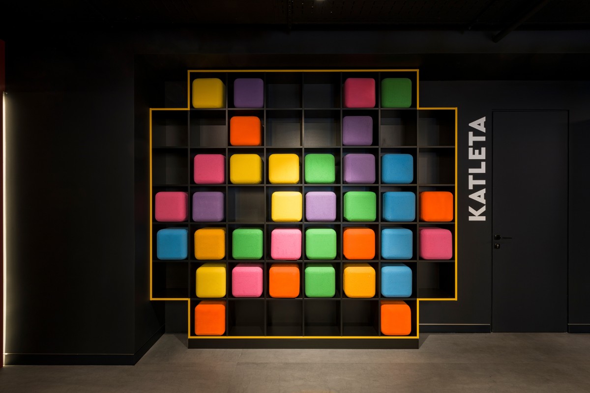 “Our solution was to pick a dark colour theme as a canvas on which some interior areas are highlighted with the help of deep blue, red, or yellow. We also left tones of space and white walls for AB Games workers so they would inhabit and fulfil it with their own creativity,” – comments Nataly Bolshakova.