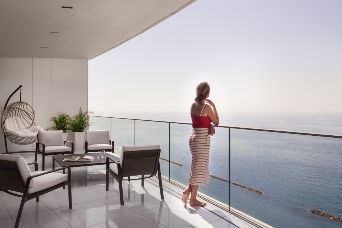 The Bolshakova Interiors team drew inspiration from the boundless azure sea and the soothing touch of sunlight to craft their design concept for an opulent three-bedroom apartment nestled in a prestigious spot along Limassol's seafront promenade in Cyprus. This exceptional dwelling is located within 'The One,' Europe's tallest seafront tower. The tower, a stunning architectural achievement, was envisioned by the esteemed architect Hakim Khennouchi of WKK Architects and brought to life in 2021 by the renowned real estate developer Pafilia.