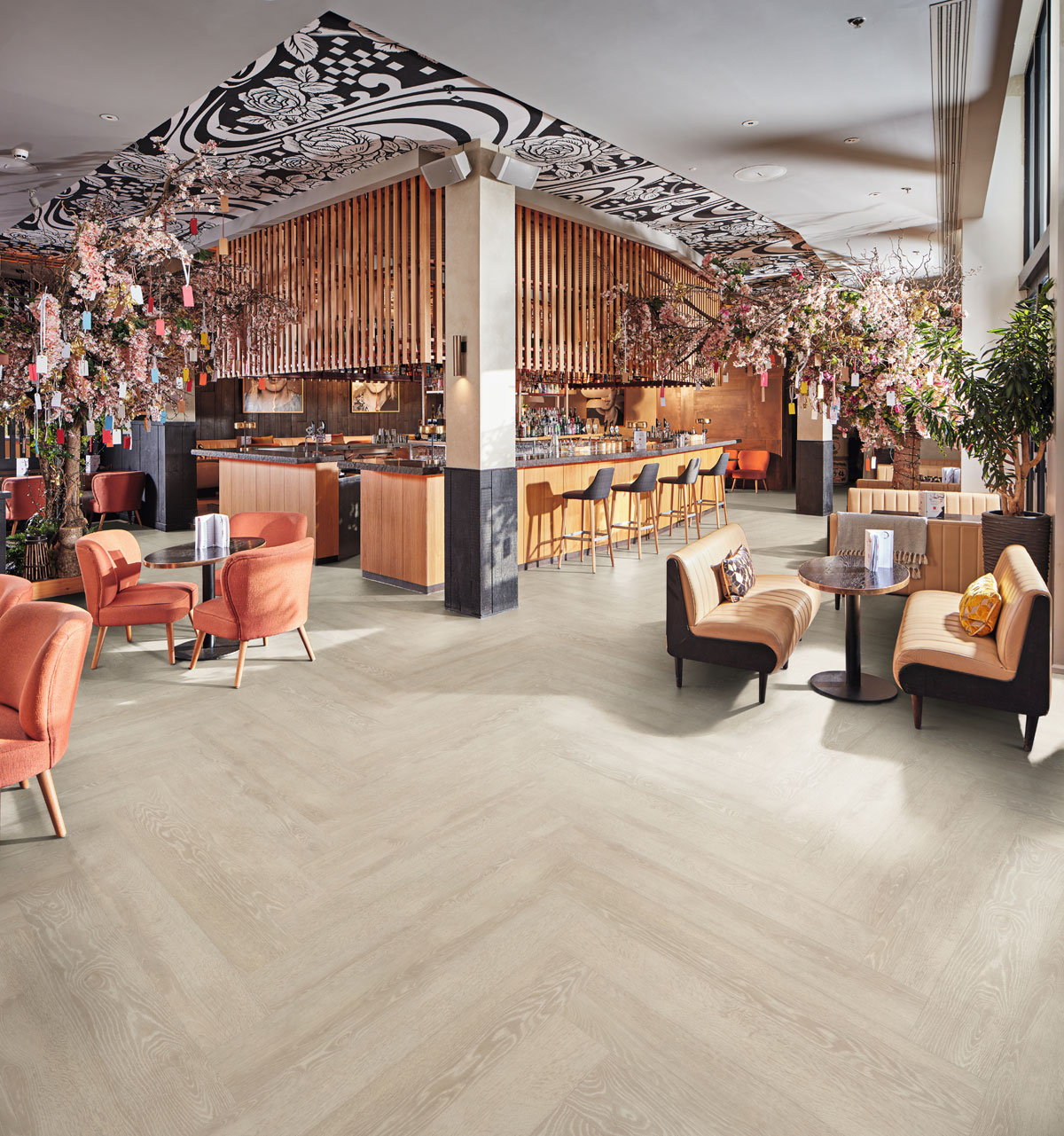 Designed to offer interior designers, architects and contractors greater flexibility, it means the same design can be specified in either gluedown or rigid core across different environments as part of the same project. Whilst rigid core is the format of choice for wellness and wellbeing with its K-Core® technology helping to reduce sound transfer to rooms below by 21dB, gluedown is most recognised for its flexibility in design with bespoke cuts, laying patterns and added design features available.