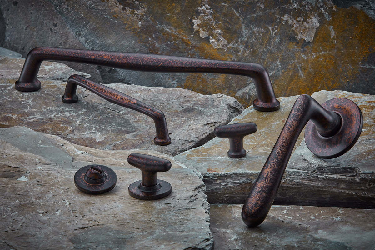 Incapsulating industrial architecture whilst successfully balancing style, strength and quality, the Fusion Collection comprises of a door handle on a covered rose, T bar mortice knob, bathroom turn, and cabinet fittings in over 25 different finishes and patinas, including Light Antique Brass and Autumn Bronze to add warmth to the home.